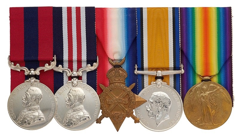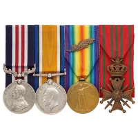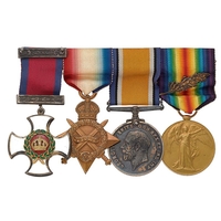 Awarded to Company Sergeant Major Frederick Herbert Read DCM.,MM who was Killed in Action on the 16th April 1918. Comprising: Distinguished Conduct Medal, 13438 SJT F.H. READ 8/R. FUS, Military Medal, L-13438 SJT F.H. READ 24/ R. FUS, 1914/15 Star, L-3438 CPL R.FUS, British War Medal, Victory Medal, L-13438 W.O. CL2 R FUS. Group mounted for display with a quantity of research. Distinguished Conduct Medal London Gazette 26th September 1916. For conspicuous gallantry during operations. He repulsed enemy bombing attacks almost single-handed. On two occasions, with one man only, he broke up strong parties of the enemy. Military Medal London Gazette 21st August 1917. Company Sergeant Major Frederick Herbert Read DCM.,MM a native of Poplar enlisted at East Ham into the Royal Fusiliers, posted to the 8th Bn he landed in France on the 18th January 1915. He is believed to have been awarded the DCM for gallantry at Pozieres between the 4th and 5th April 1916 or at Ovillers 7th July 1916. Transferring to the 24th (2nd Sportsman) Bn Royal Fusiliers he won the Military Medal. He was Killed in Action on the 16th April 1918 and now rests in the Berles New Military Cemetery.