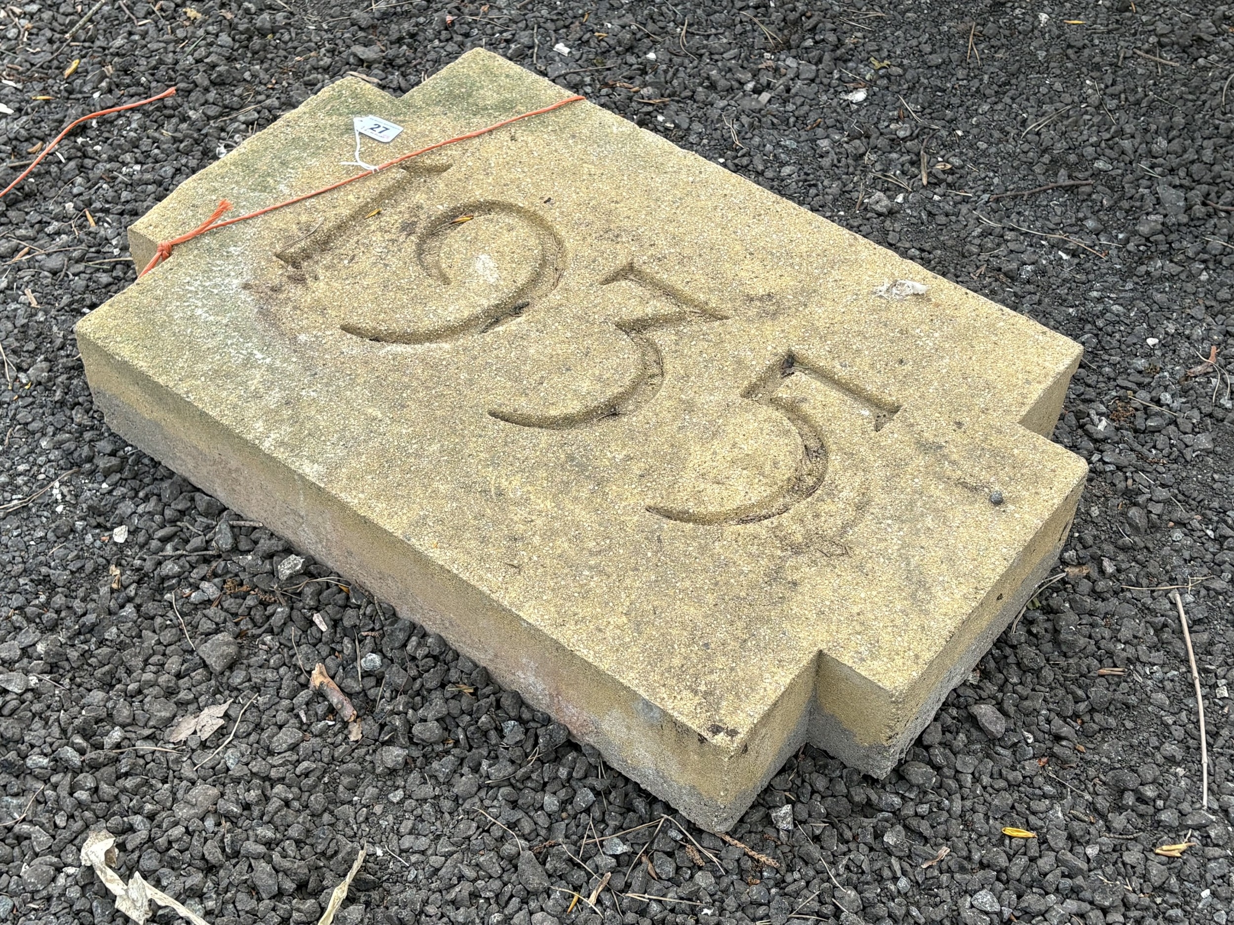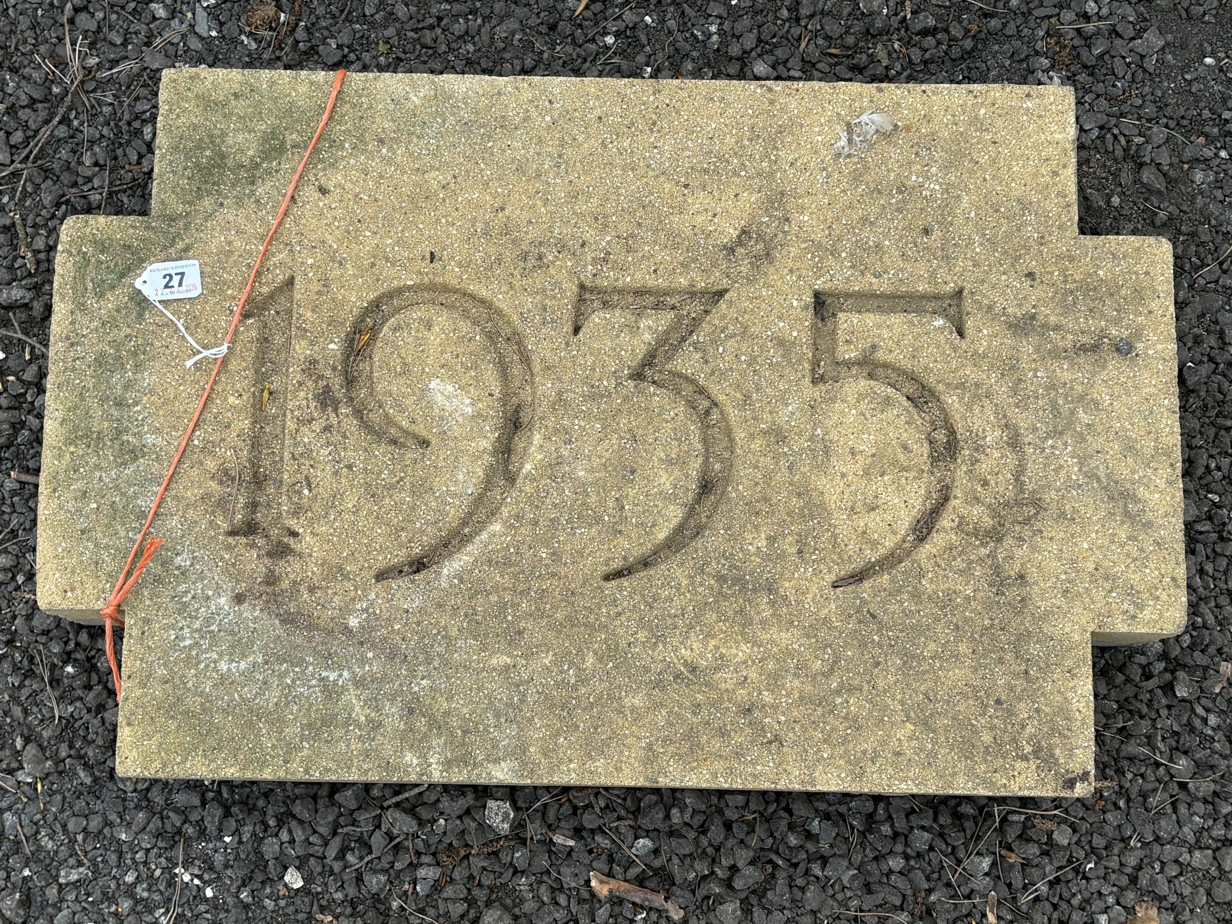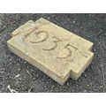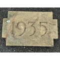 A WEATHERED CONCRETE WALL STONE, carved with the year, 1935, 68cm x 44cm, condition report: appears in good condition