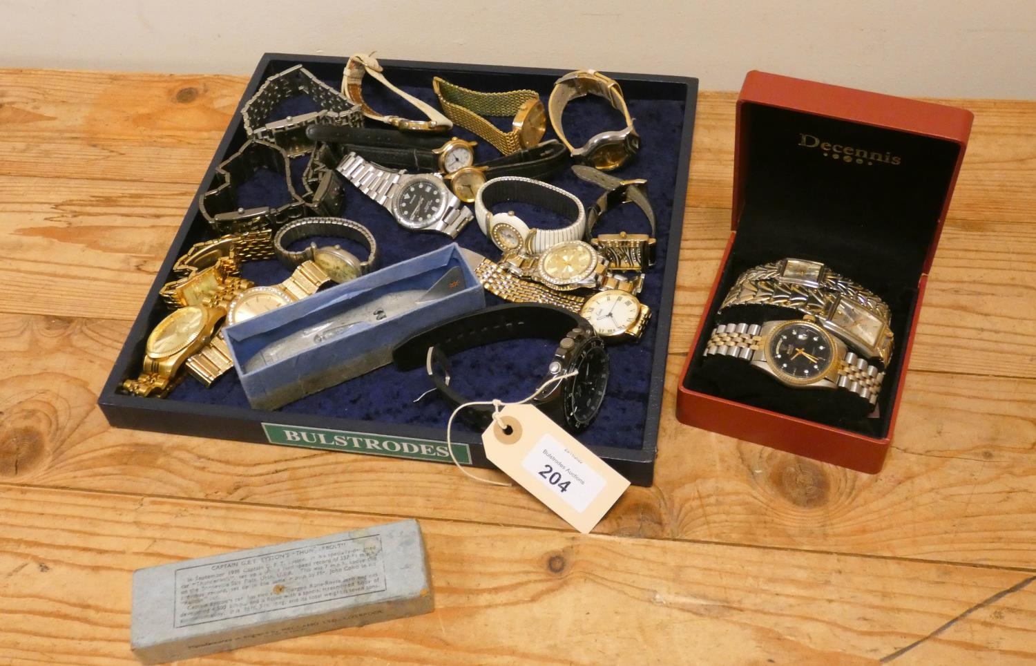 A collection of ladies and gent's assorted dress watches and an old Dinky toy
