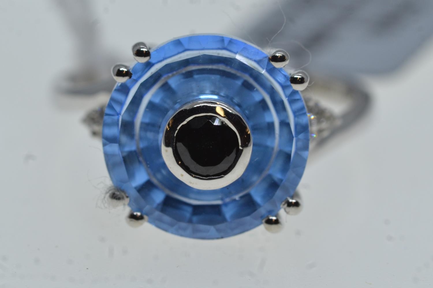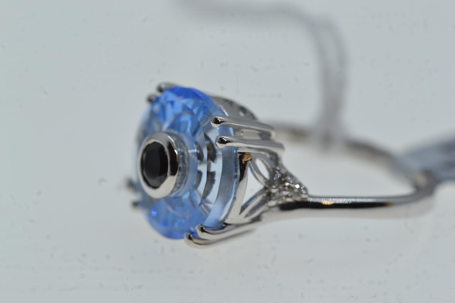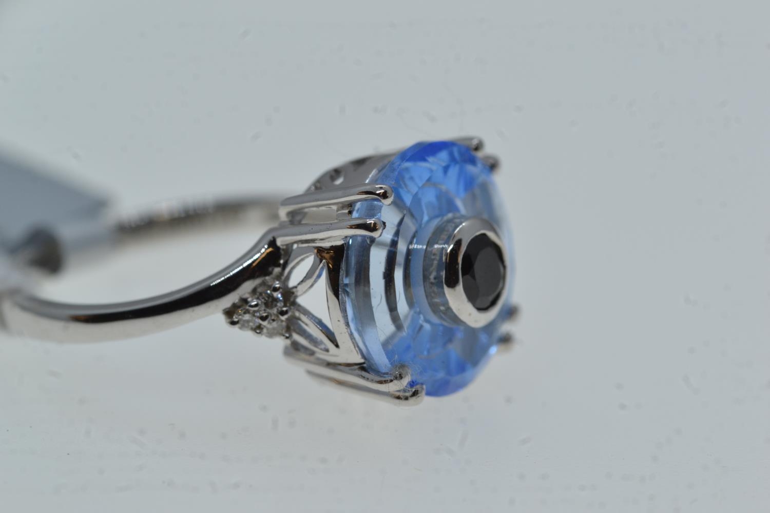 10ct white gold & blue stone ring, size N1/2, 4 grams
