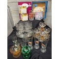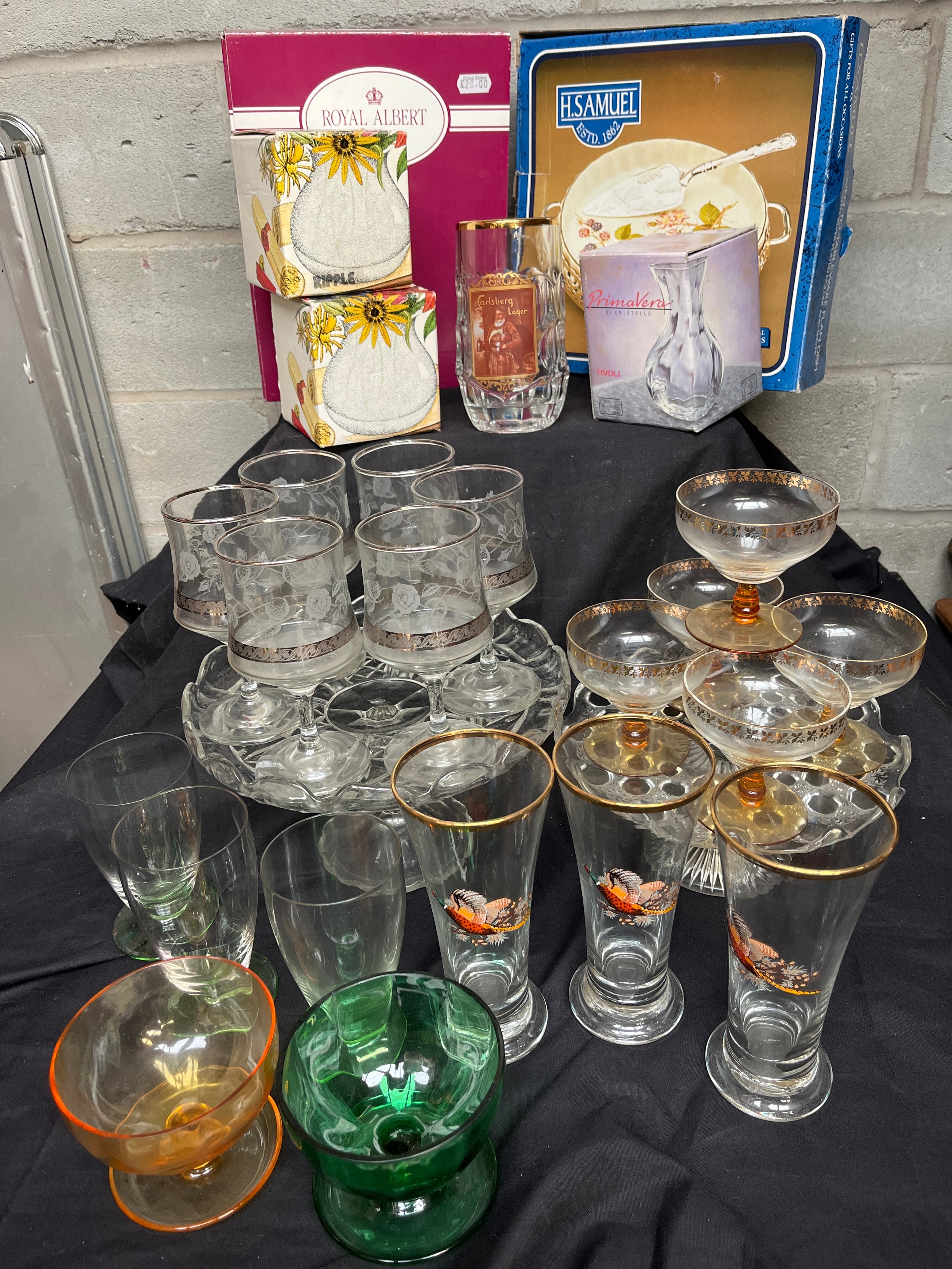 Glassware And Crystal Including, Cocktail Glasses, Hand Painted Glasses, Coloured Glass And Boxed Royal Albert Etc.
