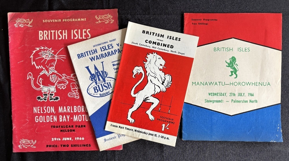 1966 British and I Lions in NZ Rugby Programmes (4): v S/Mid Canterbury/N Otago, Wairarapa/Bush, Nelson/Marlborough Bays and Manawatu/Horowhenua. G
