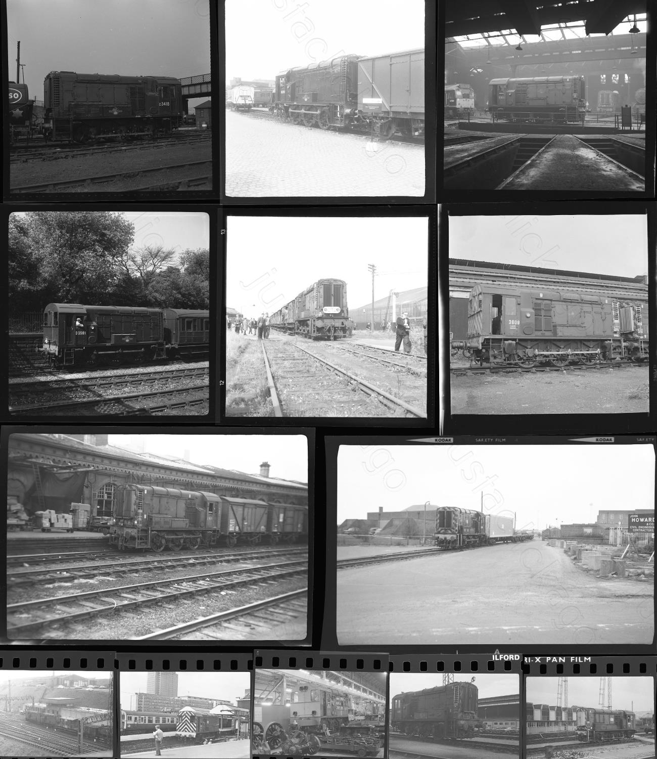 Railway. Modern Traction - Shunters. Approx. 50, individual, 35mm and medium format, black and white negatives. A selection of Class 08 shunters, all pre-tops numbers from the 1960's and 1970's with a couple from the 1950's. There are also 2 of preserved locos from the 1980's. Locations include: Holbeck, Stratford, Walney Island (railtour), Edinburgh Waverley, Felixstowe, Waterloo, Merthyr Vale Colliery (Ex BR), Longbridge, Immingham, Inverness, Preston Yard, Oxford, Wolverton and others. All captioned with loco numbers, some have no locations or dates. They are sold with copyright, sample illustrated.