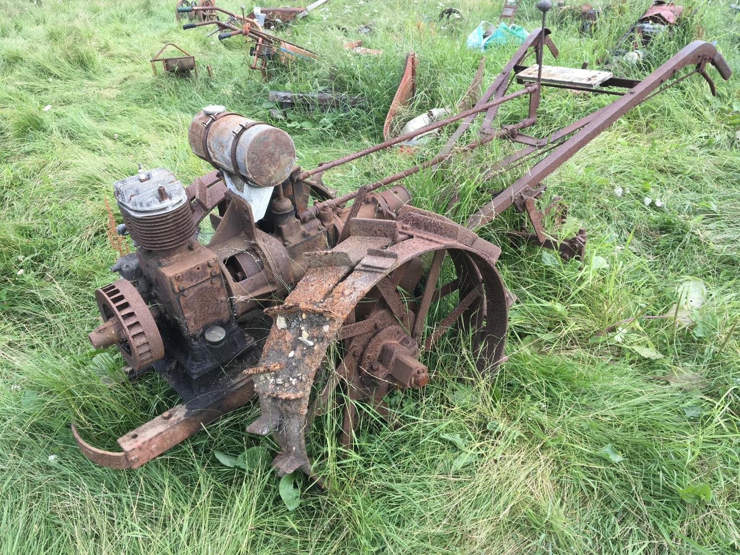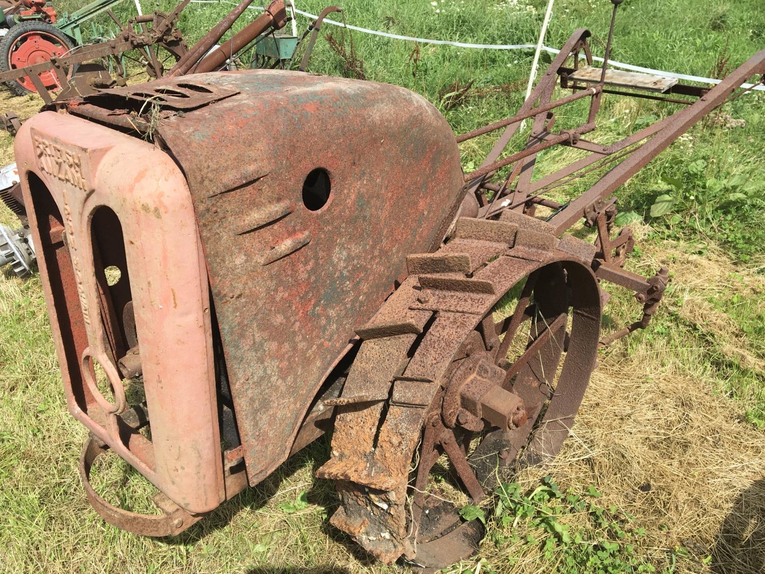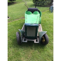 A large Vintage Trusty Tractor The Iron horse with double steel rimed wheels single cylinder four stroke plate numbered 261. With cast iron tractor front cover and engine hood.