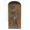 A Semi Nude Terracotta Plaque, cast as a lady leaning on a ledge, the reverse impressed Beecroft 23,