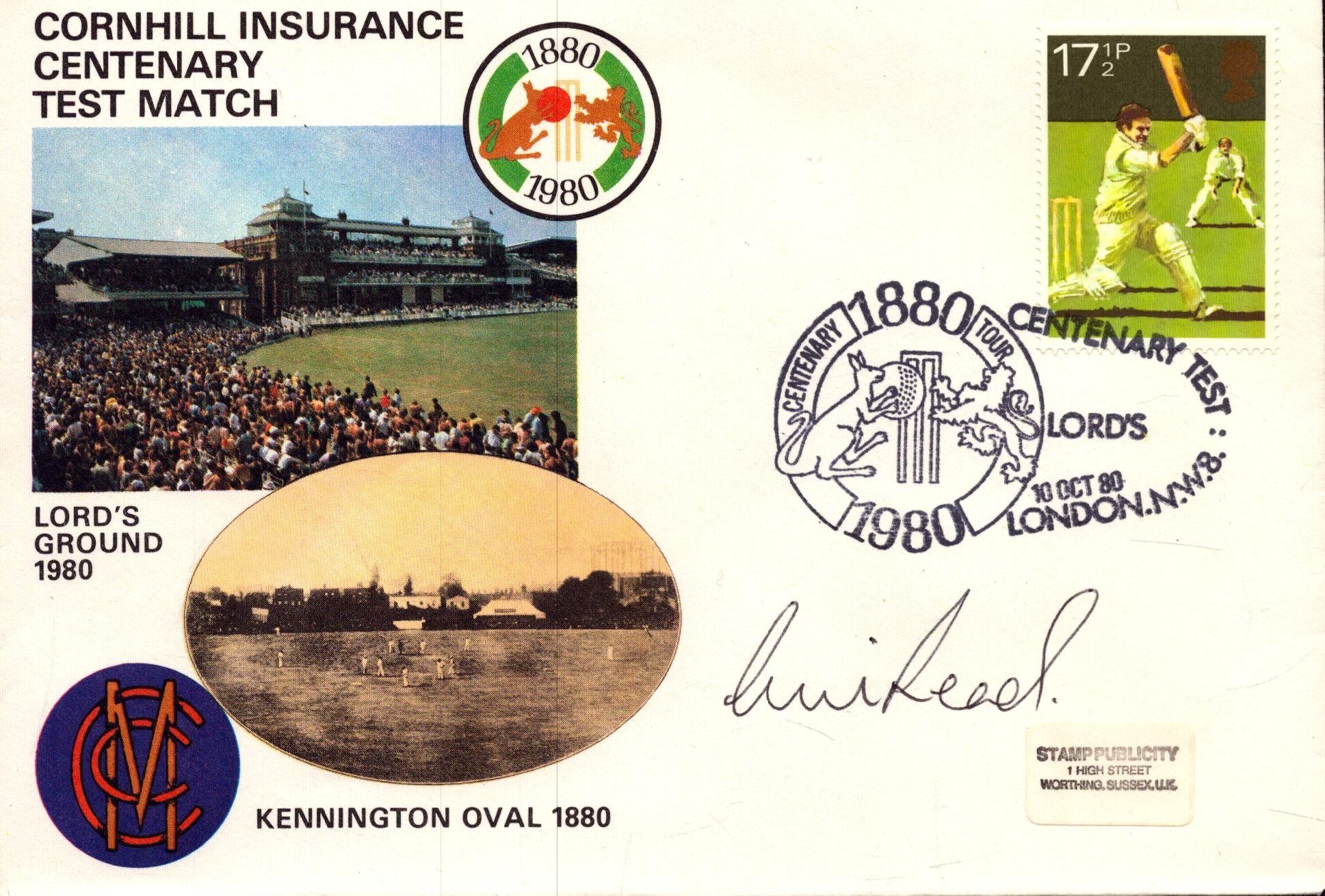 Chris Read signed Cornhill Insurance Centenary Test Match Lords Ground 1980 FDC.