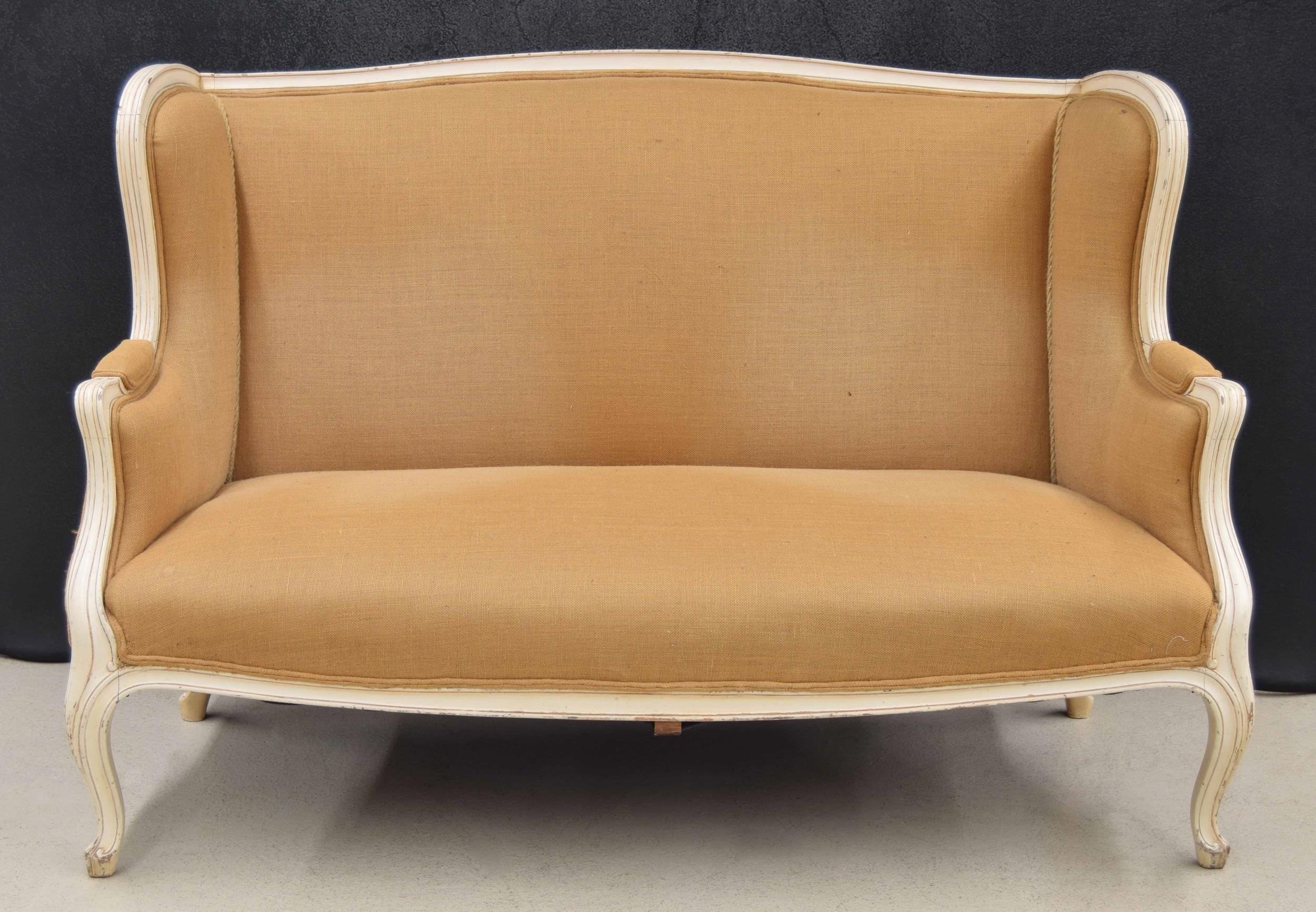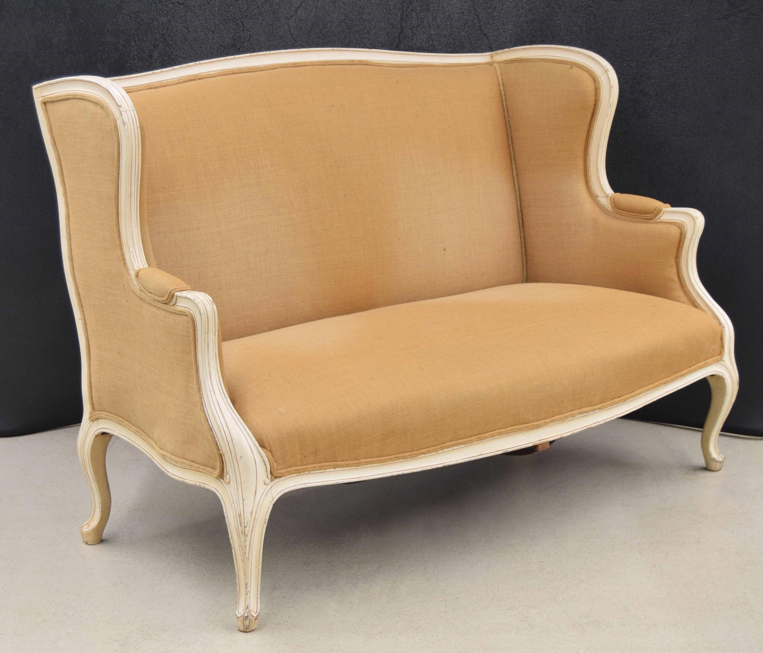 Structurally sound, upholstery of the settee rather faded as shown.