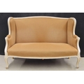 Decorative French painted settee, 61" wide, 31" deep, the seat 16" high, the back 40" high