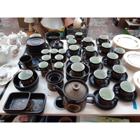 A GOOD QUALITY 49 PIECE ROYAL DOULTON HARLOW PATTERN PART DINNER AND TEA SERVICE COMPRISING DINNER PLATES, BOWLS, TEA CUPS, MILK JUG, SANDWICH PLATES (SOME SECOND QUALITY)