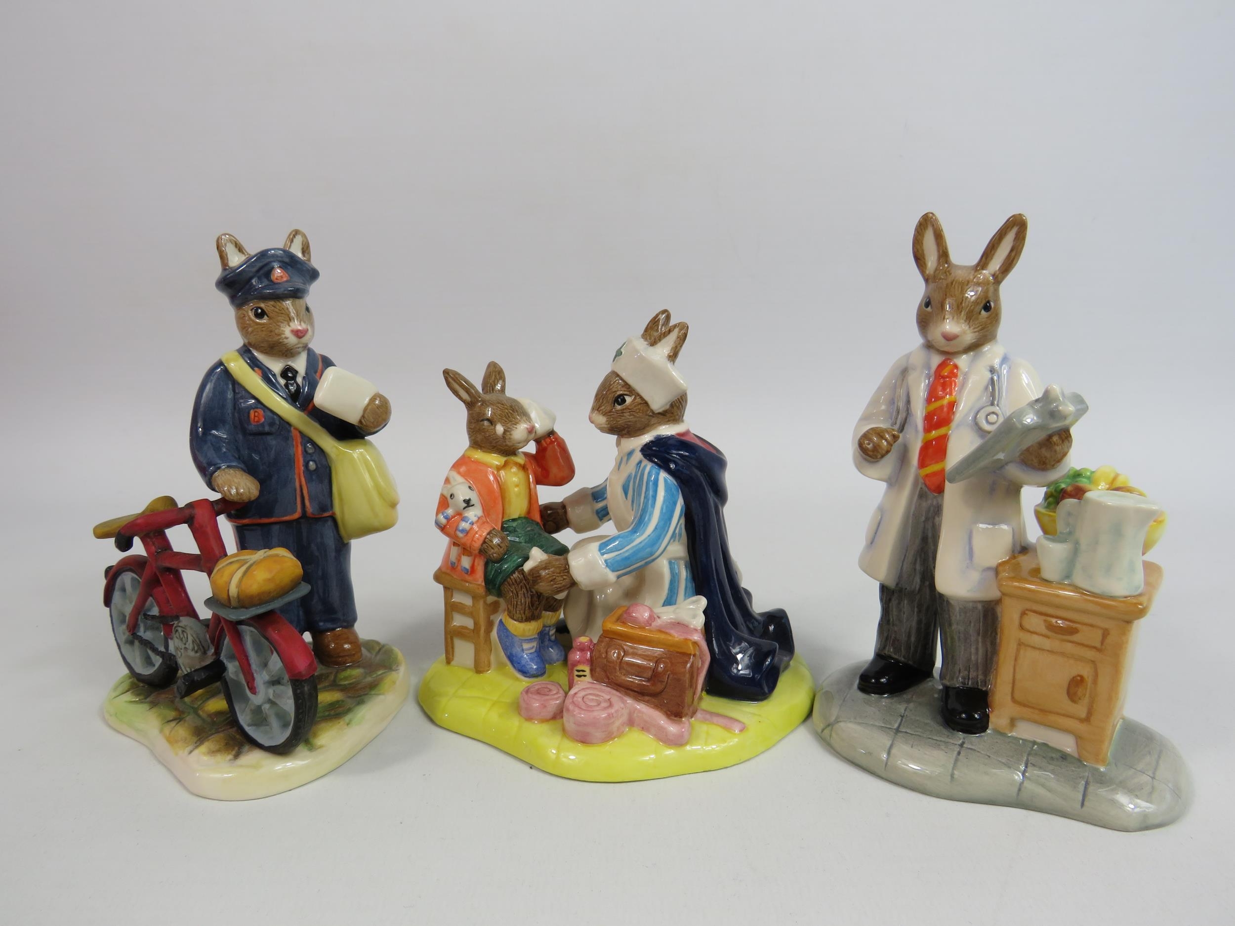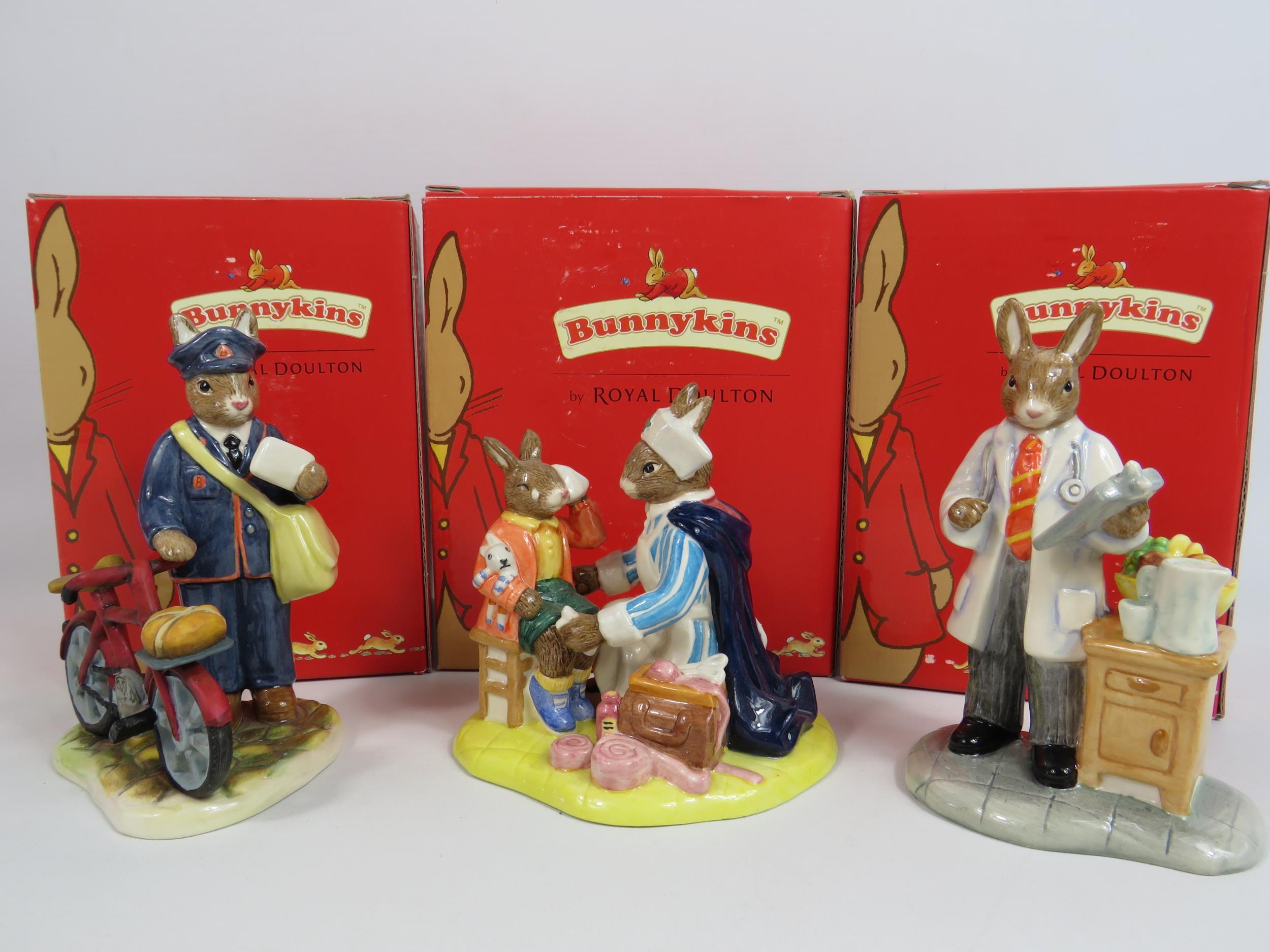 3 Royal Doulton Bunnykins Professionals collection figurines Nurse, Doctor and Postman. All with boxes.