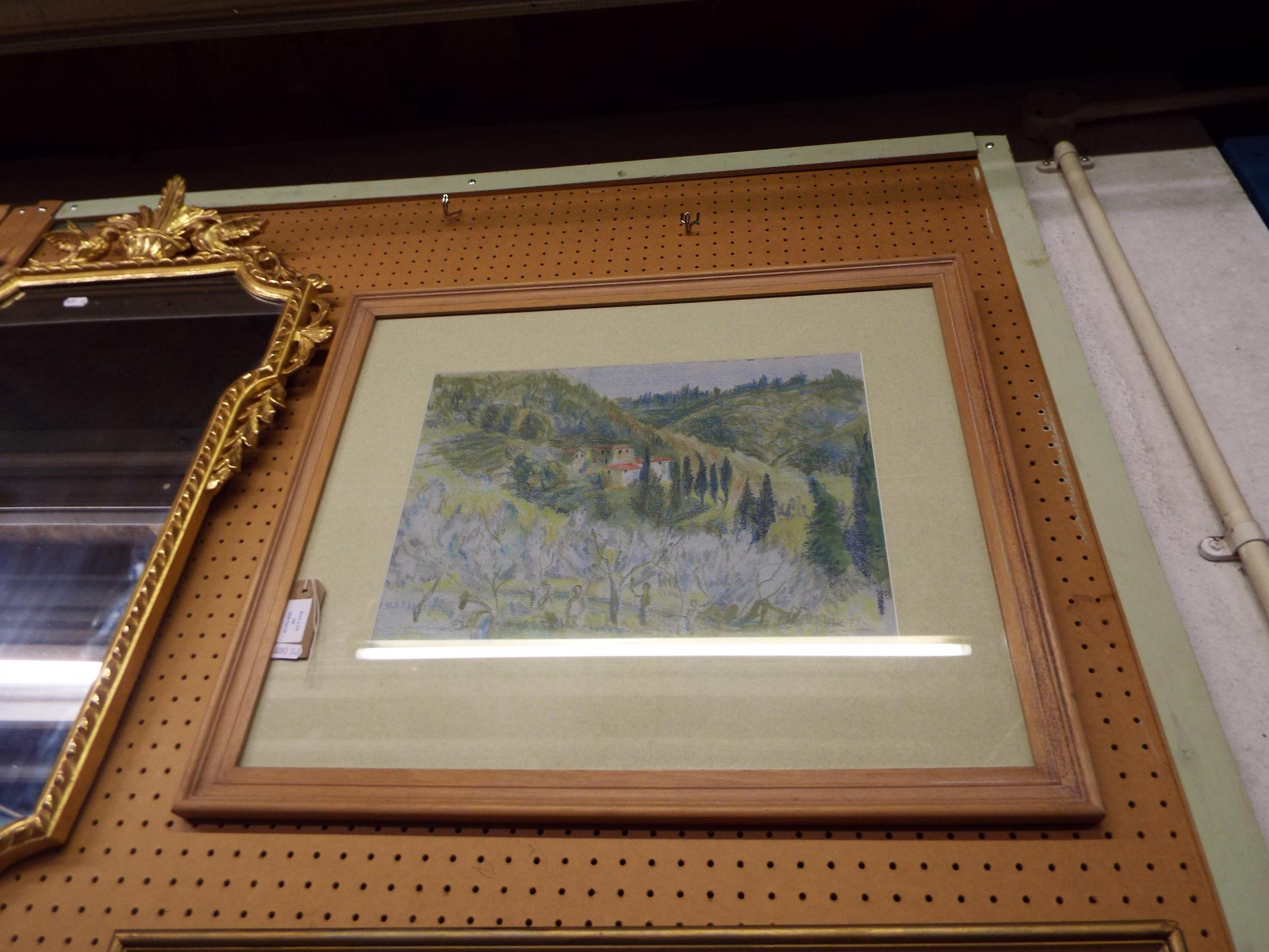 A pastel painting ‘Monsagratt Tuscany’ signed lower right
