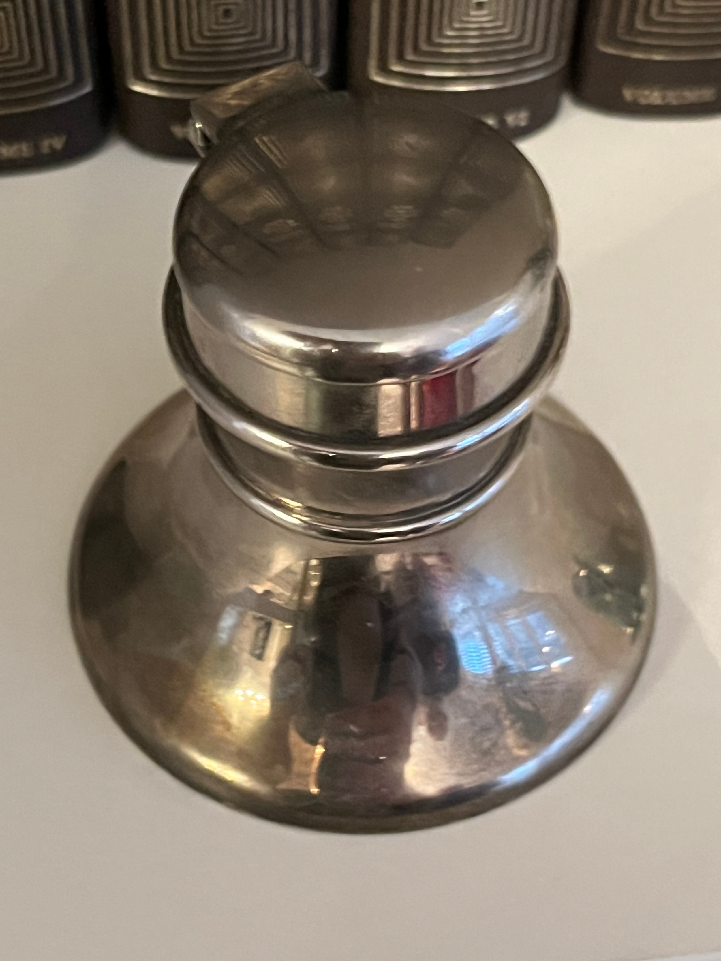 Rare Jonas inkwell in brushed steel. Swedish