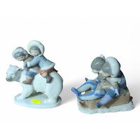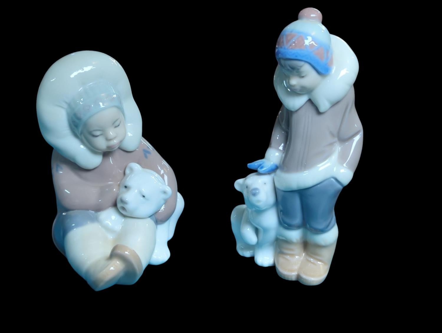 2 Lladro Eskimo Figures with Polar Bear Cubs. Tallest H15cm