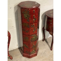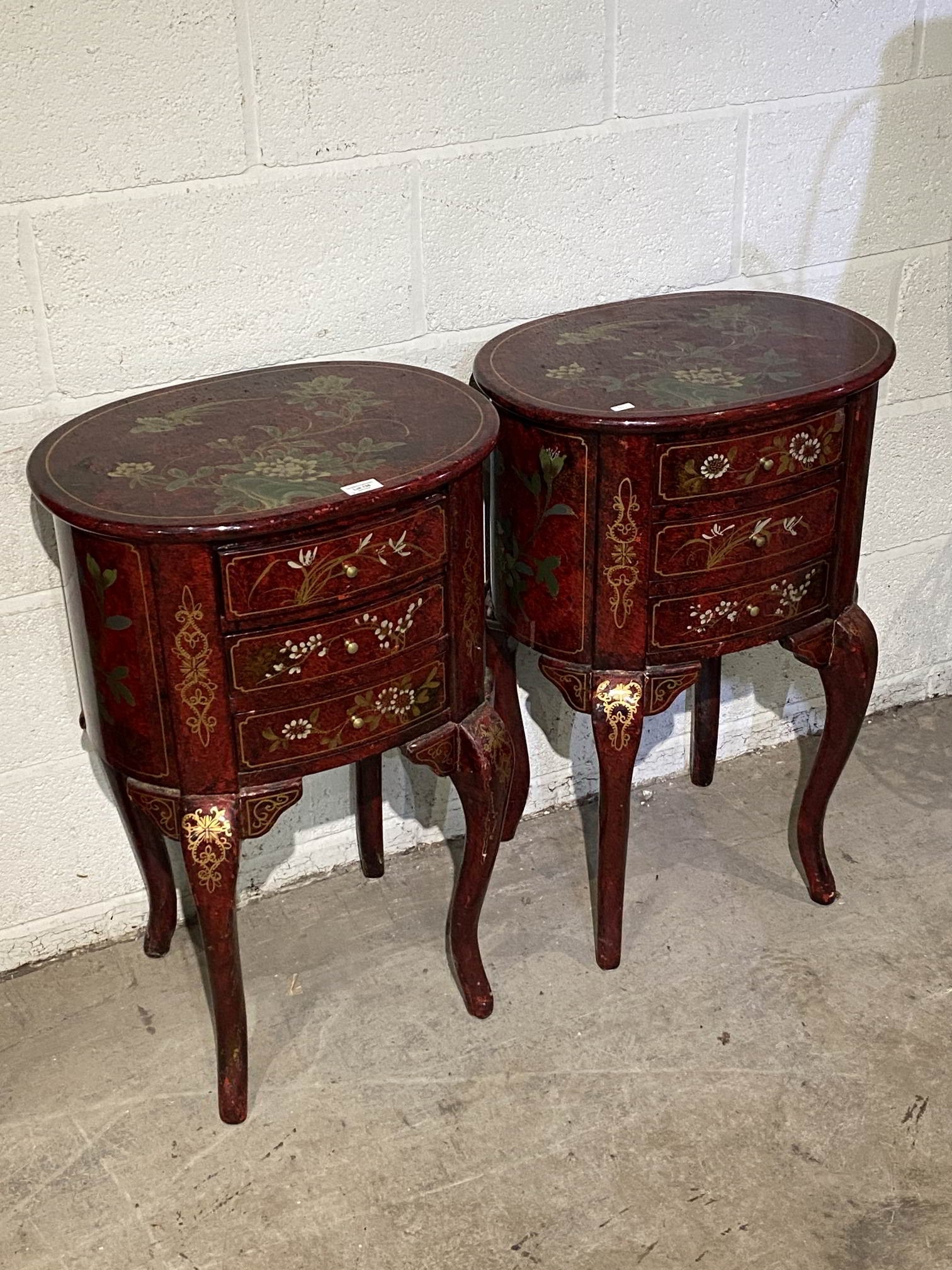 Pair of Chinese lacquered three drawer chests 77H 50W 38D