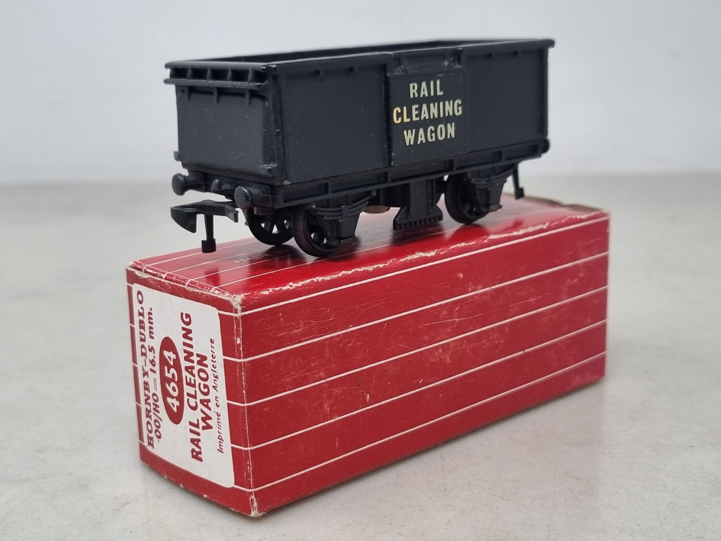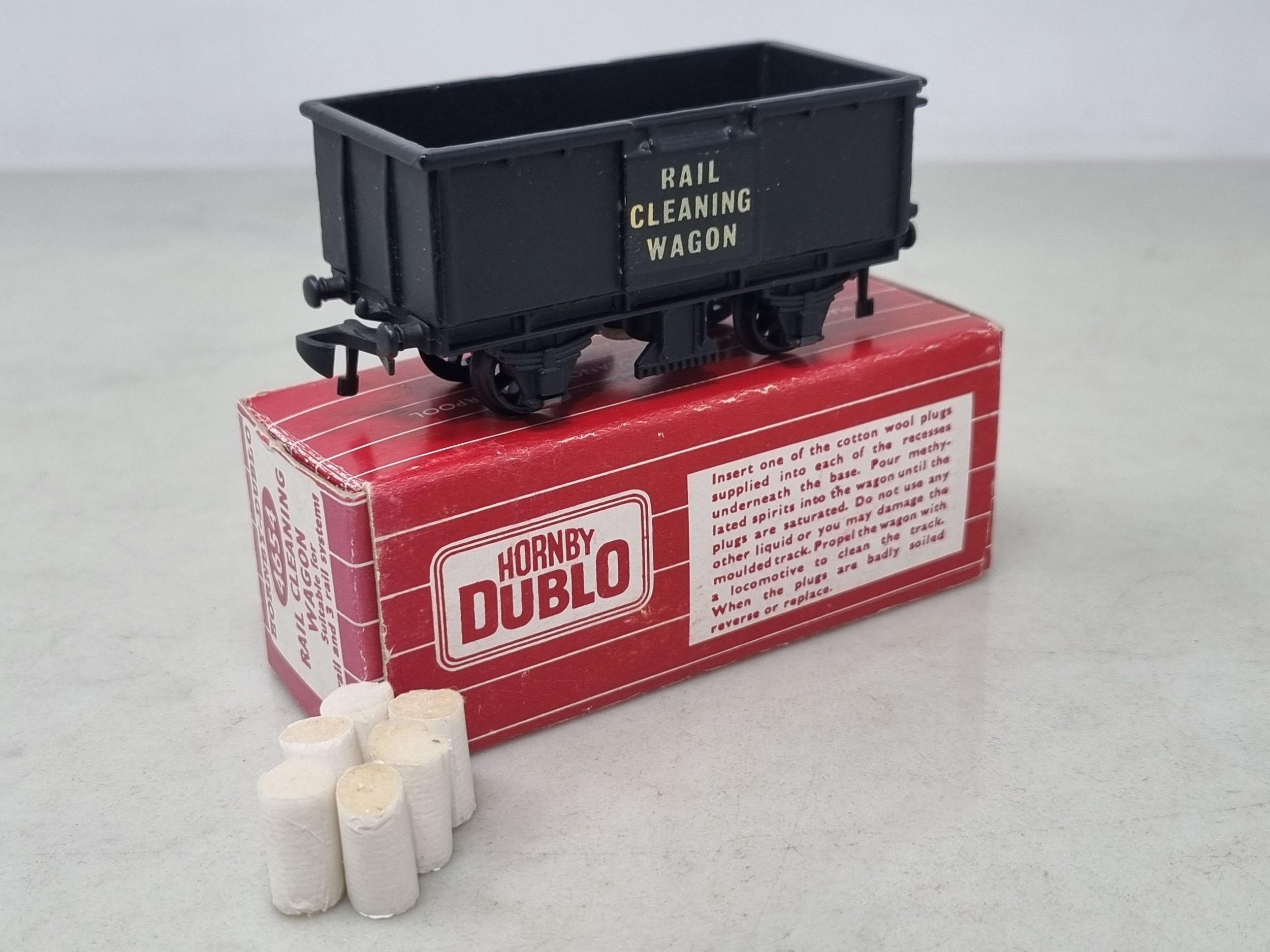 A Hornby Dublo 4654 Rail Cleaning Wagon in Tony Cooper Box with six pads, Ex, box VG