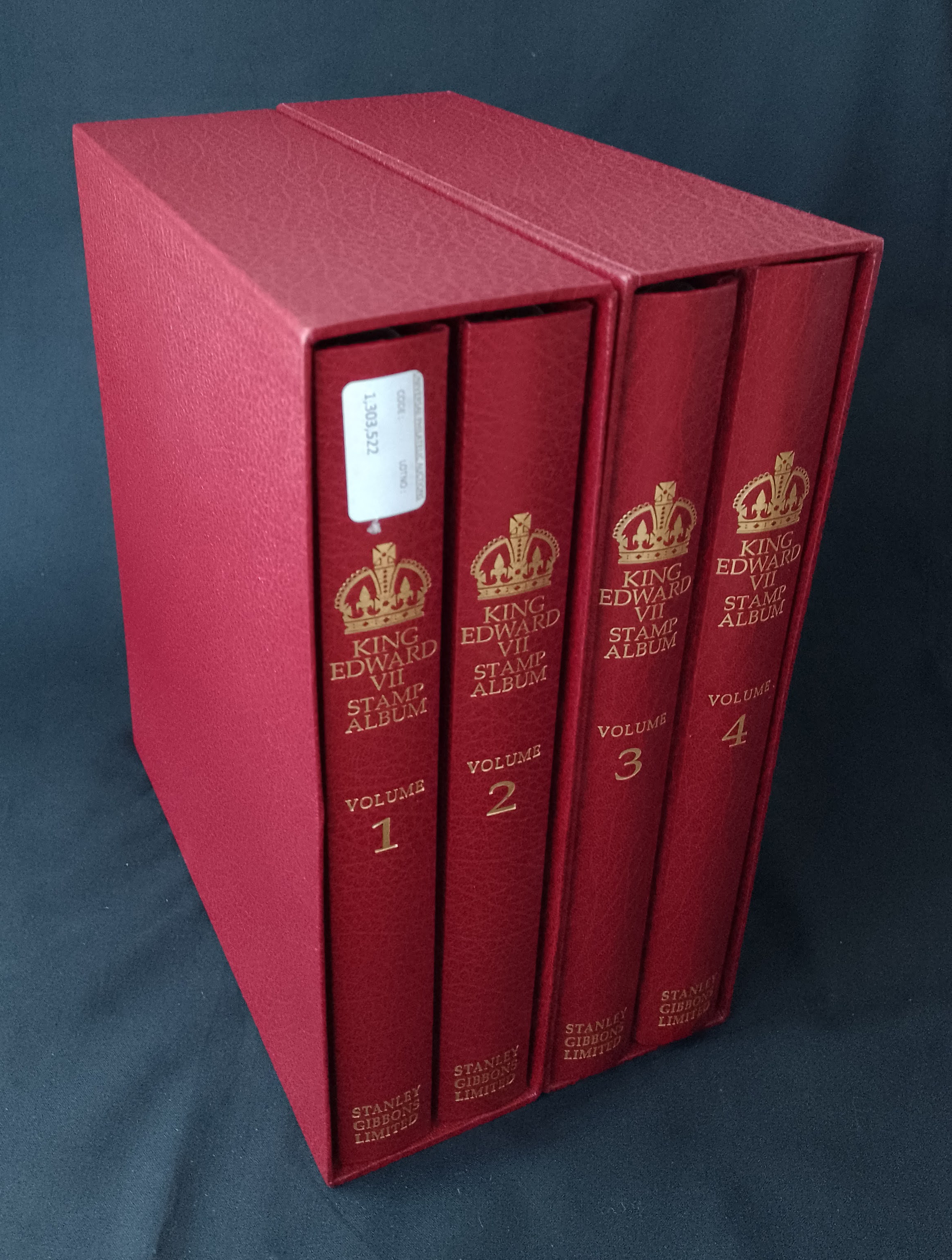 General - British Commonwealth : 1902-11 KEVII MINT COLLECTION presented in mounts in four SG, dedicated printed albums with matching slipcases. Collection strength is Great Britain with an extensive range (75+) with De La Rue Ordinary paper shaded values to 5s, chalky paper shaded values to 1s, Harrison P14 shaded values to 2½d, P15x14 set (less 3d), Somerset House shaded values to 2s6d (less 10d), Officials inc 6d Govt Parcels amongst others, 'Better' Commonwealth inc Antigua 1903-07 set, 1908-17 set, South Australia P/Fiscal range to 5s, Bechuanaland 1904-13 set, Bermuda 1902-10 Dry Dock sets, Br Levant 1905-12 'Levant' opt'd set, BVI 1904 MCA Wmk set, Caymans 1902-03 CA Wmk set, Ceylon 1903-05 CA Wmk set, East Africa & Uganda 1904-07 set to 5r inc chalky papers, Straits Settlement range to $1, Montserrat 1908 5s, St Kitts 1905 range to 5s amongst much else. Lovely format, ready to expand. Stc £10k+. (300+ stamps) HEAVY/OVERSIZE LOT - OVERSEAS SHIPPING SURCHARGE APPLIES. Cat £10000 (image available) [US1]