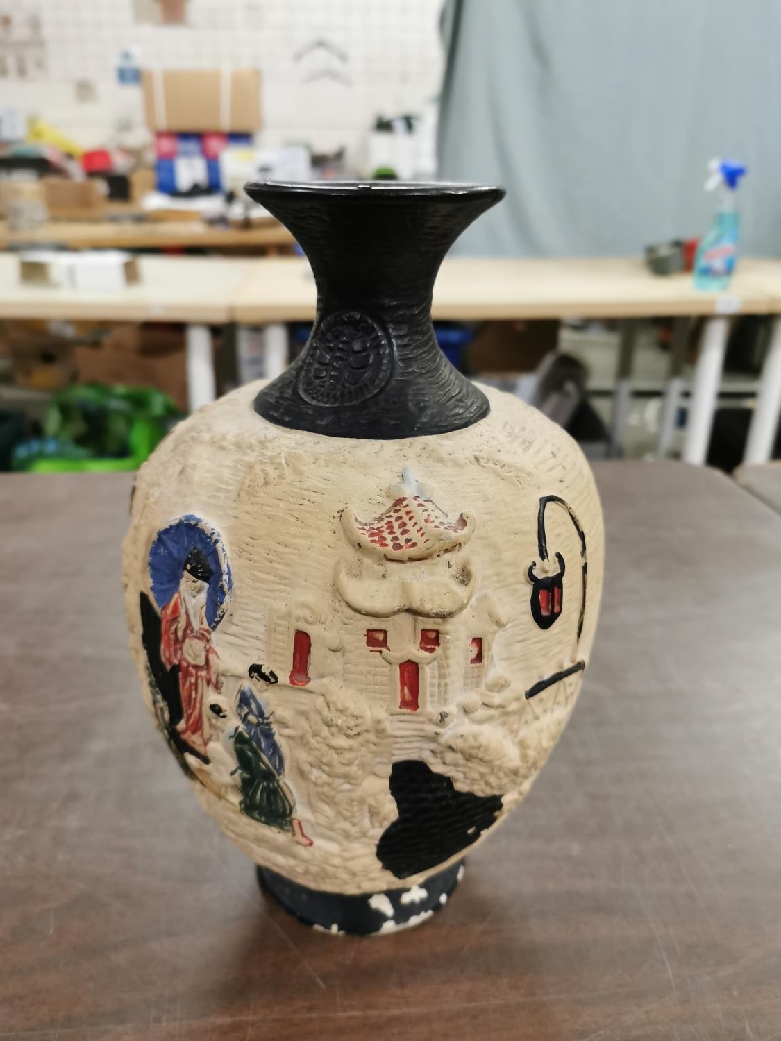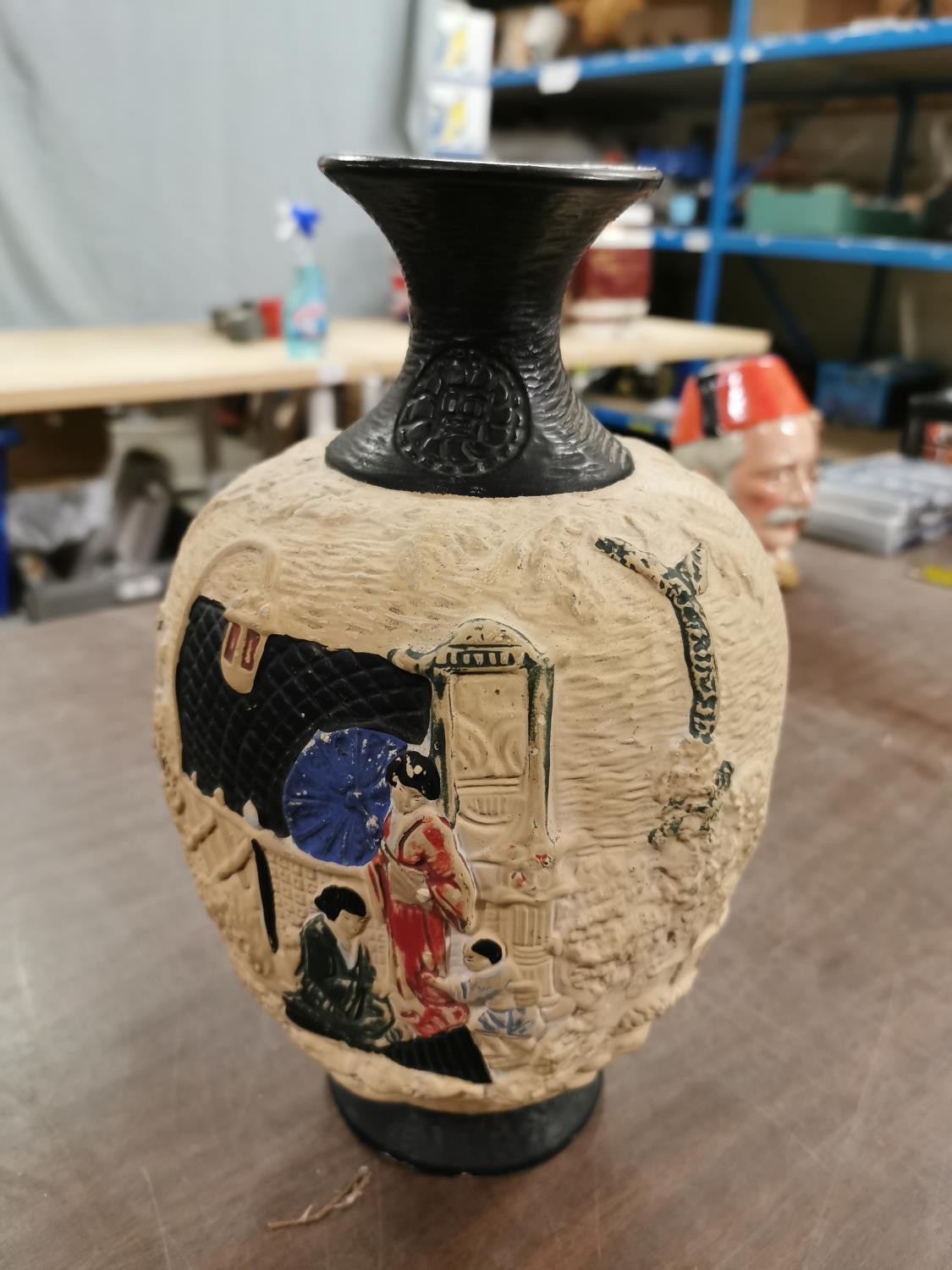 28.5 cm tall vintage Cyples Embosa ware Oriental scene vase