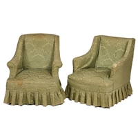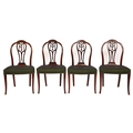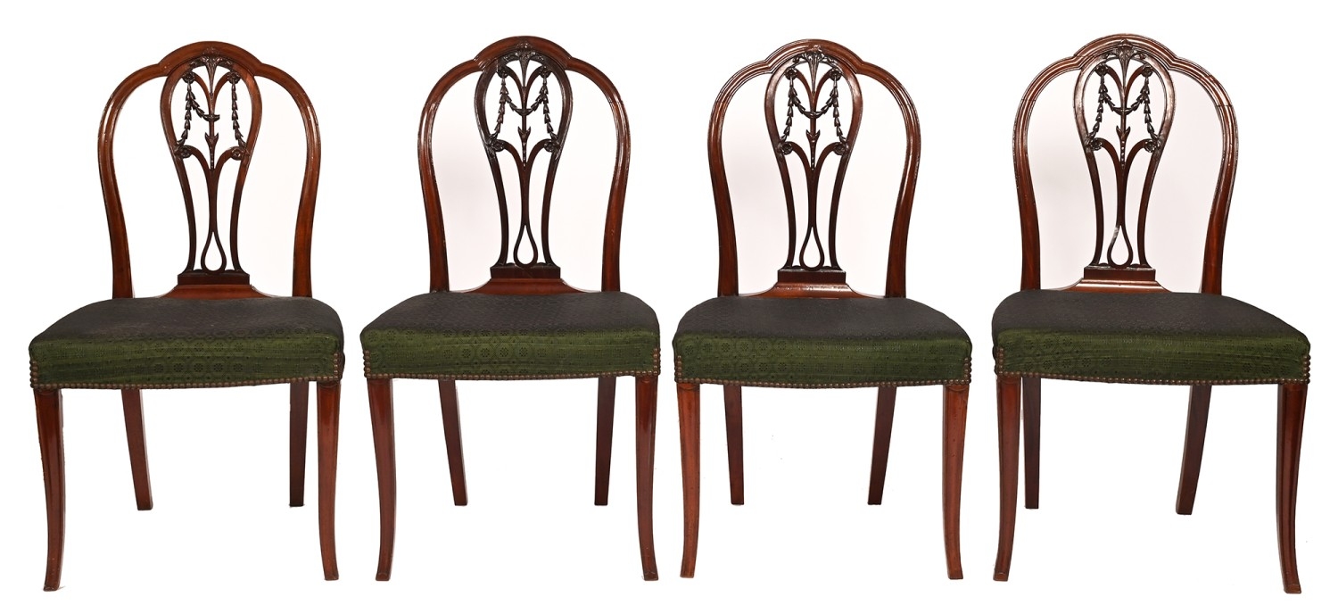 A set of four George III mahogany dining chairs, with carved festoon splat, the seats covered in green horsehair