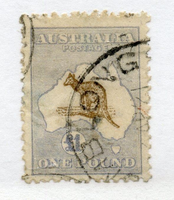 AUSTRALIA 1915 - 27 £1 chocolate and dull blue fu faults. SG 44. Cat £1600.