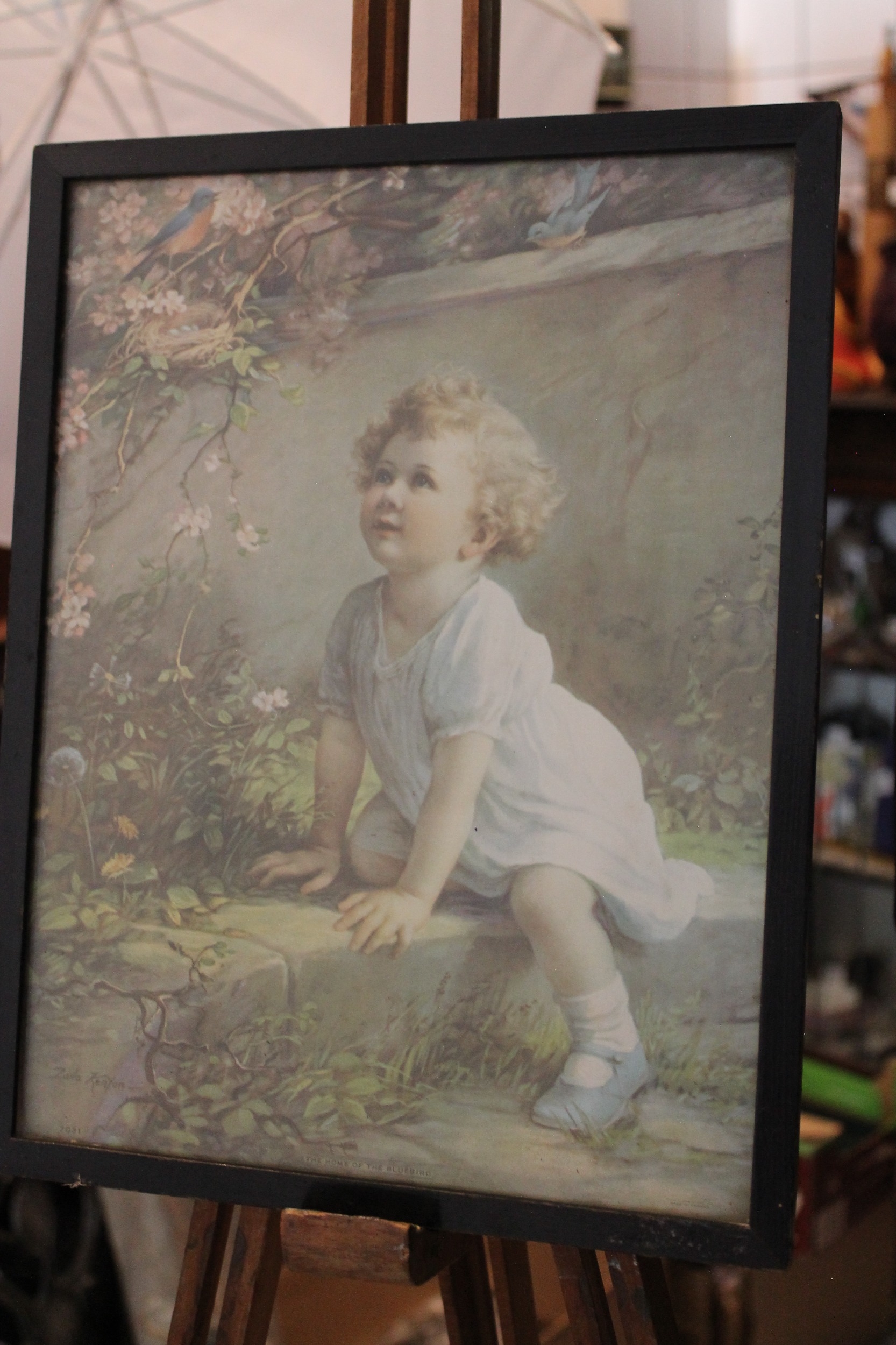 Vintage Print of a Child in a Frame, 14'' x 11'' inches , 36 x 28cm