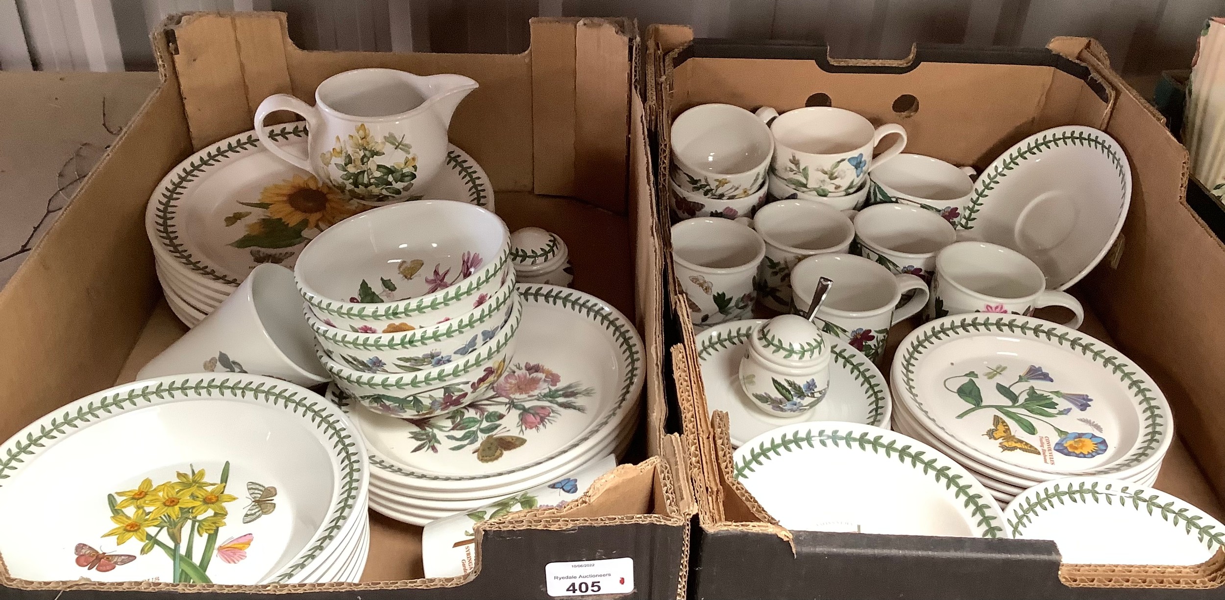 Large selection of Portmerion botanic garden ceramics including cups, saucers, dinner plates, soup bowls etc (2 boxes)