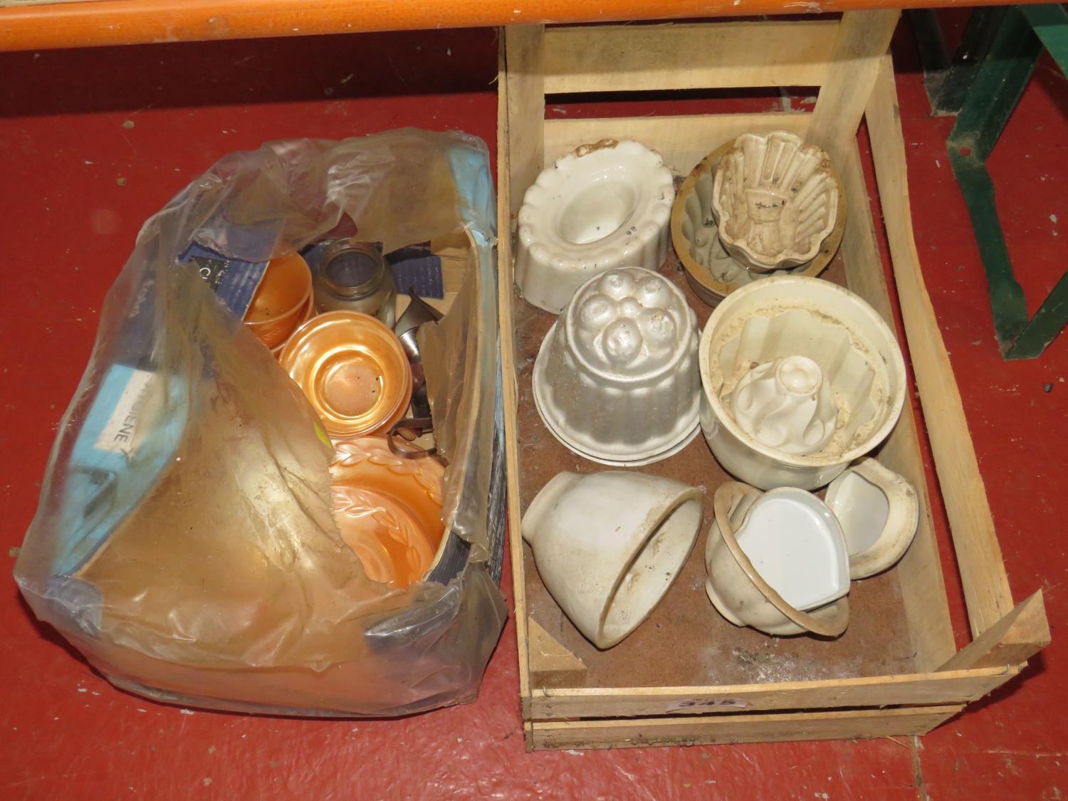 8 china jelly moulds & orange glassware