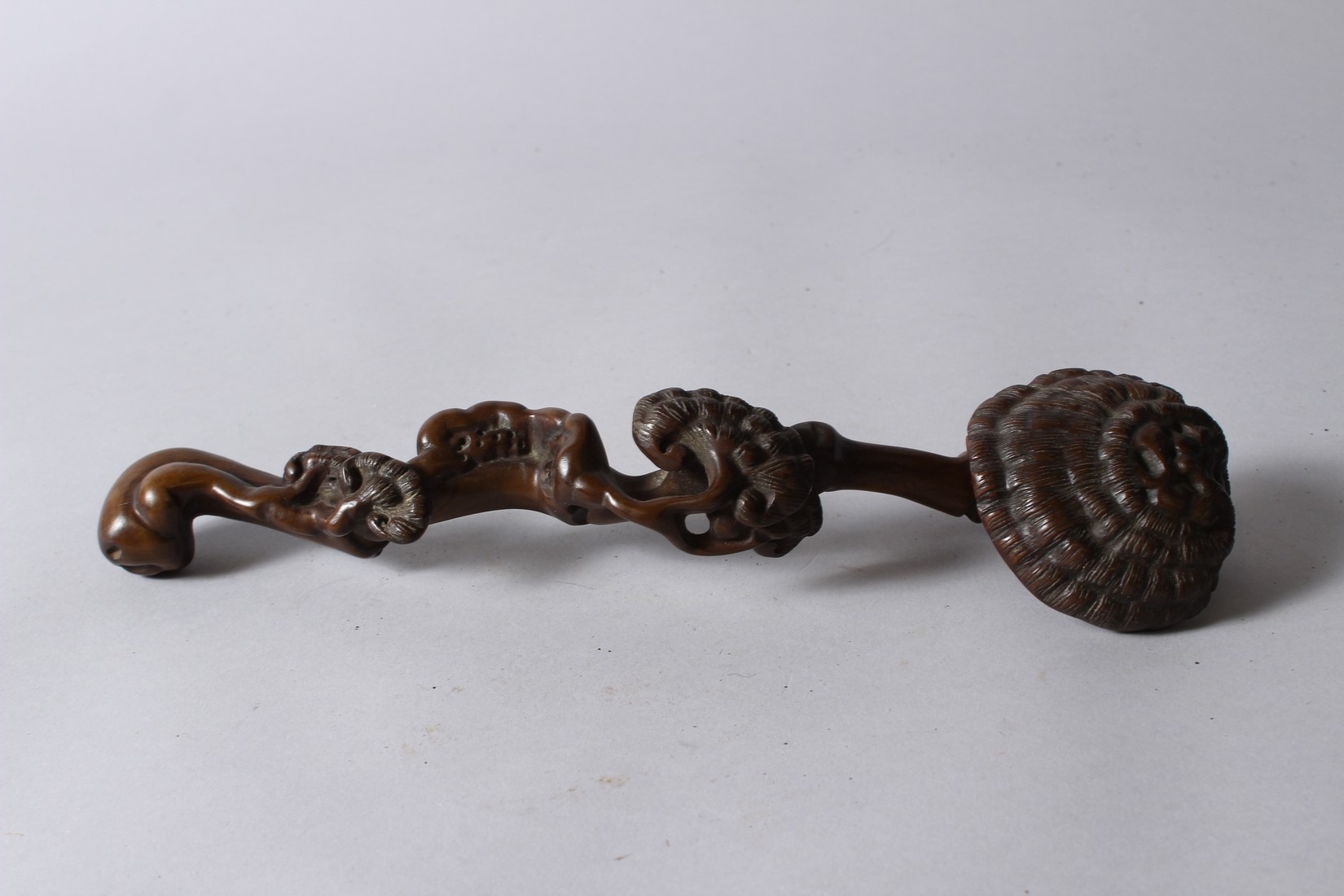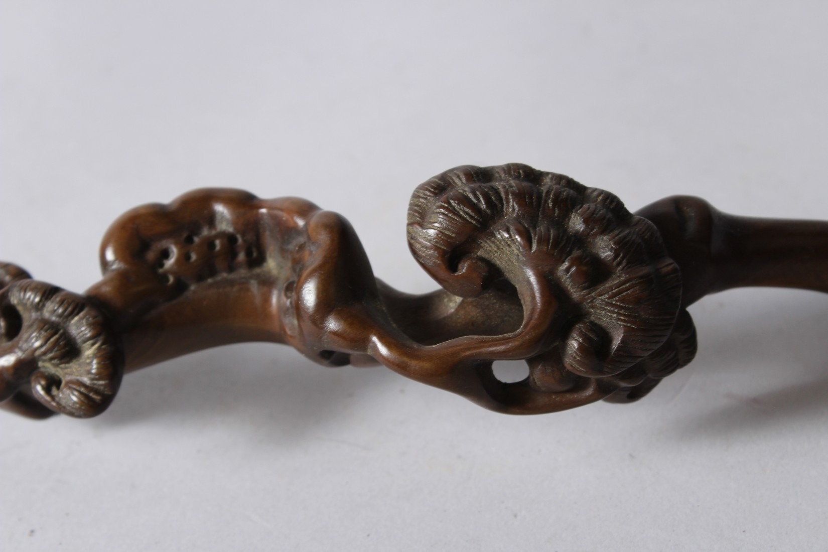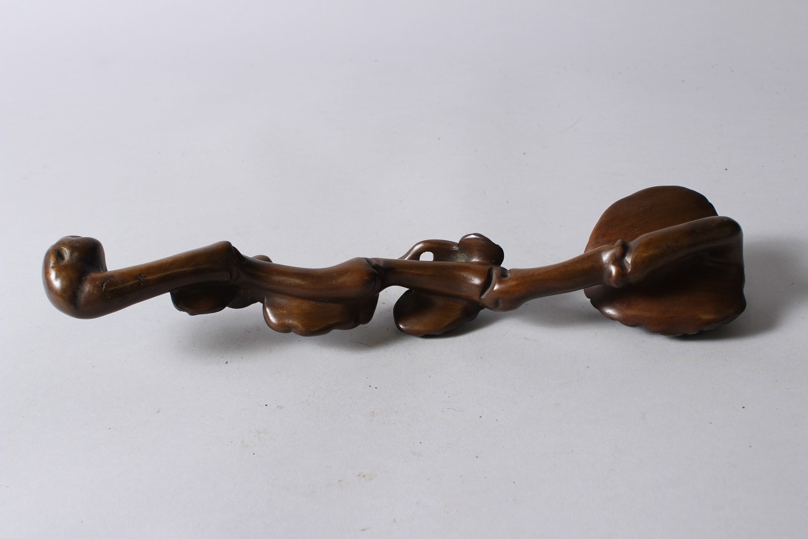 A CHINESE CARVED WOOD RUYUI SCEPTRE, of naturalistic form. 33cms long.