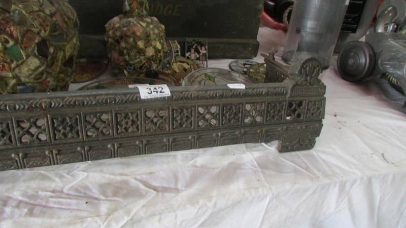 A cast iron fire curb, 110 cm wide by 20 cm deep. (Collect only)