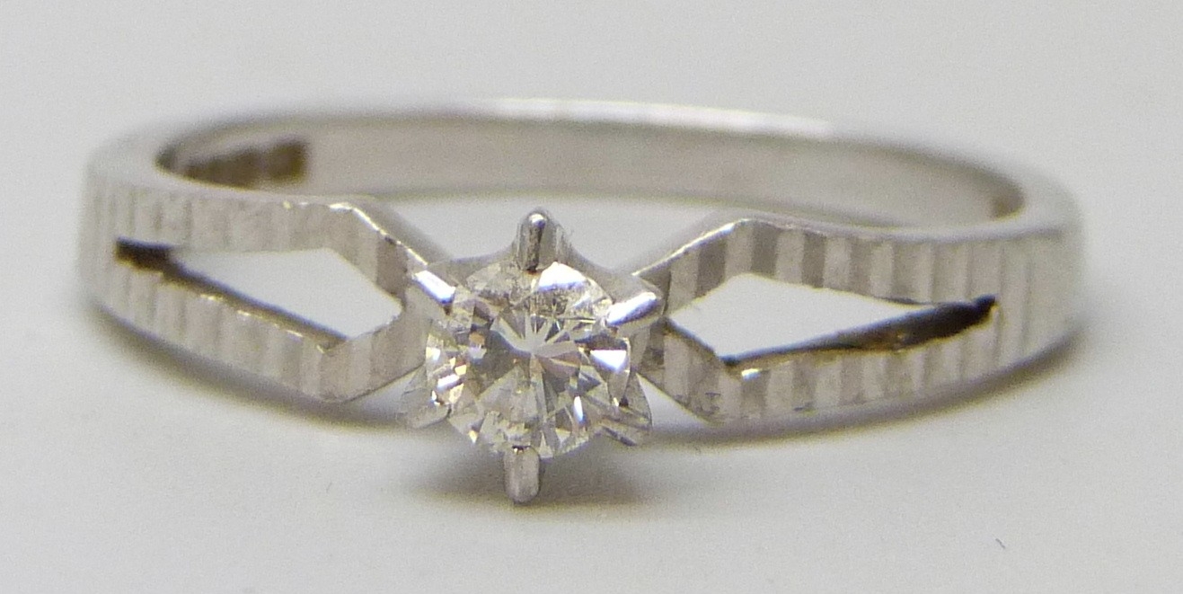An 18ct white gold diamond solitaire ring, 3.1g, O