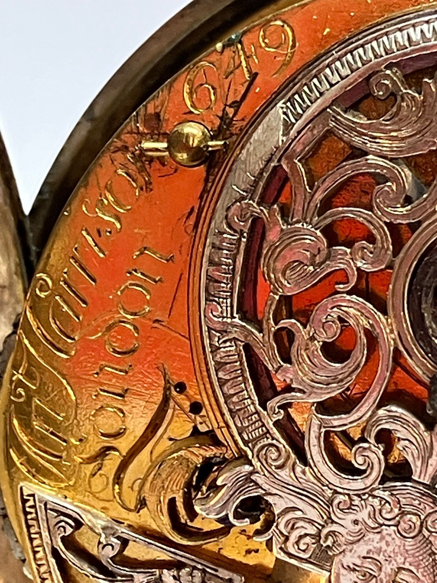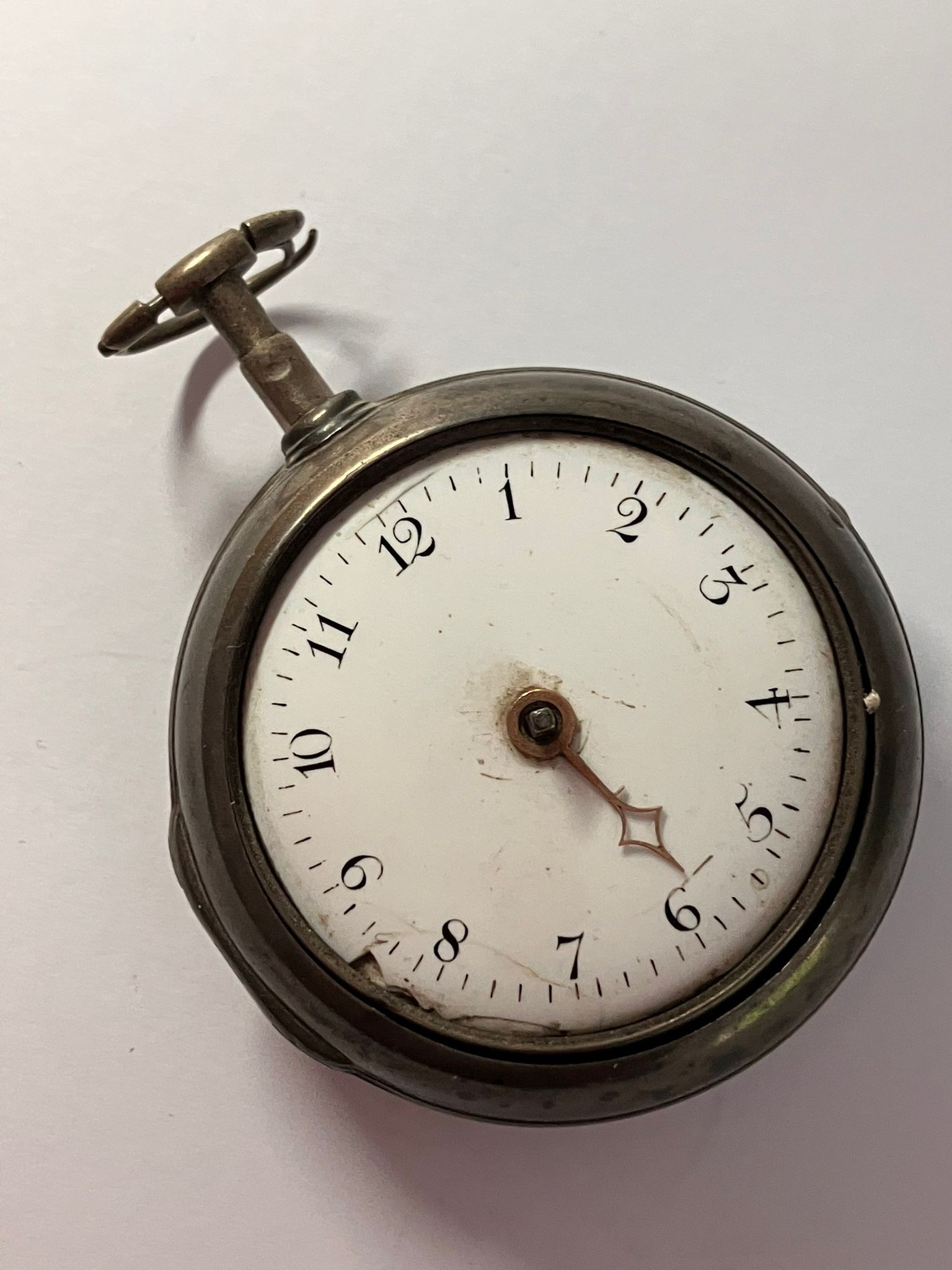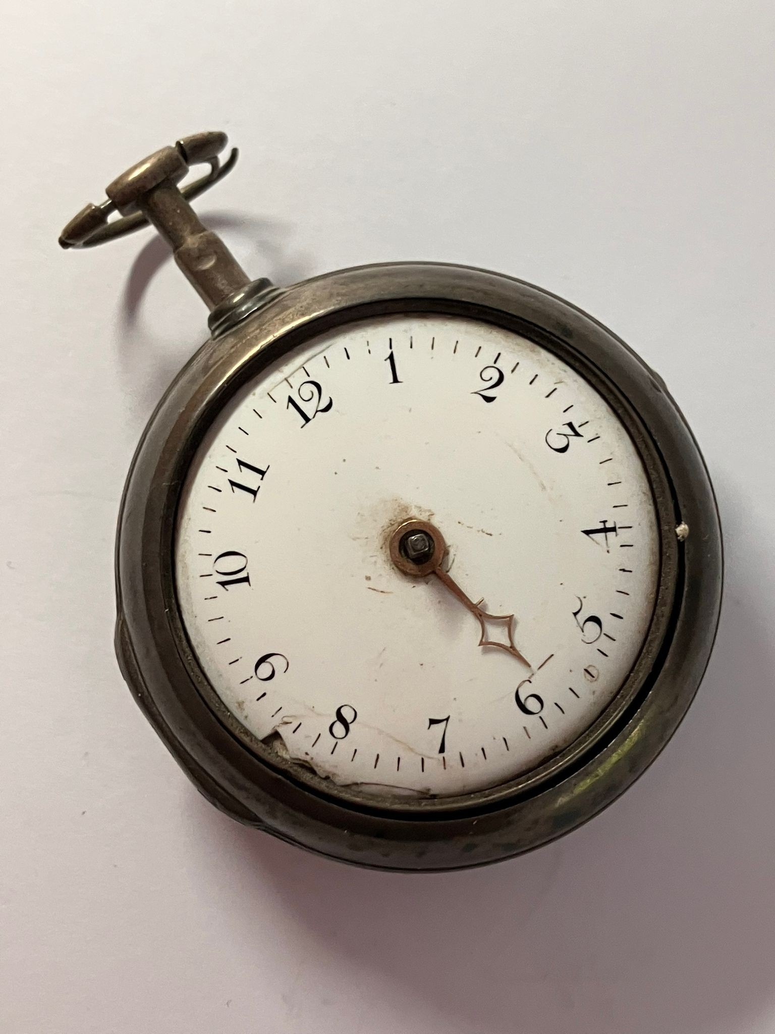 Rare Antique SILVER PAIRED POCKET WATCH. Outer Silver Case Hallmarked London 1799. Exquisite Inner Mechanism set with 0.2 CARAT DIAMOND to Filigree Centre. Mechanism signed Harrison London. Missing a hand. Ticks nicely when agitated. Please see all pictures. af.