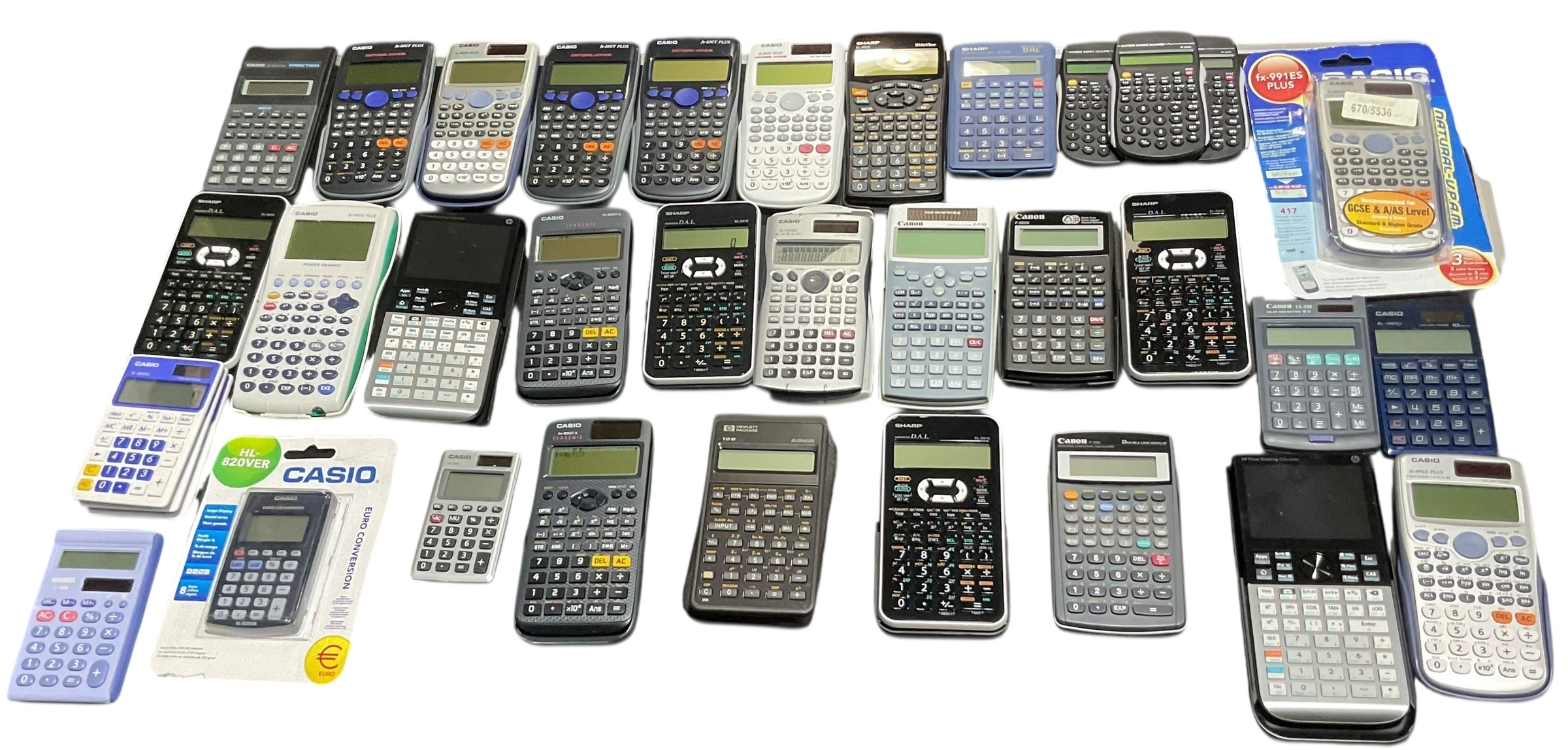 A Collection of 30+ Mostly Scientific Calculators .Casio, Sharp, Canon etc.
