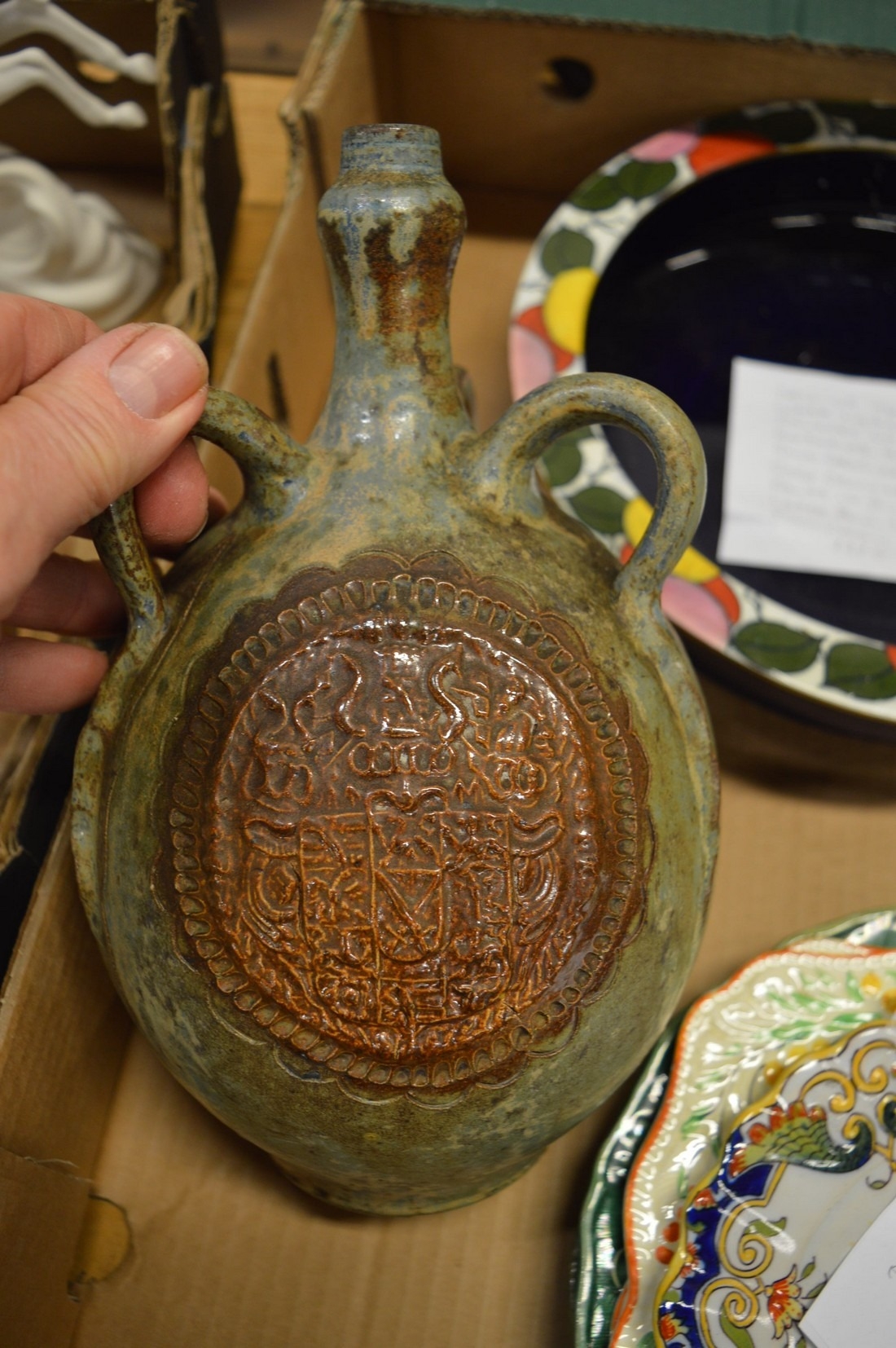 A French Rouen dish, Bursley ware bowl, salt glazed bottle v...