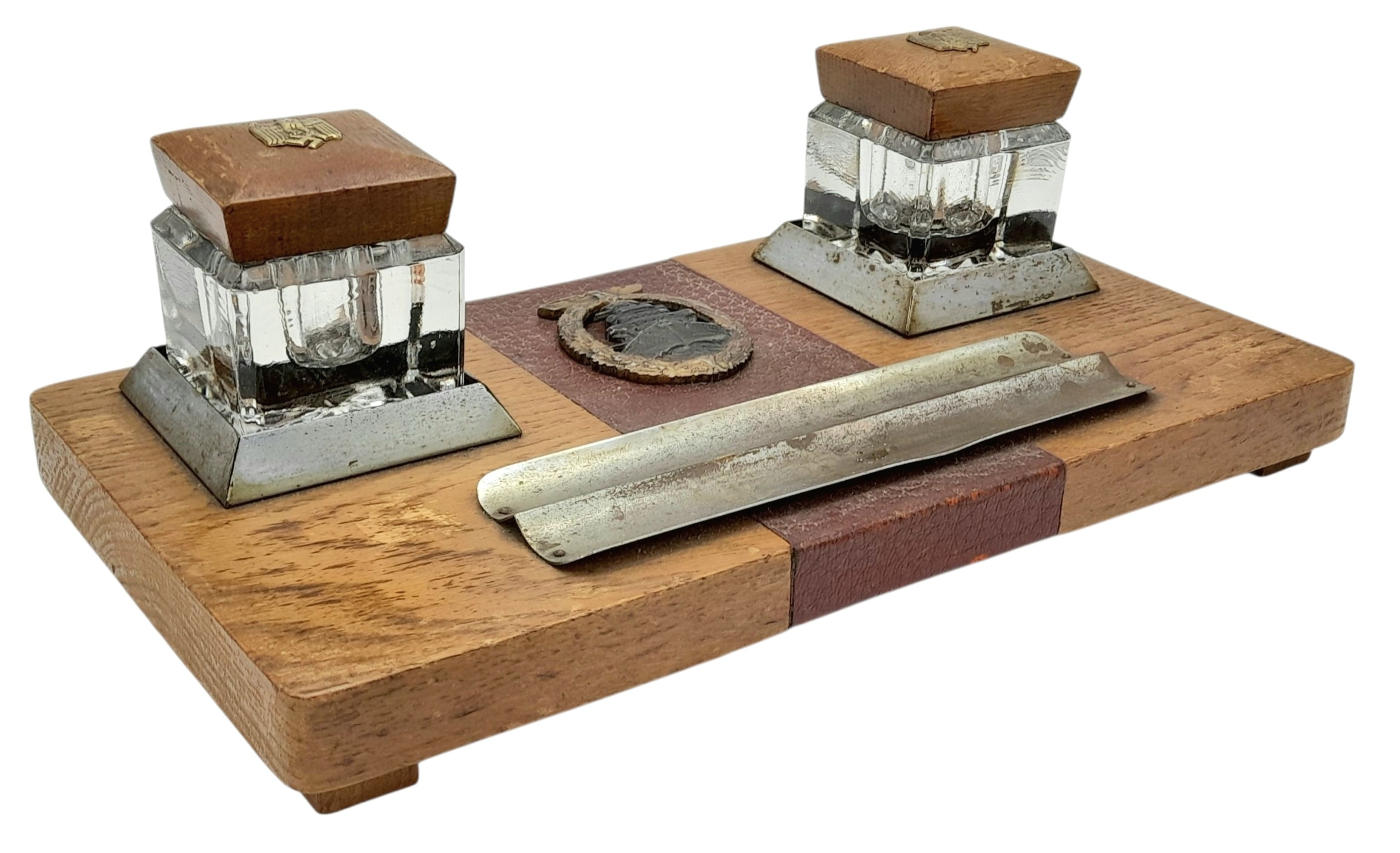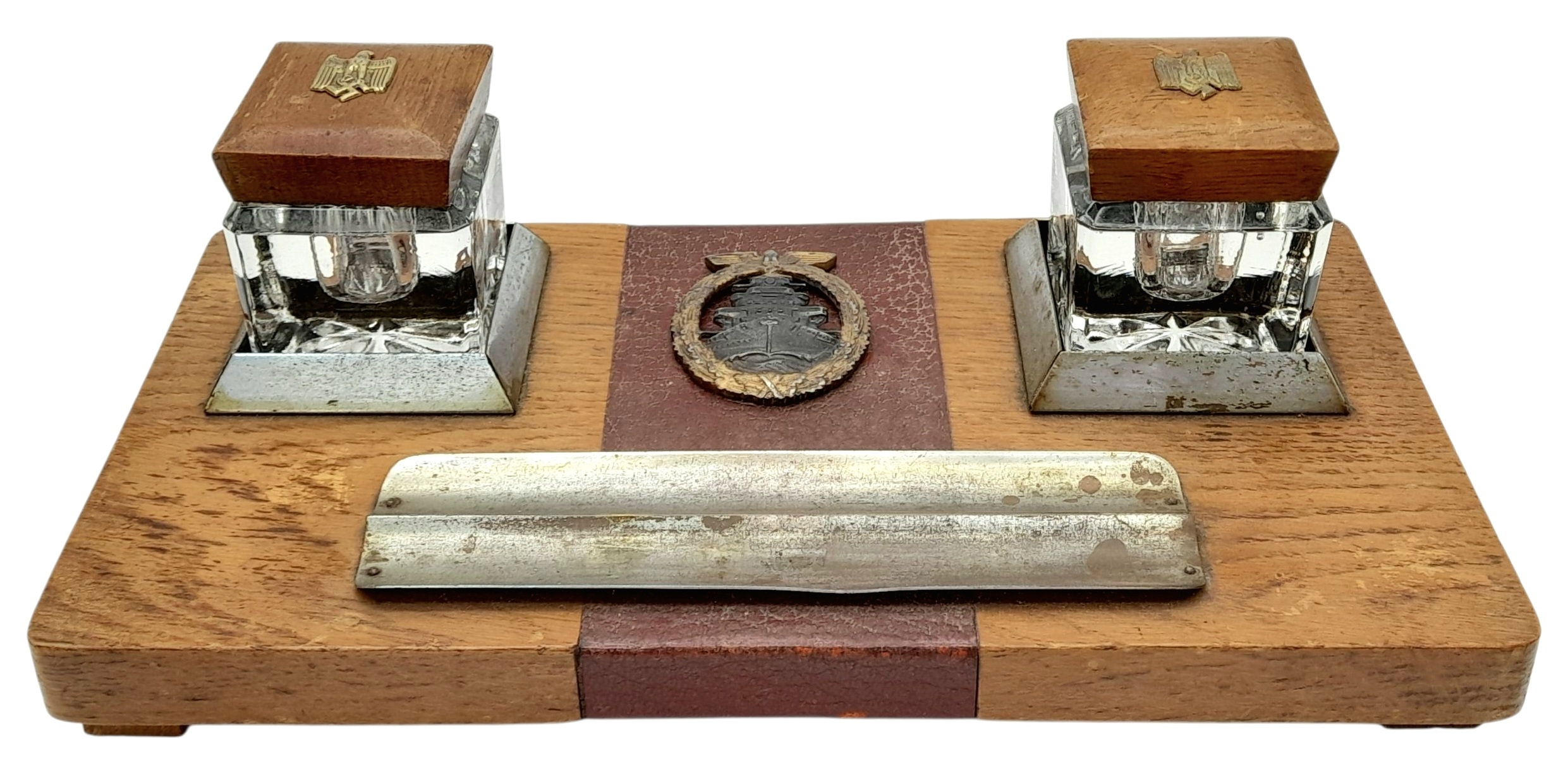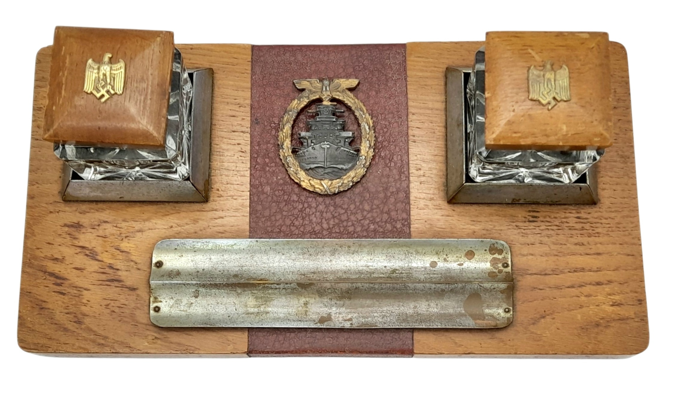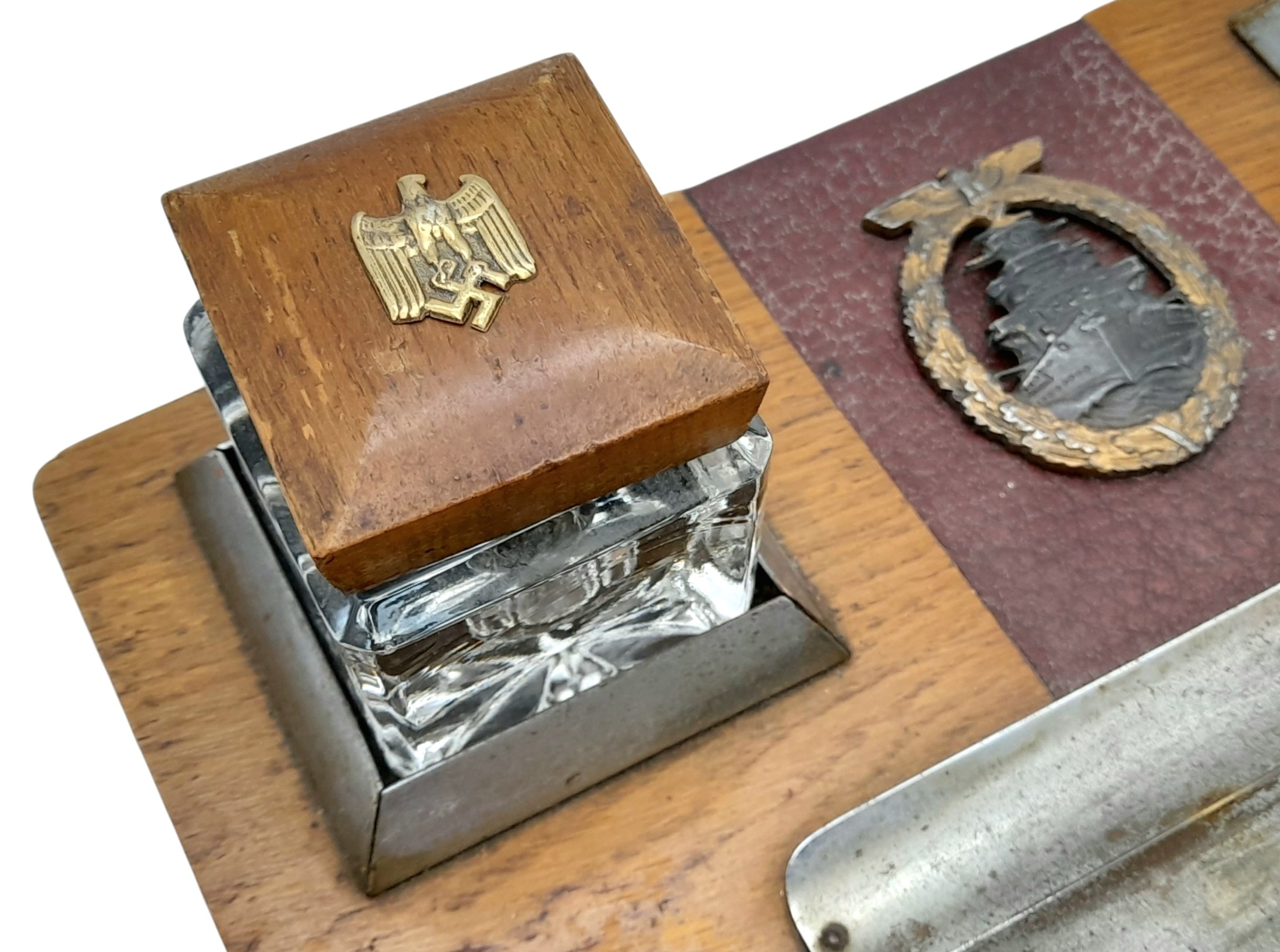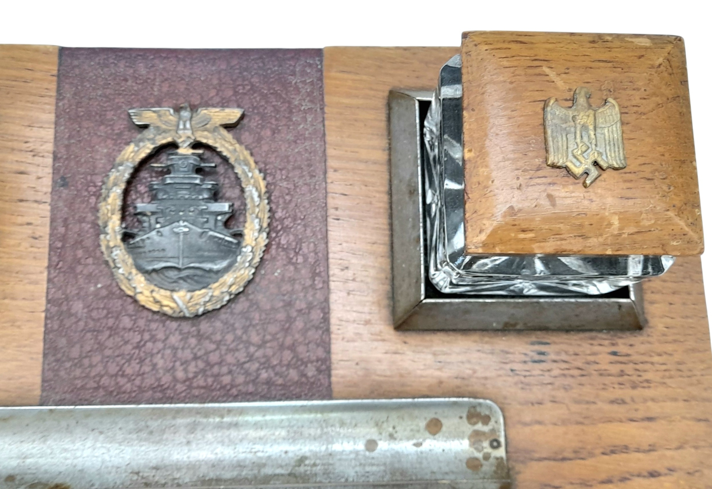 Kriegsmarine Memorial Desk Set. The High Seas Badge indicates he served on Battleships and Cruisers. Maybe a leaving gift for a sailor who became desk bound?