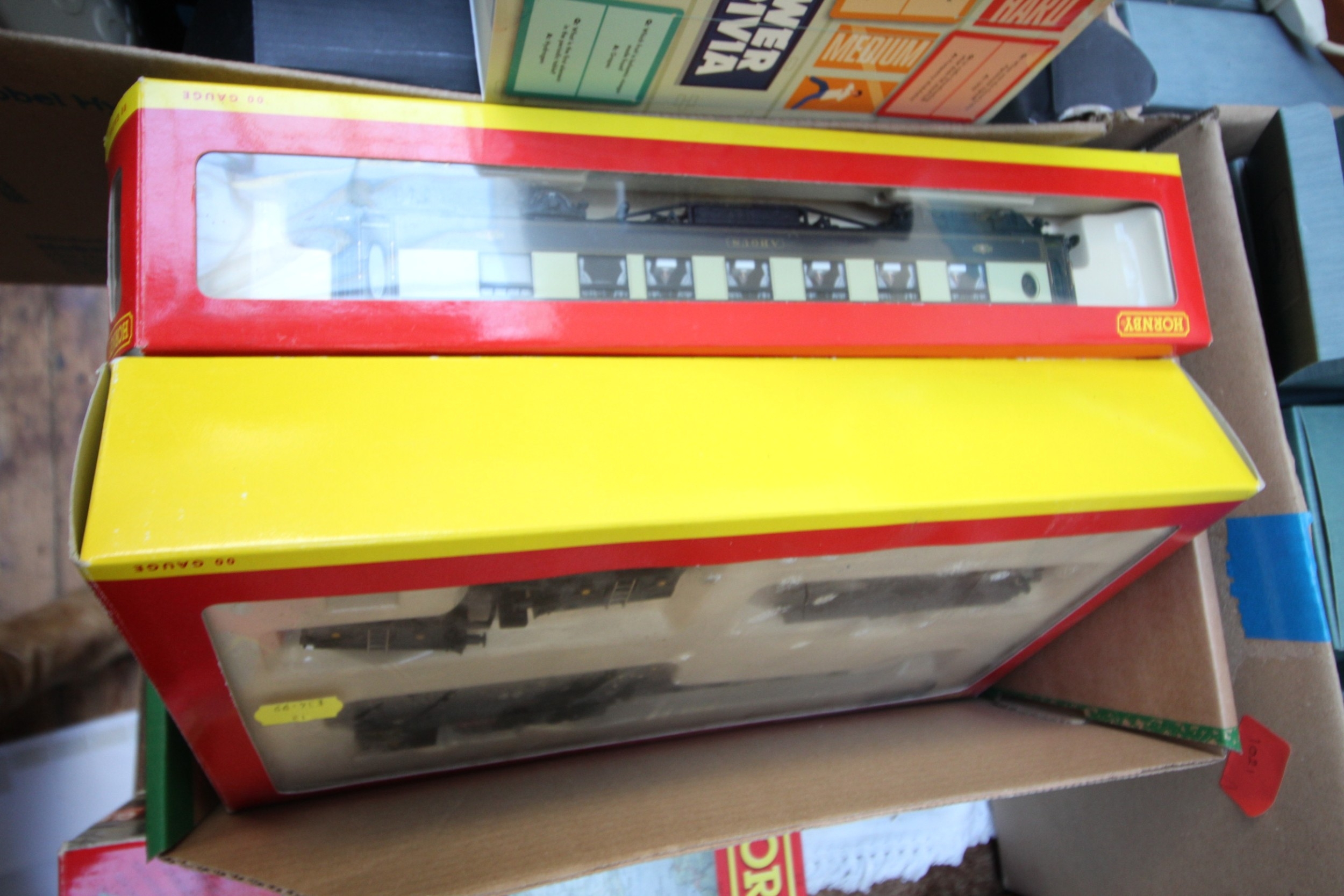 6 originally boxed Hornby OO gauge carriages and freight being a R4163 Pullman Parlour Car, Pullman Dining Car, Argos and Minerva and car number 248 together with R6183BR75 tonne breakdown crane, also to include Hornby Smoky Joe Engine and 3 goods wagons