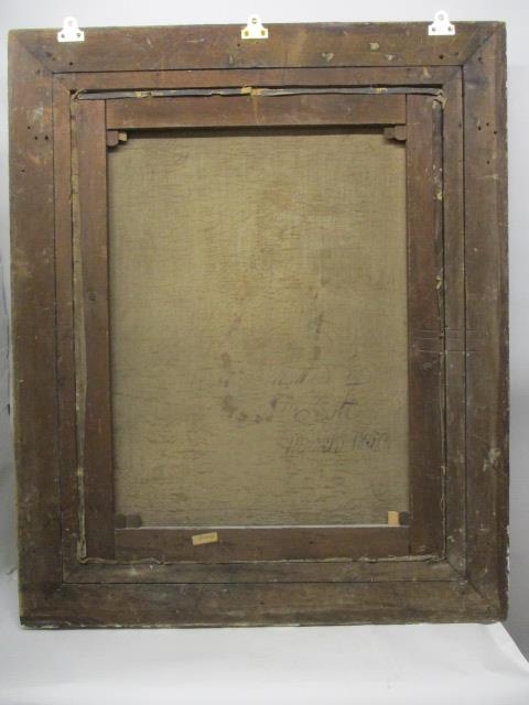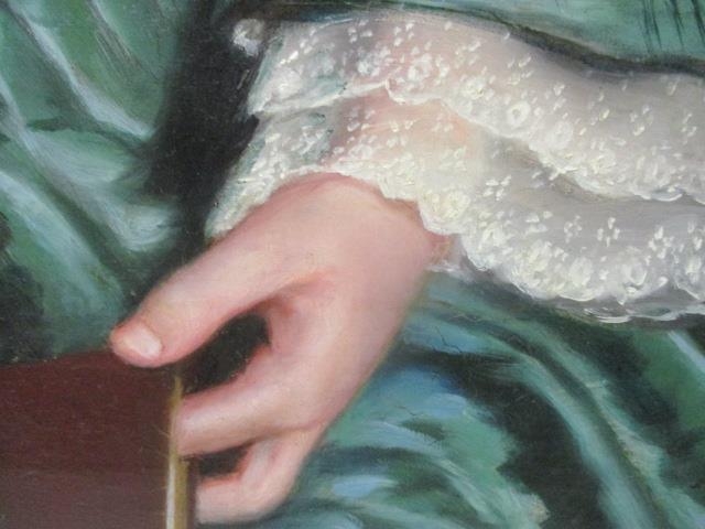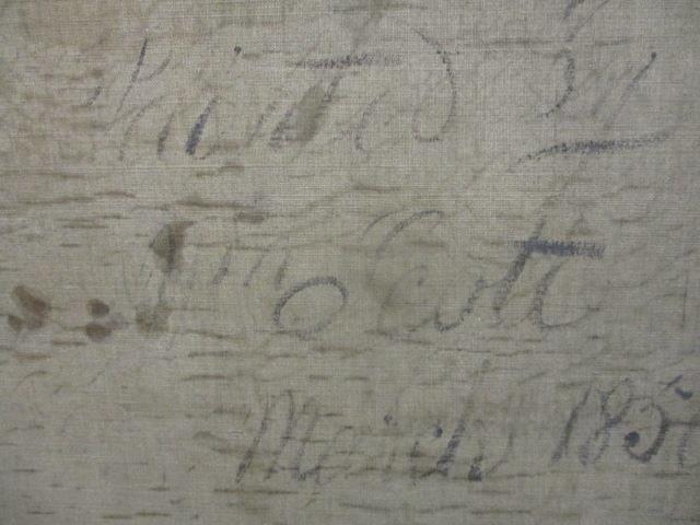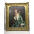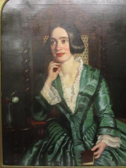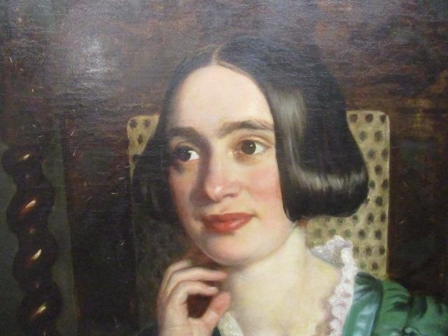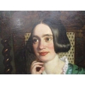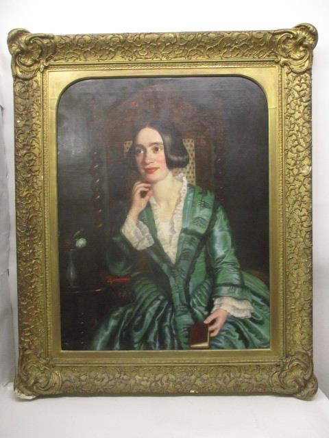 ** Scott - a half length portrait of a girl with black hair wearing a green dress with a lace collar, sat in an oak chair, oil on canvas, signed and dated March 1850 verso, 35" x 28", in gilt frame