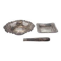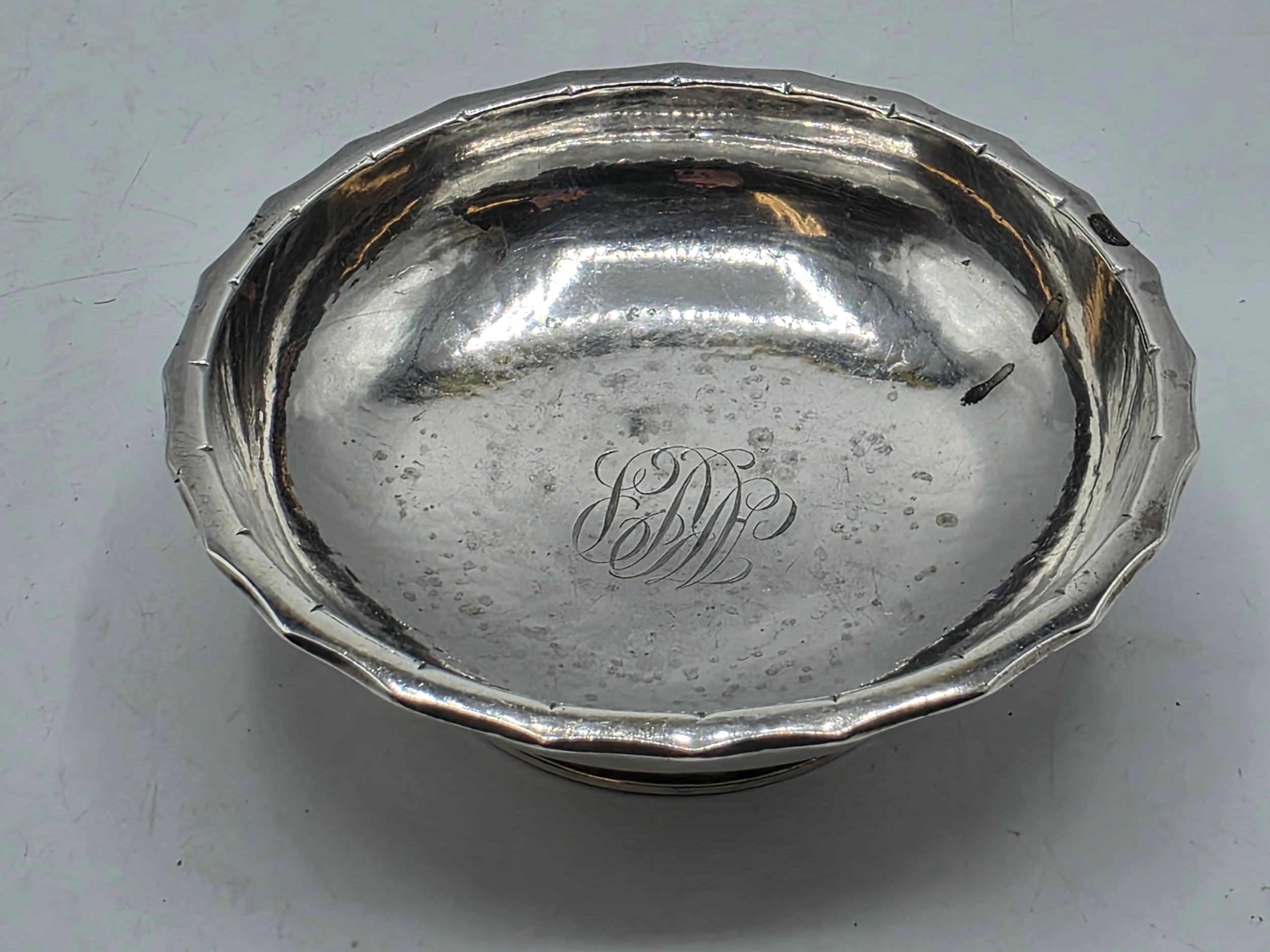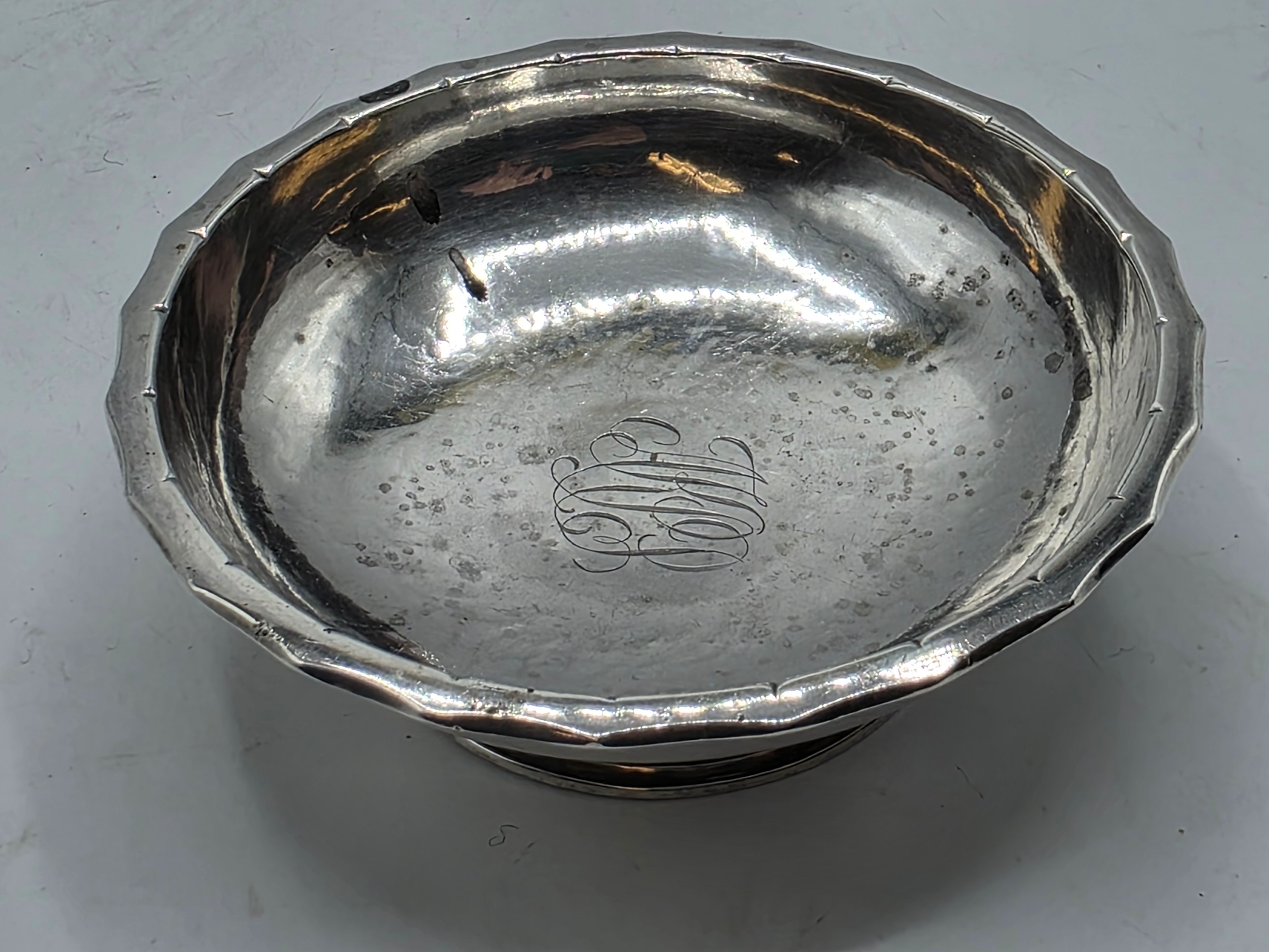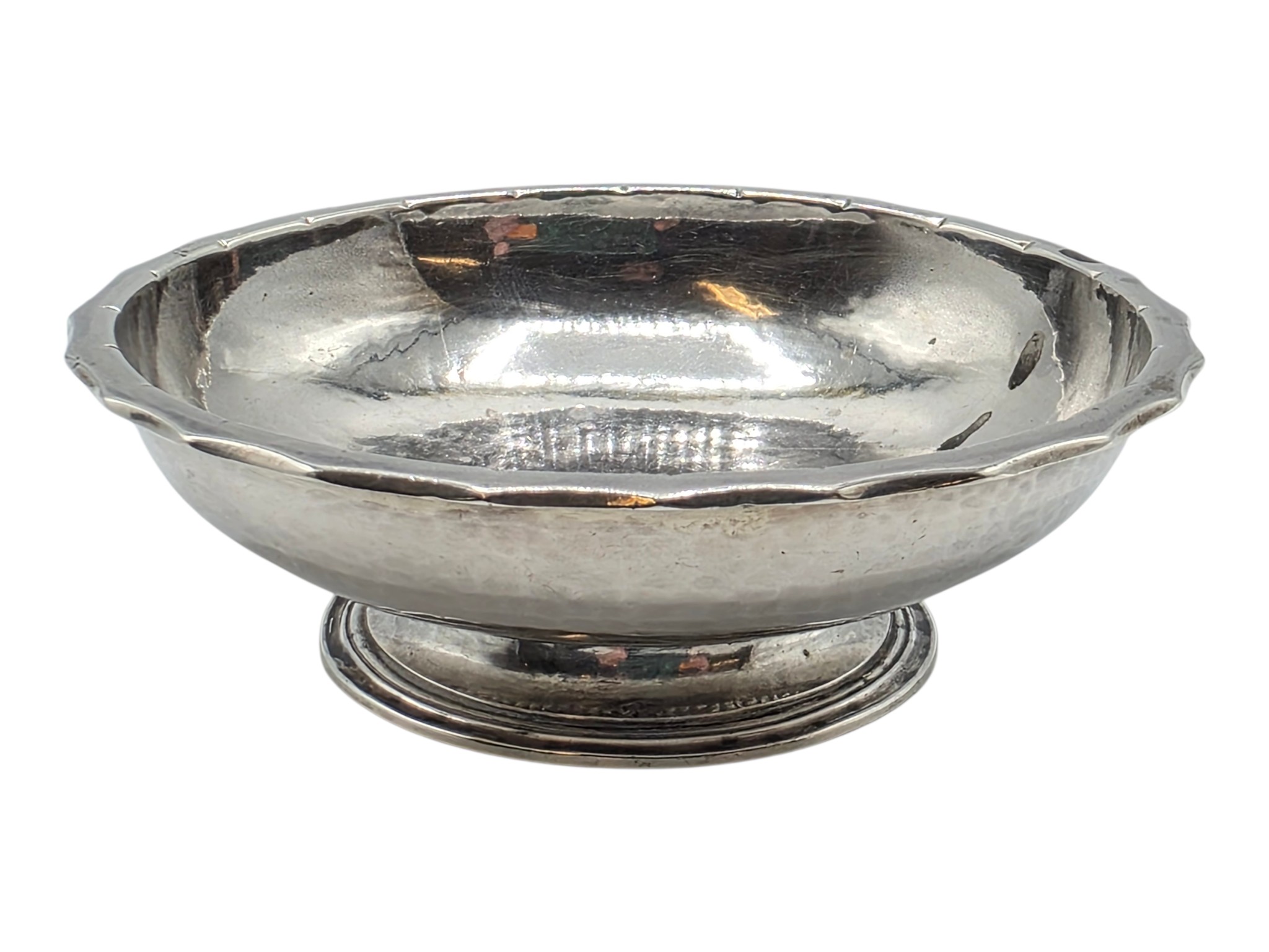 A sterling silver small footed bowl with plannished decoration, GF London 2002. 141g
