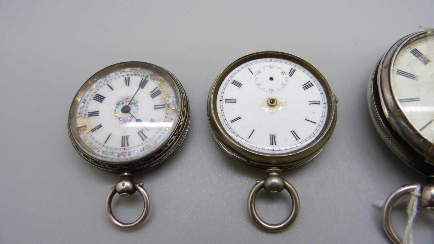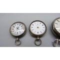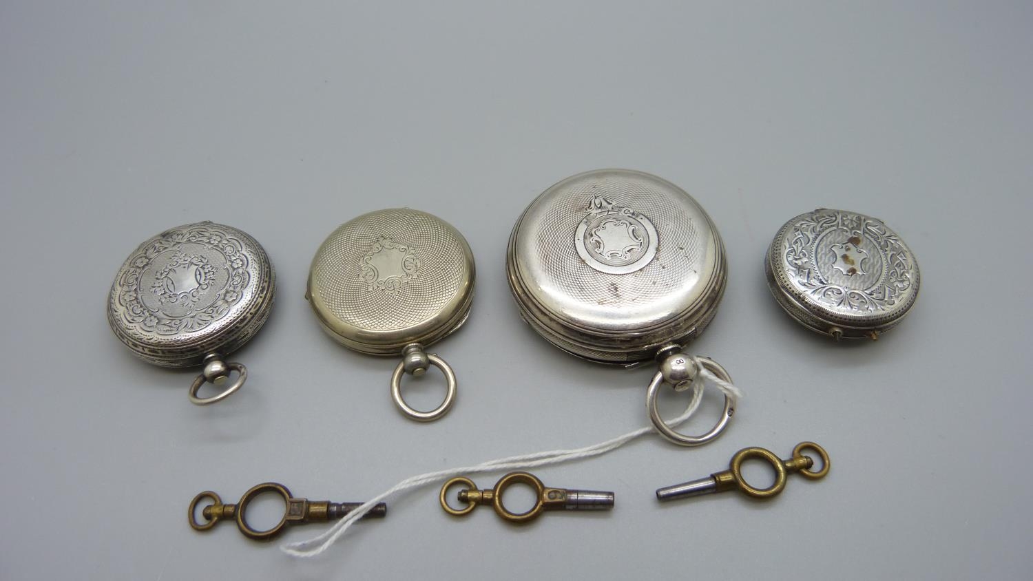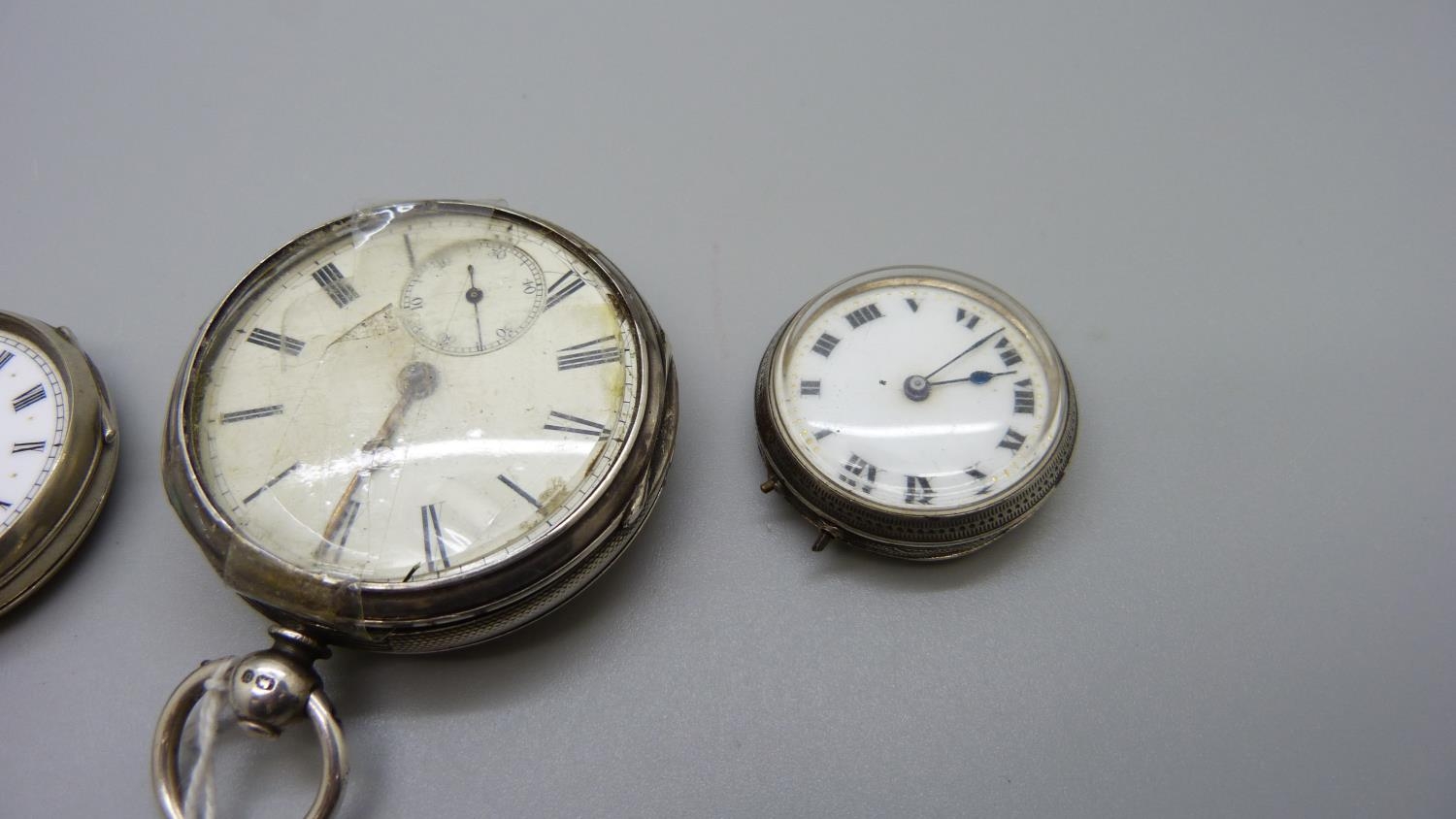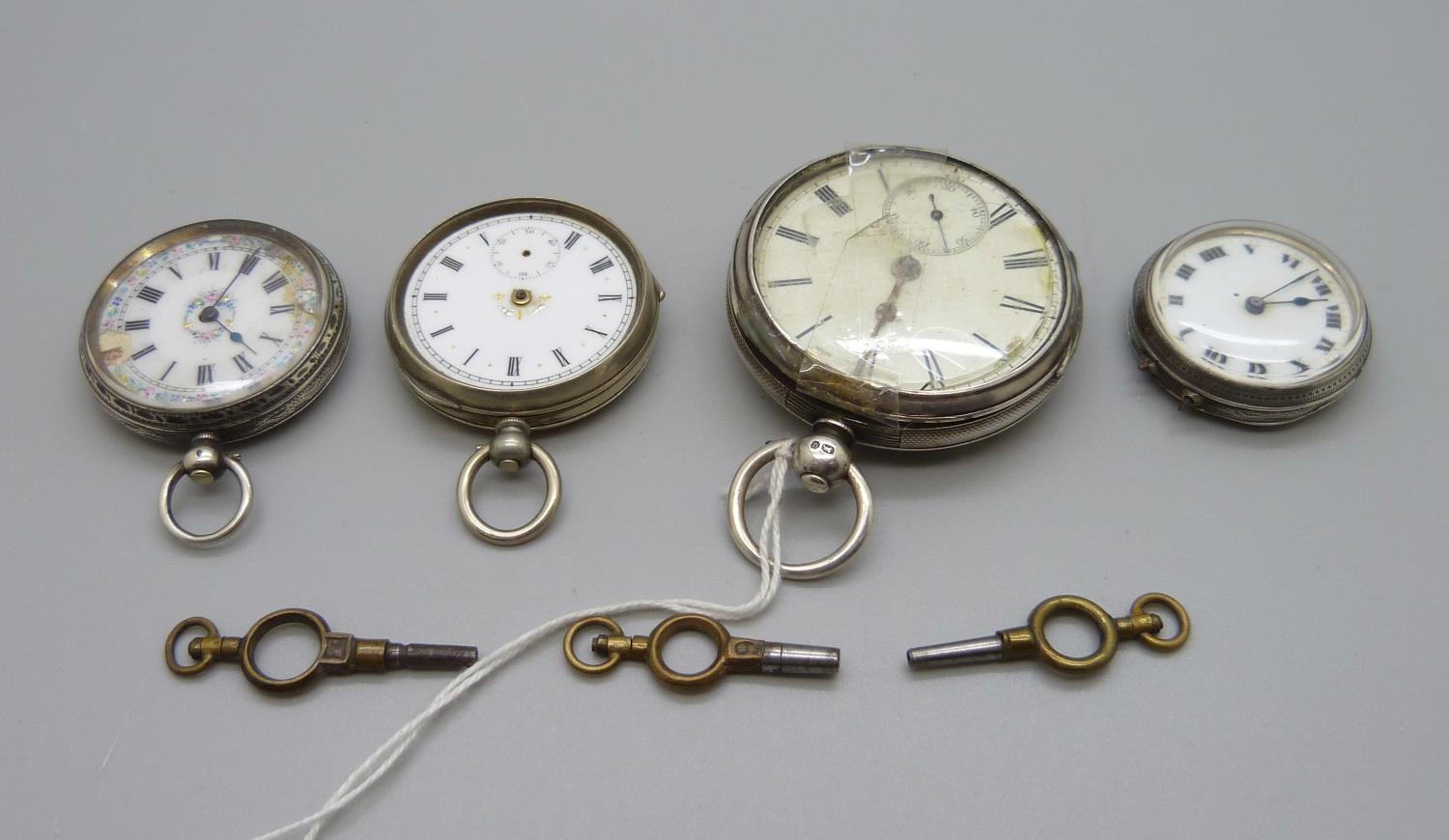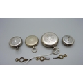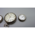 A J.B. Dent watch and chronometer makers fob watch, two silver fob watches and a silver pocket watch, a/f