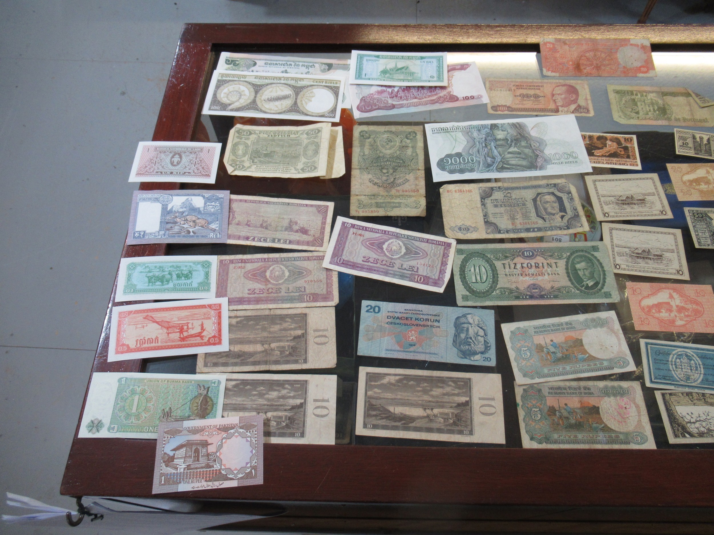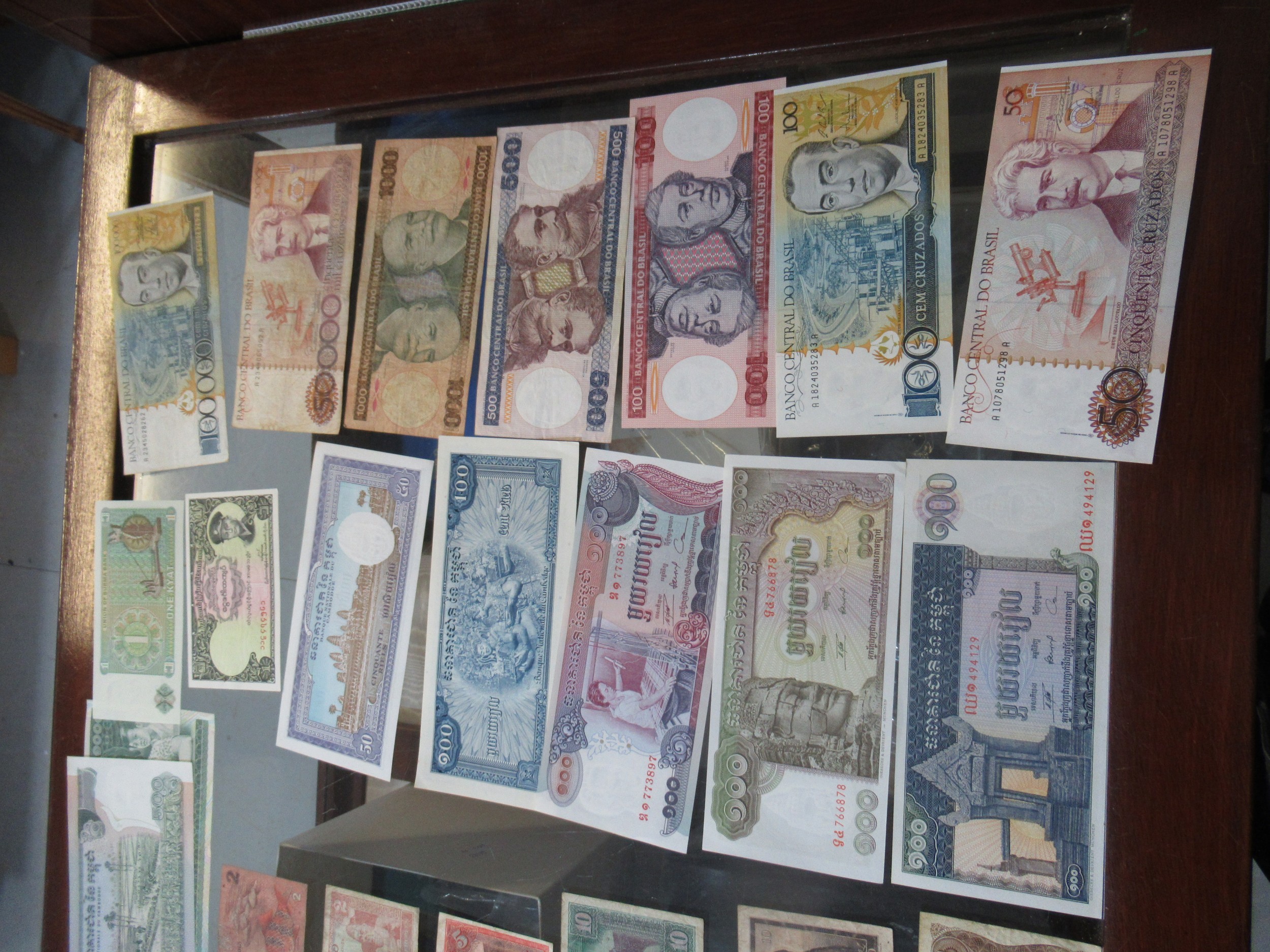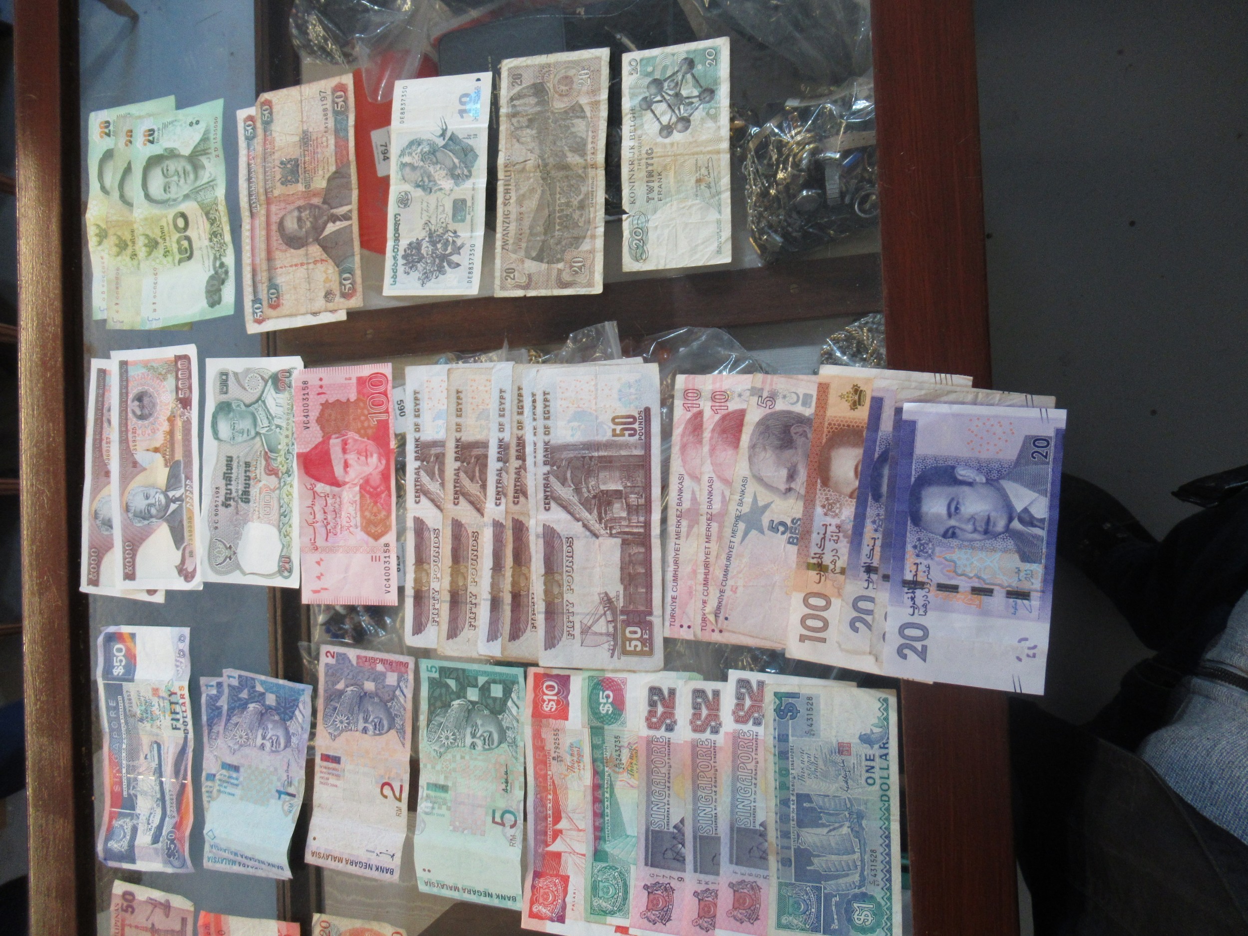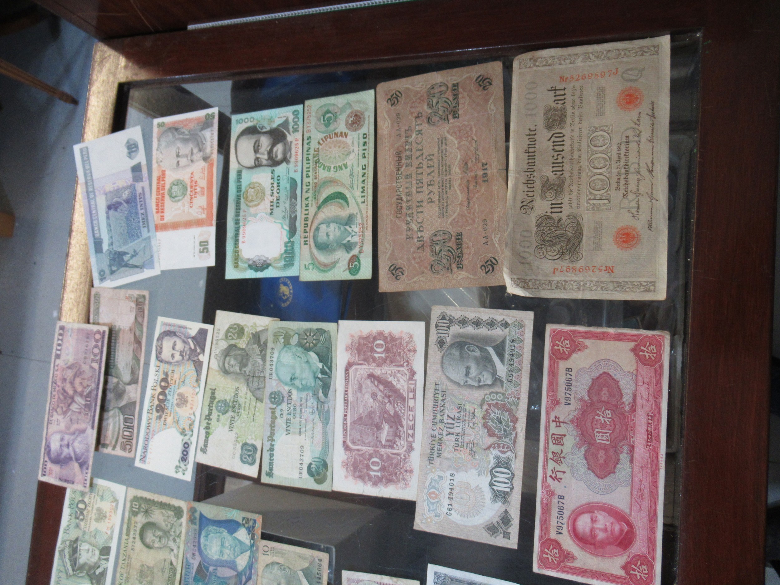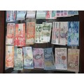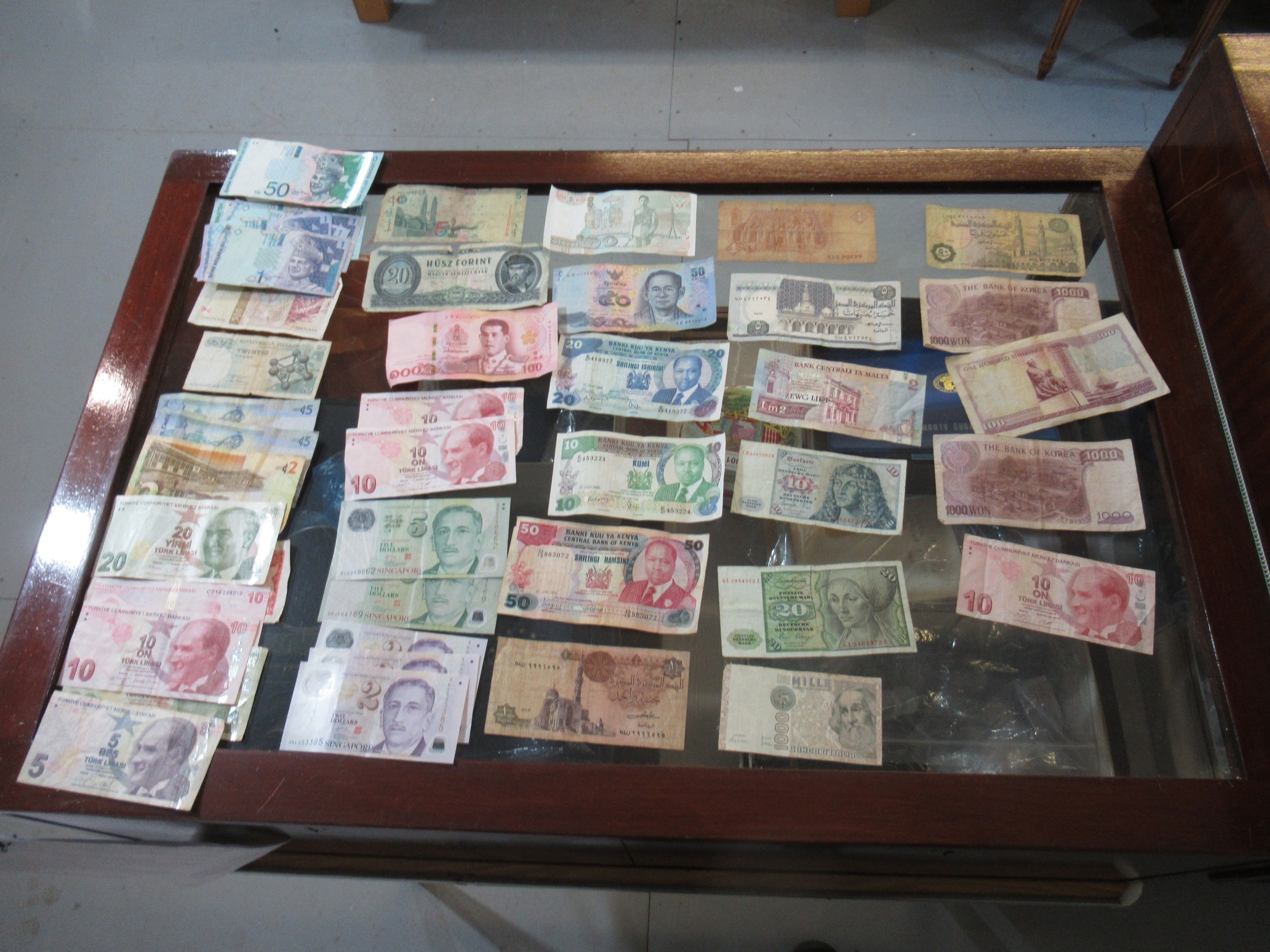 Two boxes containing a large quantity of various World coinage and bank notes including two antique hammered coins, a wheel penny etc
