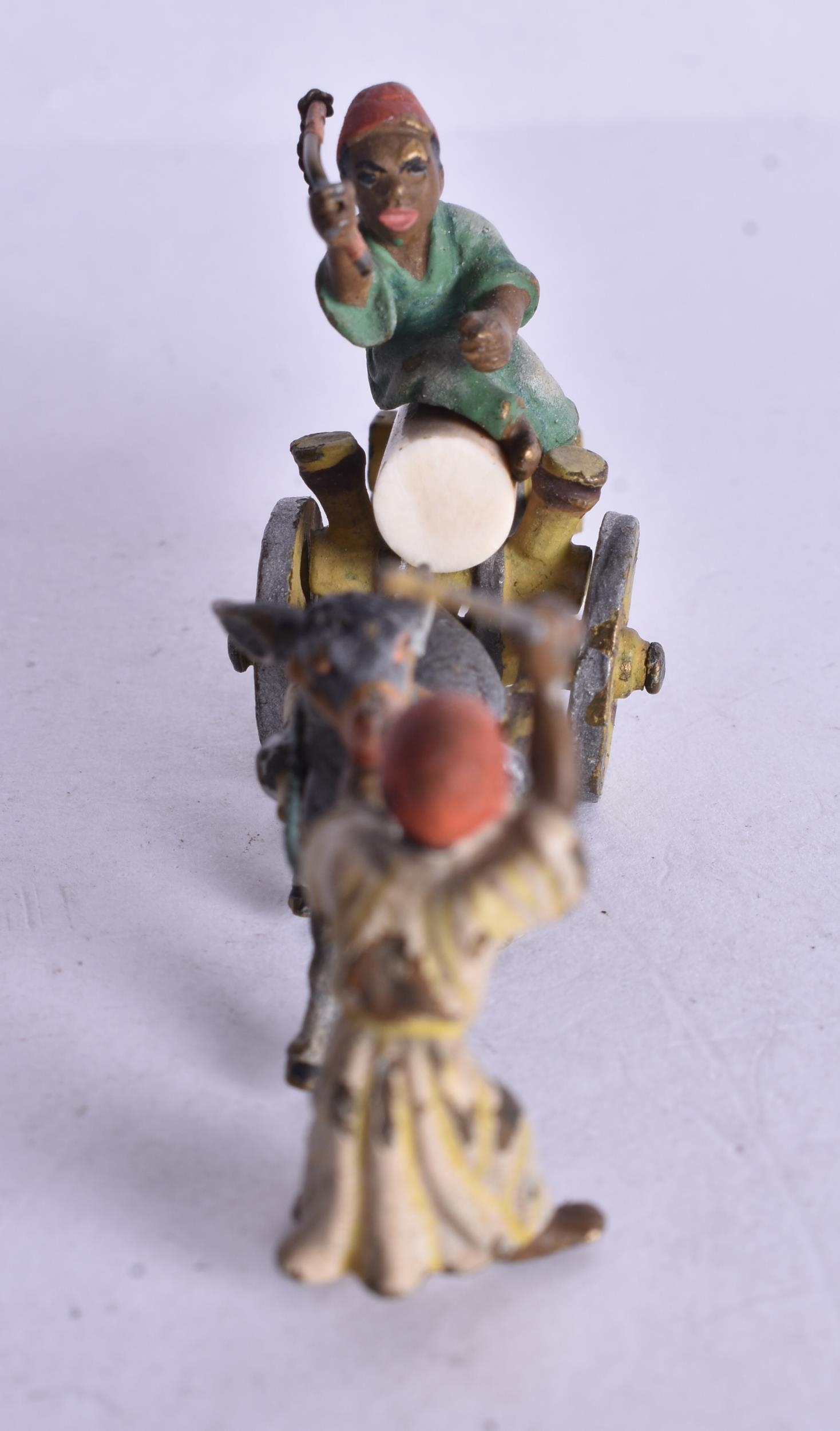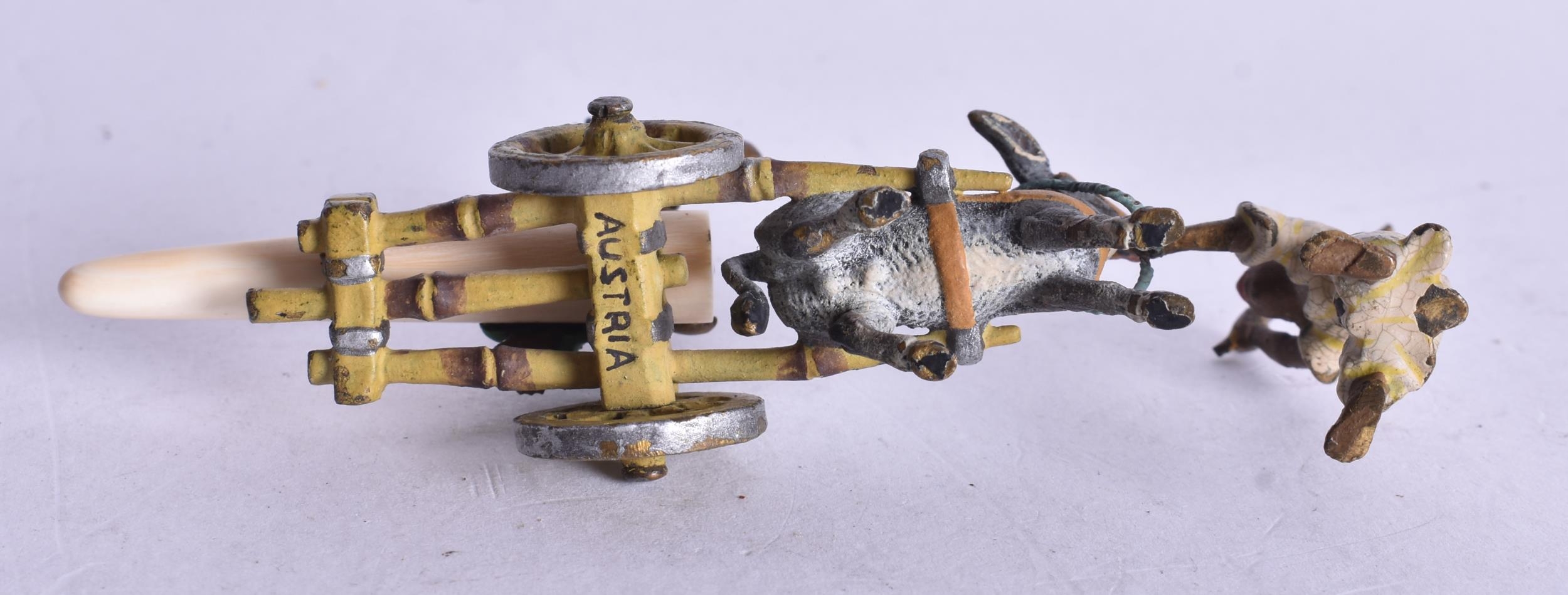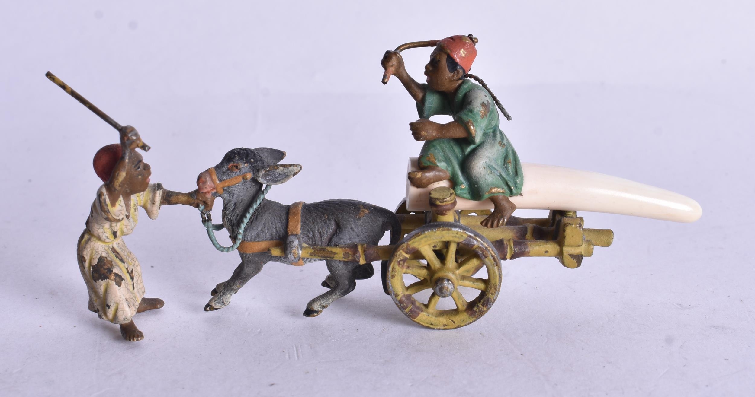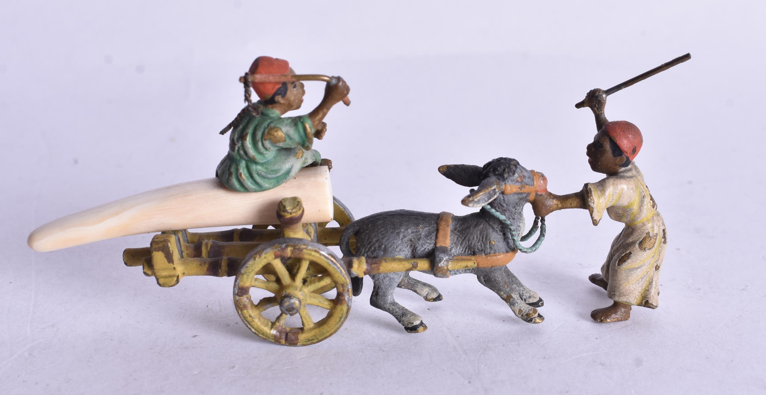 A Cold Painted Bronze of Arabs attending a Donkey Cart. 4.1cm x 9.4cm x 2.5cm