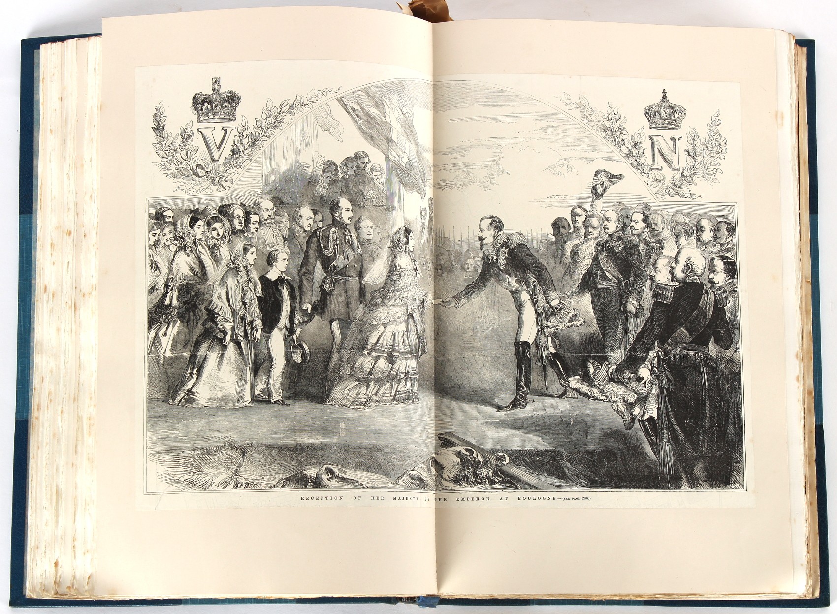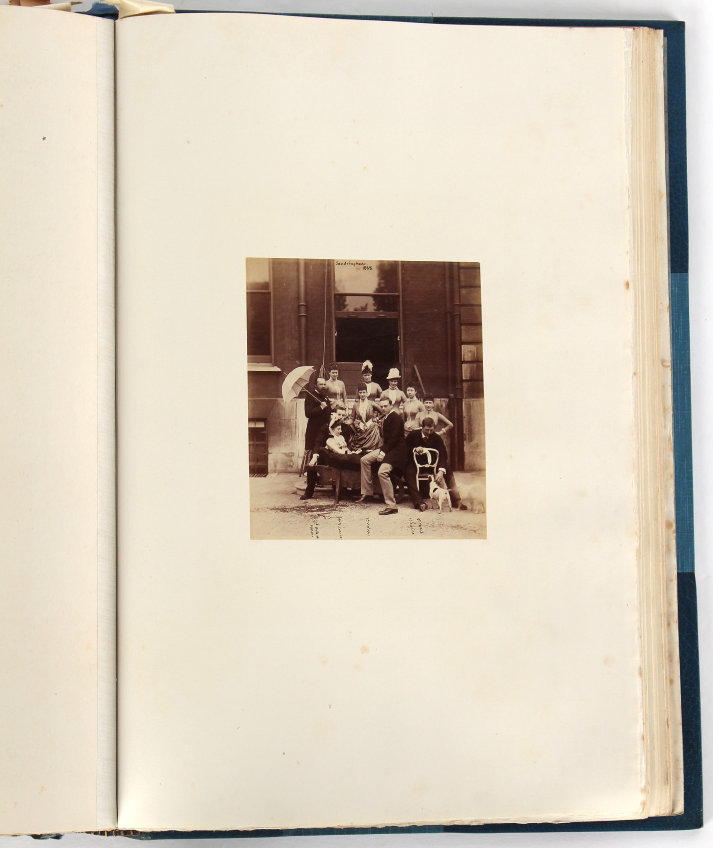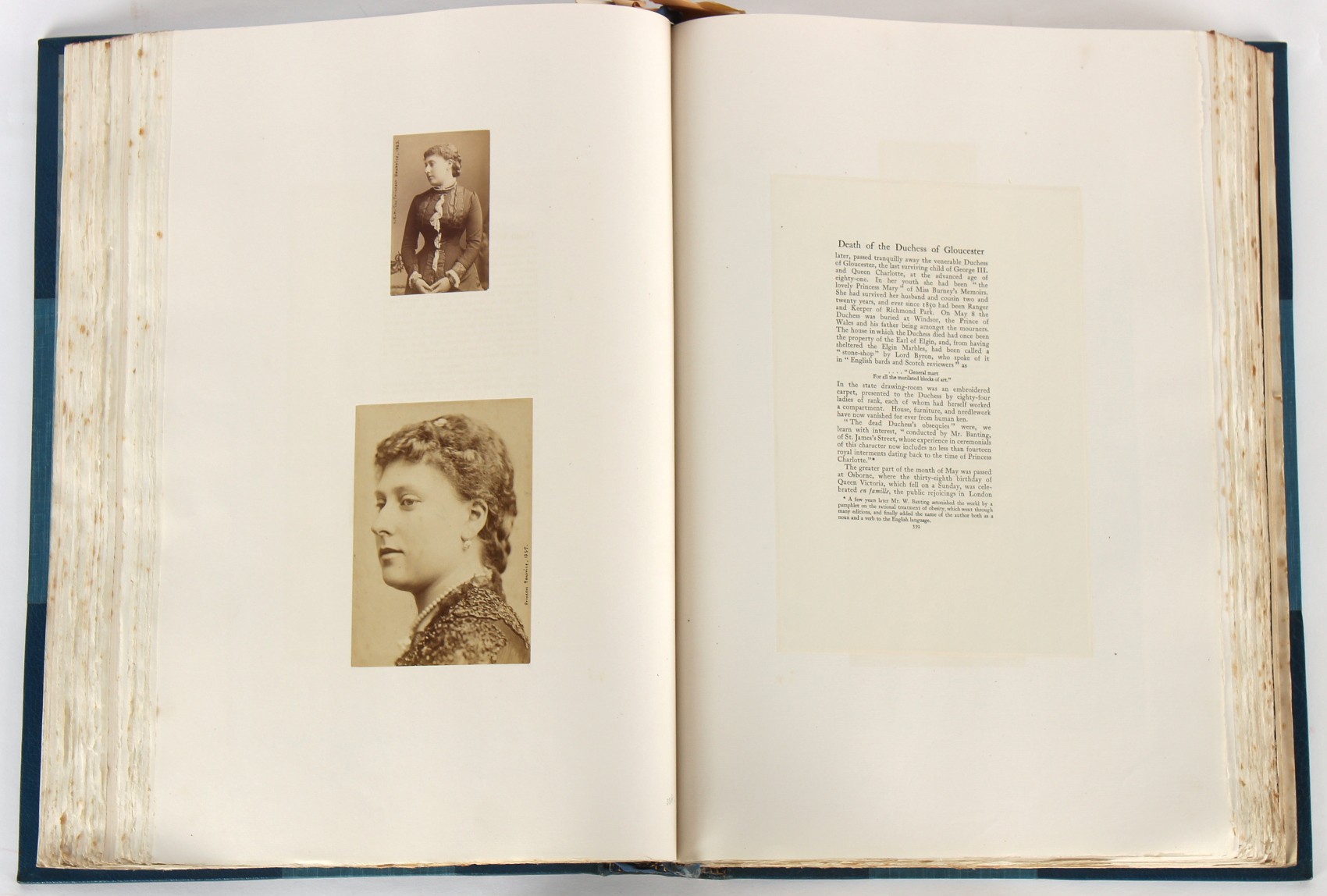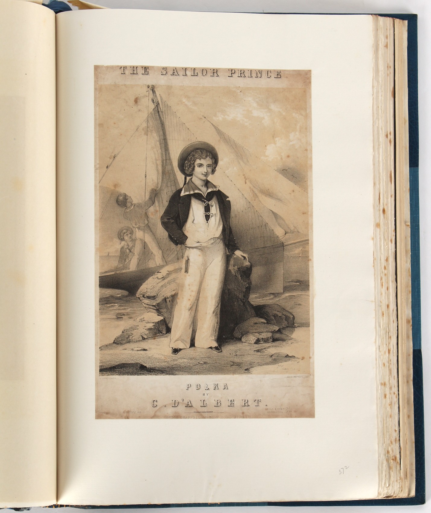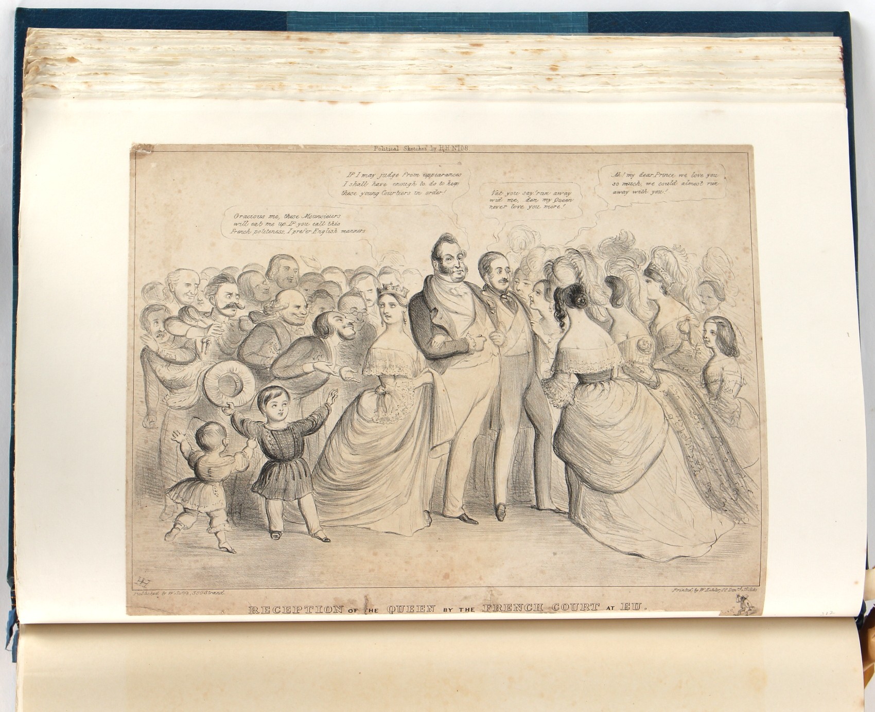 Property of a lady - BROADLEY, Alexander Meyrick - 'The Boyhood of a Great King 1851-1858, Extra-Illustrated by the Addition of Many Contemporary Caricatures, Portraits and Views. Collected in the Years 1911, 1912 & 1913, by Alfred Brewis, Newcastle-Upon-Tyne' - a 'Grangerized' or 'Grangerised' folio volume, finely bound by Cedric Chivers of Bath, 19.5 by 14.2ins. (49.5 by 36cms.) (overall, excluding blue cloth slipcase), a lavish collection of contemporary caricatures, views and portraits relating to the early years of Kind Edward VII including 23 colour plates from the book 'A Memorial of the Marriage of H.R.H. Albert Edward Prince of Wales and H.R.H. Alexandra Princess of Denmark', by Robert Charles Dudley, published in 1864 , also many contemporary albumen print photographs of British and European Royalty, Vanity Fair Spy cartoons, etc.. Footnote - Alexander Meyrick Broadley (1847-1916) was a British author, barrister, collector and social figure, known for defending Ahmed 'Urabi after the Urabi Revolt. Broadley penned numerous historical works later in life, particularly regarding Napoleon and his era. Among the works he authored or co-authored are 'Napoleon and the Invasion of England: The Story of the Great Terror' (London, 1908); 'Nelson’s Hardy: His Life, Letters and Friends' (London, 1909); 'Dumouriez and the Defence of England against Napoleon' (London, 1909); 'Napoleon in Caricature 1795-1821' (London, 1911); and 'Napoleon in Exile' (London, 1914). Broadley was known as a celebrated grangeriser (or extra-illustrator) of books, and one of his greatest achievements was the creation, with the assistance of Daniell, of an extra-illustrated set of Rose’s 'Life of Napoleon I' and Rosebery’s 'Napoleon. The Last Phase', by inlaying and extending the works from three octavo to twenty-eight folio volumes with engravings, portraits, manuscripts, autograph letters, etc. over a period of four years. This monumental work was bought by George Nathaniel Curzon, Marquess Curzon of Kedleston at the auction of Broadley’s library held in four sales between 1916 and 1918, and Curzon later bequeathed the set to the Bodleian Library, Oxford. Footnote Two - Alfred Brewis was a shipowner in Newcastle-upon-Tyne.