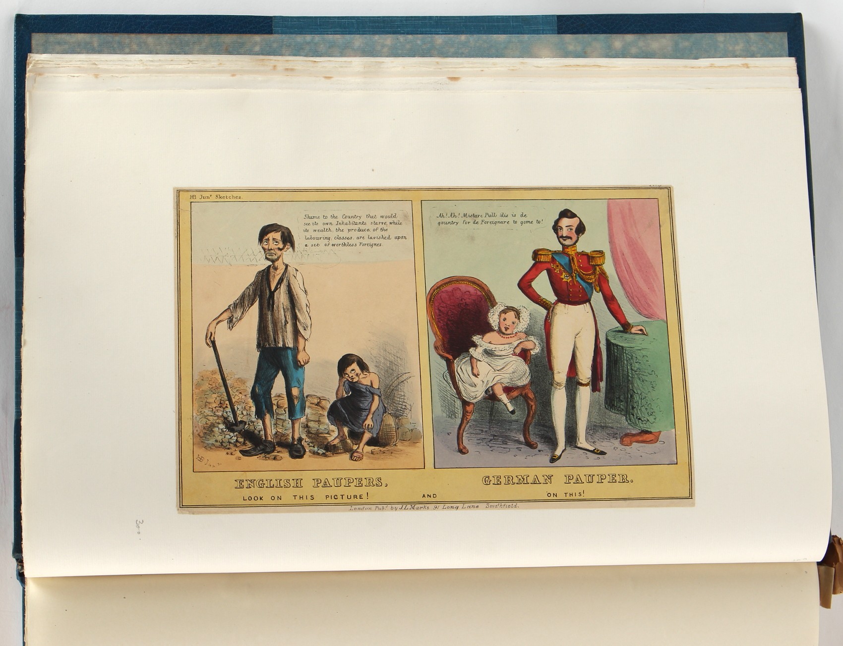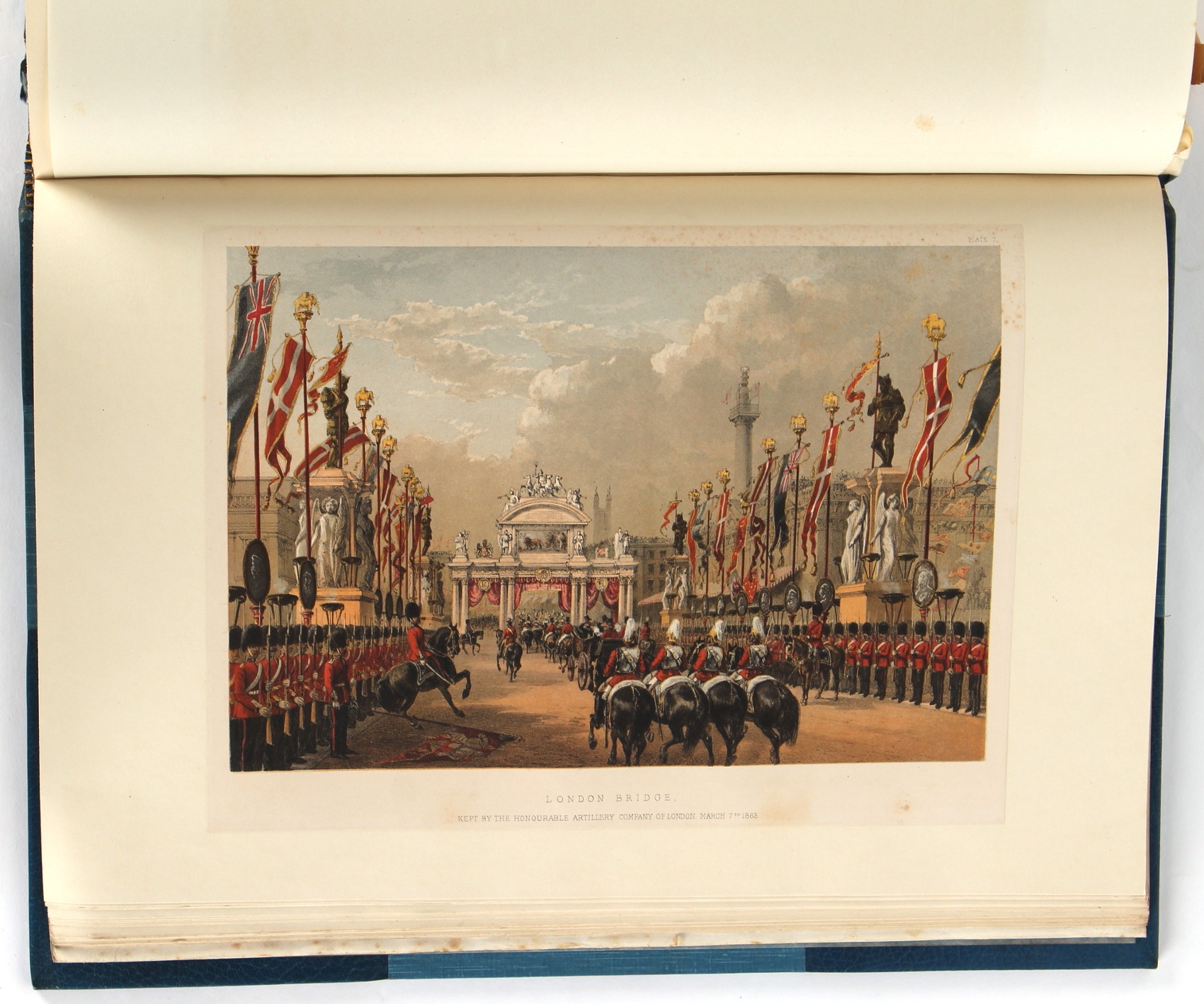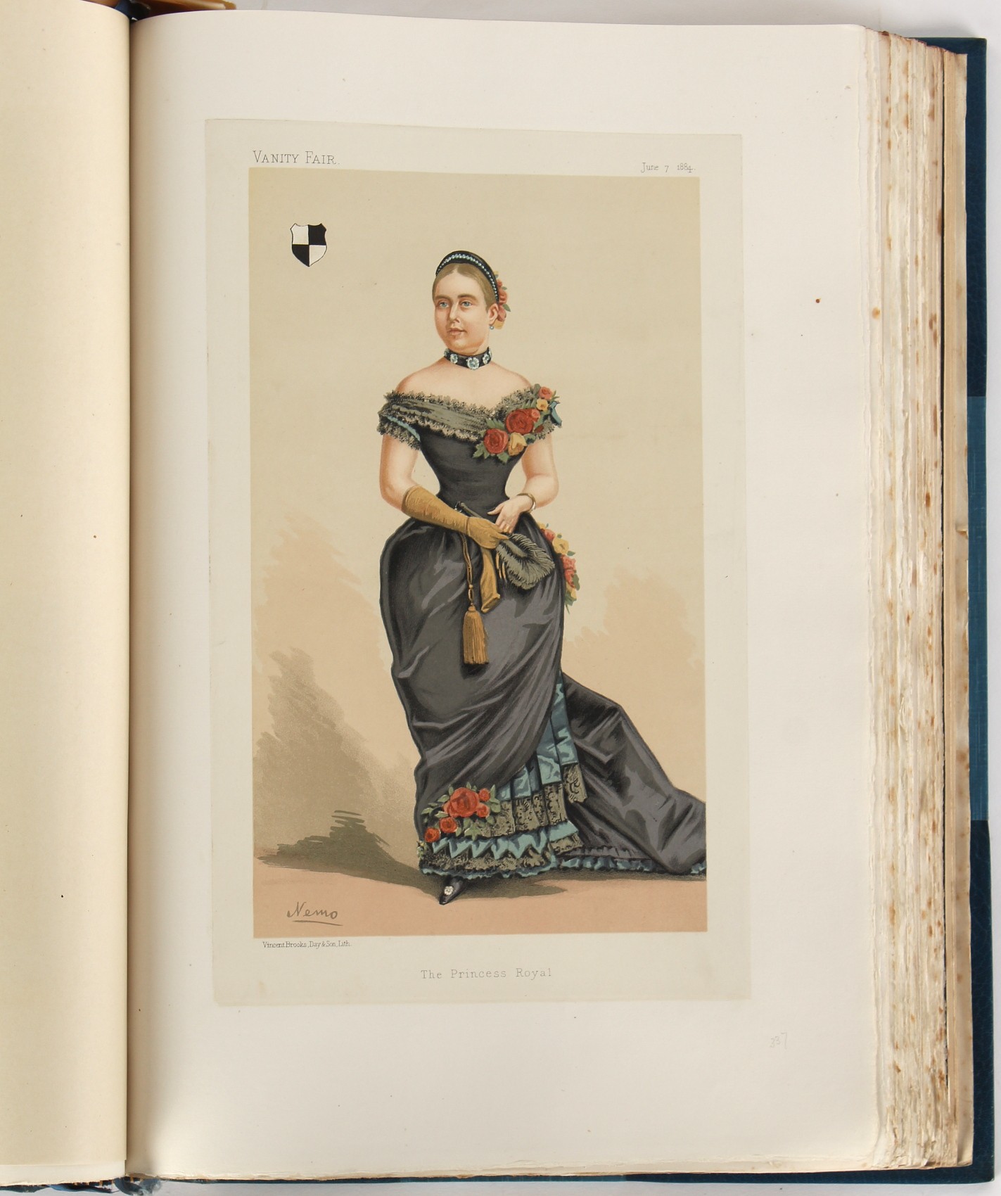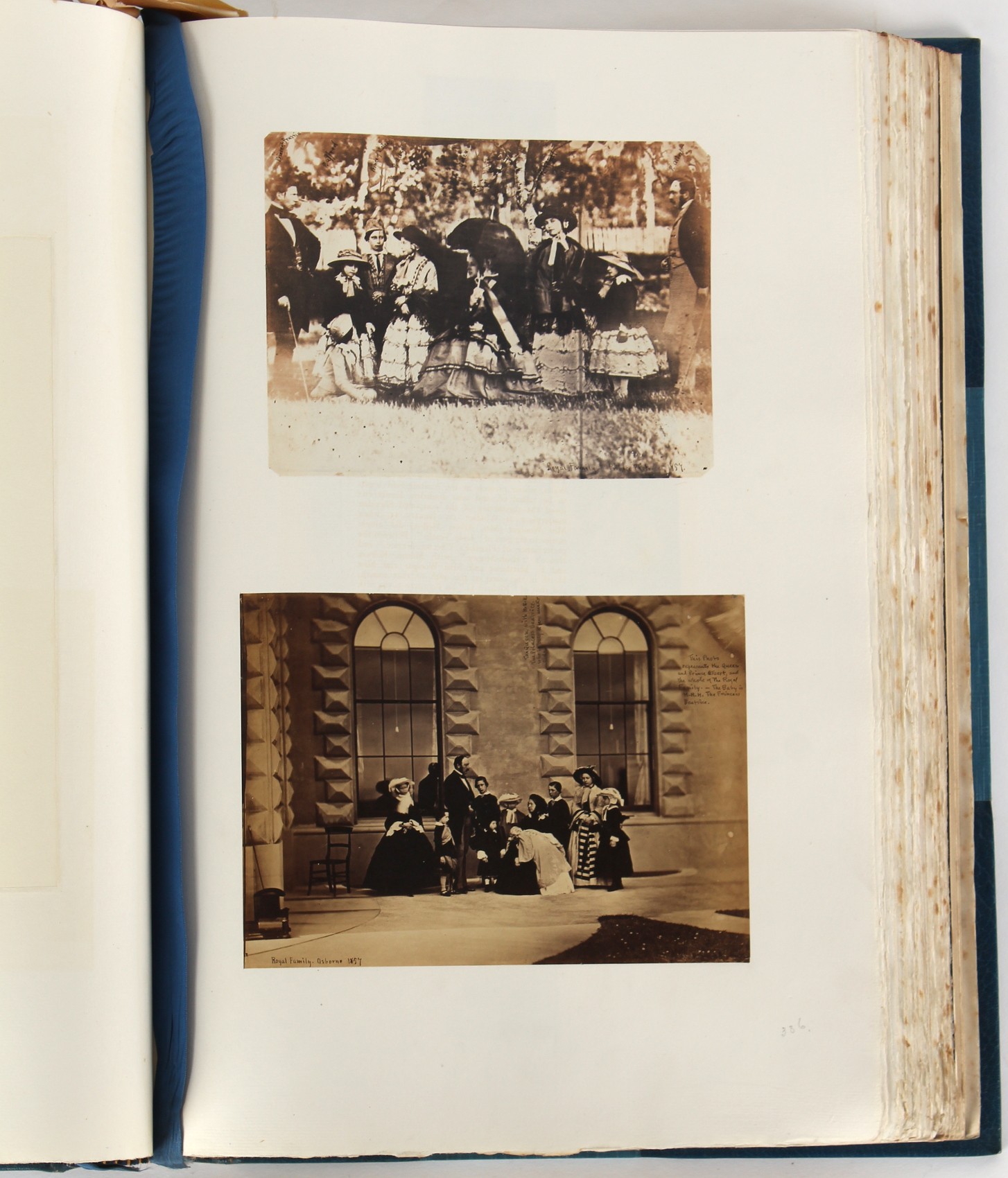 Property of a lady - BROADLEY, Alexander Meyrick - 'The Boyhood of a Great King 1851-1858, Extra-Illustrated by the Addition of Many Contemporary Caricatures, Portraits and Views. Collected in the Years 1911, 1912 & 1913, by Alfred Brewis, Newcastle-Upon-Tyne' - a 'Grangerized' or 'Grangerised' folio volume, finely bound by Cedric Chivers of Bath, 19.5 by 14.2ins. (49.5 by 36cms.) (overall, excluding blue cloth slipcase), a lavish collection of contemporary caricatures, views and portraits relating to the early years of Kind Edward VII including 23 colour plates from the book 'A Memorial of the Marriage of H.R.H. Albert Edward Prince of Wales and H.R.H. Alexandra Princess of Denmark', by Robert Charles Dudley, published in 1864 , also many contemporary albumen print photographs of British and European Royalty, Vanity Fair Spy cartoons, etc.. Footnote - Alexander Meyrick Broadley (1847-1916) was a British author, barrister, collector and social figure, known for defending Ahmed 'Urabi after the Urabi Revolt. Broadley penned numerous historical works later in life, particularly regarding Napoleon and his era. Among the works he authored or co-authored are 'Napoleon and the Invasion of England: The Story of the Great Terror' (London, 1908); 'Nelson’s Hardy: His Life, Letters and Friends' (London, 1909); 'Dumouriez and the Defence of England against Napoleon' (London, 1909); 'Napoleon in Caricature 1795-1821' (London, 1911); and 'Napoleon in Exile' (London, 1914). Broadley was known as a celebrated grangeriser (or extra-illustrator) of books, and one of his greatest achievements was the creation, with the assistance of Daniell, of an extra-illustrated set of Rose’s 'Life of Napoleon I' and Rosebery’s 'Napoleon. The Last Phase', by inlaying and extending the works from three octavo to twenty-eight folio volumes with engravings, portraits, manuscripts, autograph letters, etc. over a period of four years. This monumental work was bought by George Nathaniel Curzon, Marquess Curzon of Kedleston at the auction of Broadley’s library held in four sales between 1916 and 1918, and Curzon later bequeathed the set to the Bodleian Library, Oxford. Footnote Two - Alfred Brewis was a shipowner in Newcastle-upon-Tyne.