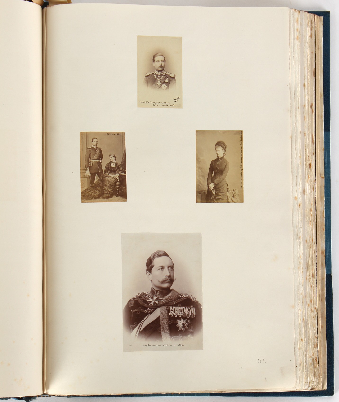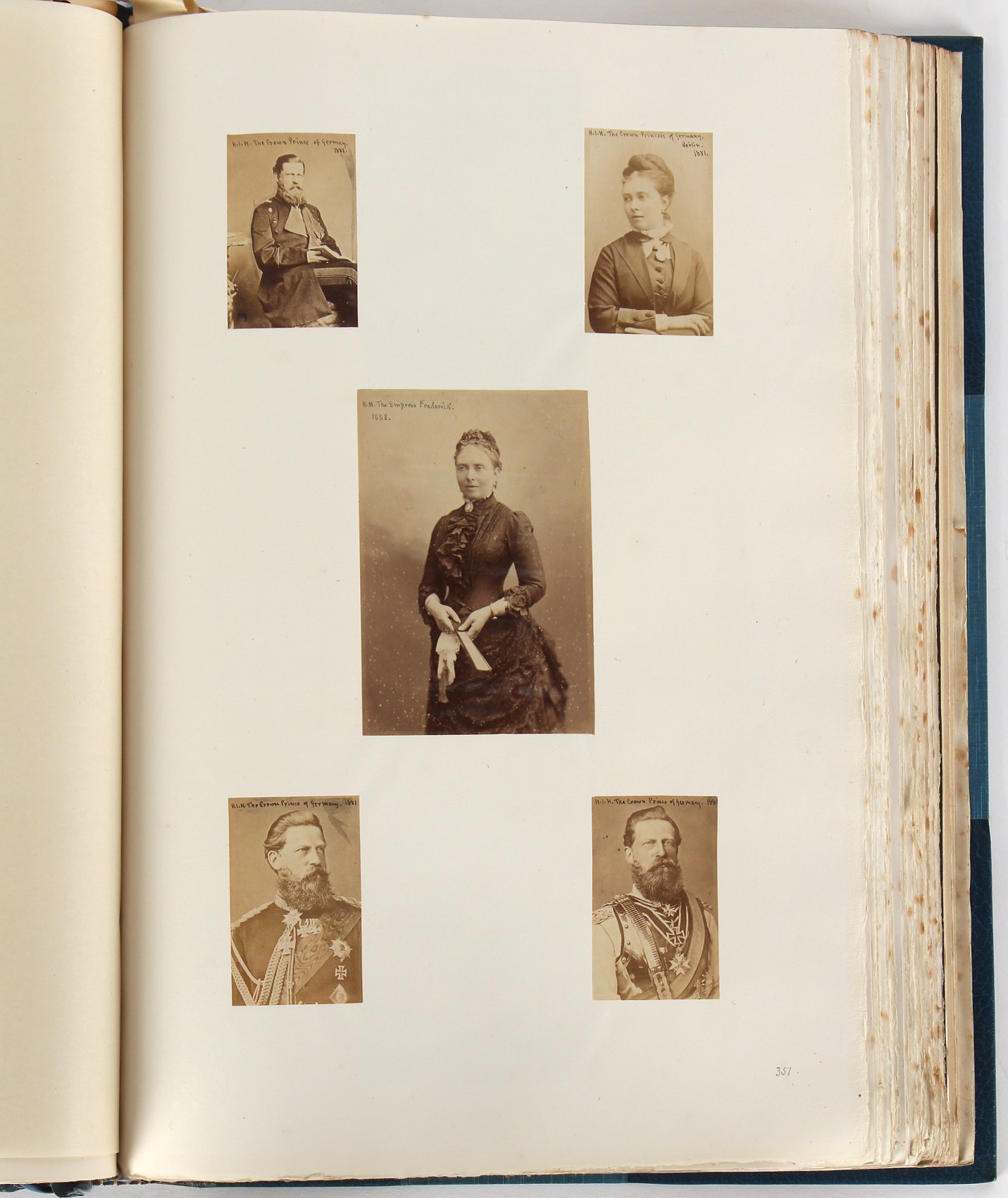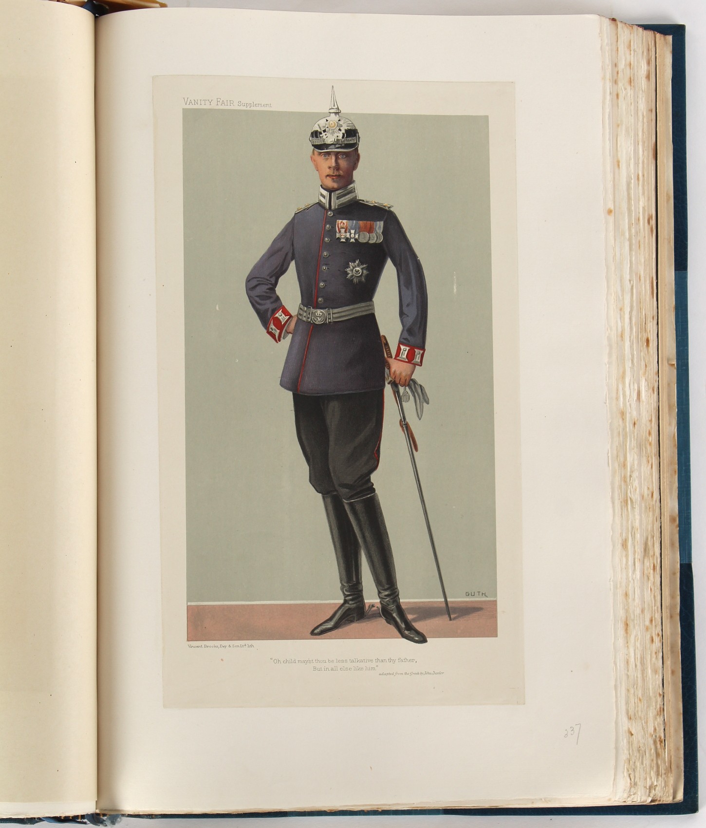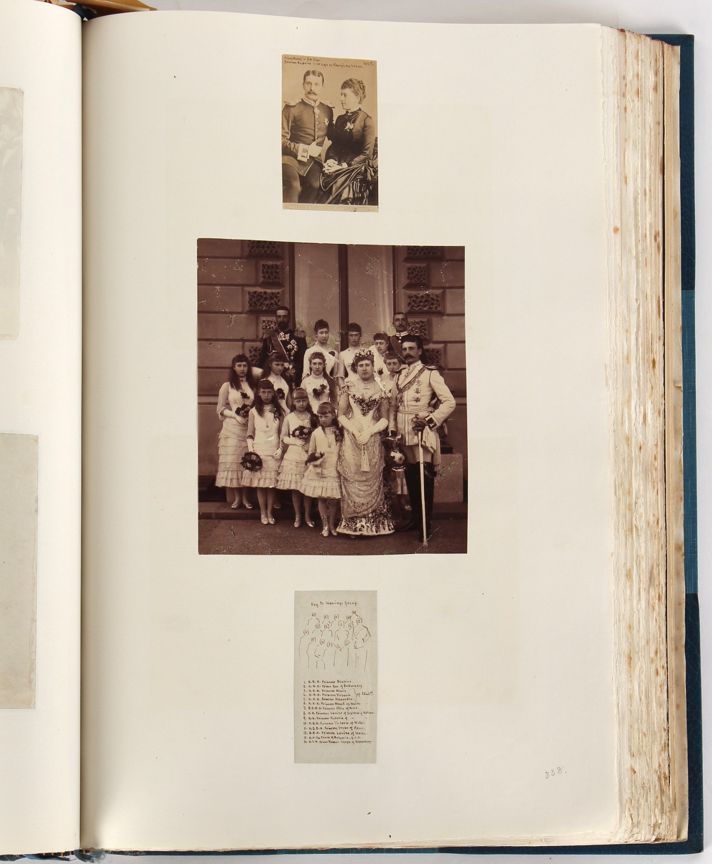 Property of a lady - BROADLEY, Alexander Meyrick - 'The Boyhood of a Great King 1851-1858, Extra-Illustrated by the Addition of Many Contemporary Caricatures, Portraits and Views. Collected in the Years 1911, 1912 & 1913, by Alfred Brewis, Newcastle-Upon-Tyne' - a 'Grangerized' or 'Grangerised' folio volume, finely bound by Cedric Chivers of Bath, 19.5 by 14.2ins. (49.5 by 36cms.) (overall, excluding blue cloth slipcase), a lavish collection of contemporary caricatures, views and portraits relating to the early years of Kind Edward VII including 23 colour plates from the book 'A Memorial of the Marriage of H.R.H. Albert Edward Prince of Wales and H.R.H. Alexandra Princess of Denmark', by Robert Charles Dudley, published in 1864 , also many contemporary albumen print photographs of British and European Royalty, Vanity Fair Spy cartoons, etc.. Footnote - Alexander Meyrick Broadley (1847-1916) was a British author, barrister, collector and social figure, known for defending Ahmed 'Urabi after the Urabi Revolt. Broadley penned numerous historical works later in life, particularly regarding Napoleon and his era. Among the works he authored or co-authored are 'Napoleon and the Invasion of England: The Story of the Great Terror' (London, 1908); 'Nelson’s Hardy: His Life, Letters and Friends' (London, 1909); 'Dumouriez and the Defence of England against Napoleon' (London, 1909); 'Napoleon in Caricature 1795-1821' (London, 1911); and 'Napoleon in Exile' (London, 1914). Broadley was known as a celebrated grangeriser (or extra-illustrator) of books, and one of his greatest achievements was the creation, with the assistance of Daniell, of an extra-illustrated set of Rose’s 'Life of Napoleon I' and Rosebery’s 'Napoleon. The Last Phase', by inlaying and extending the works from three octavo to twenty-eight folio volumes with engravings, portraits, manuscripts, autograph letters, etc. over a period of four years. This monumental work was bought by George Nathaniel Curzon, Marquess Curzon of Kedleston at the auction of Broadley’s library held in four sales between 1916 and 1918, and Curzon later bequeathed the set to the Bodleian Library, Oxford. Footnote Two - Alfred Brewis was a shipowner in Newcastle-upon-Tyne.