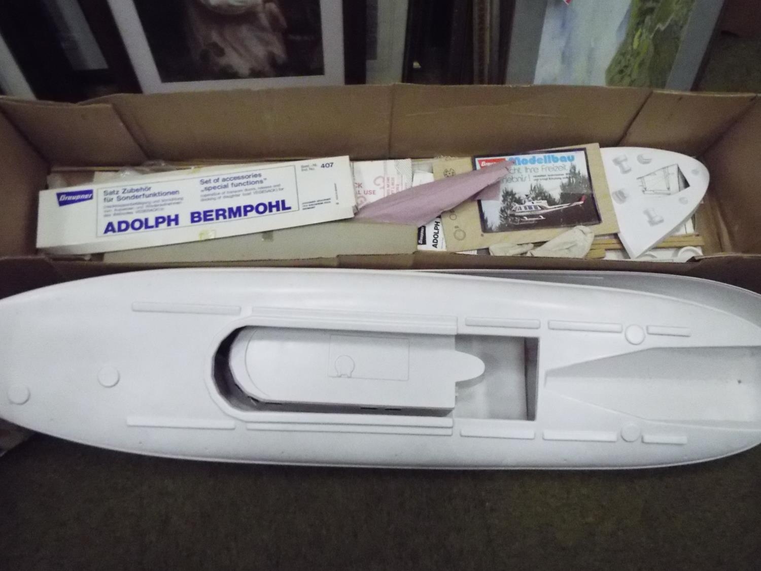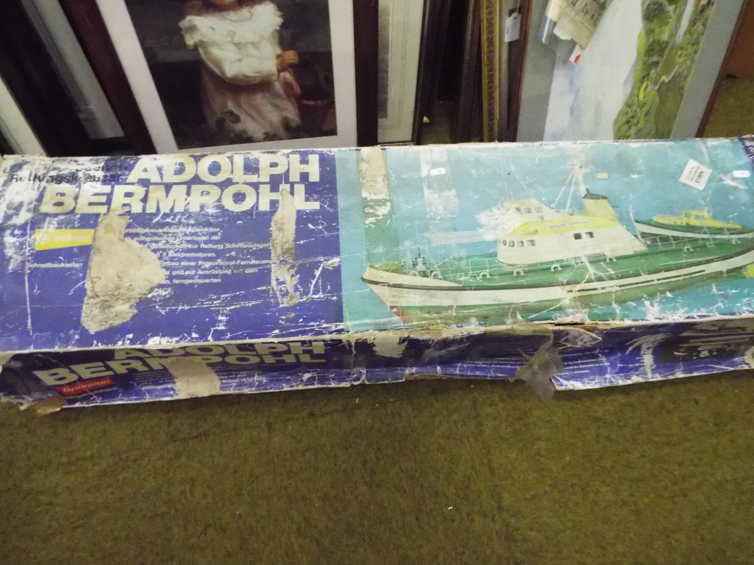 Boxed scale model of a seaboat 'Adolph Bermphol' Believed to be complete with tatty box. 48 inches long