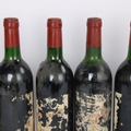 All levels to low neck / high shoulder. all capsules intact. All labels very damaged only partial labels on some bottles.