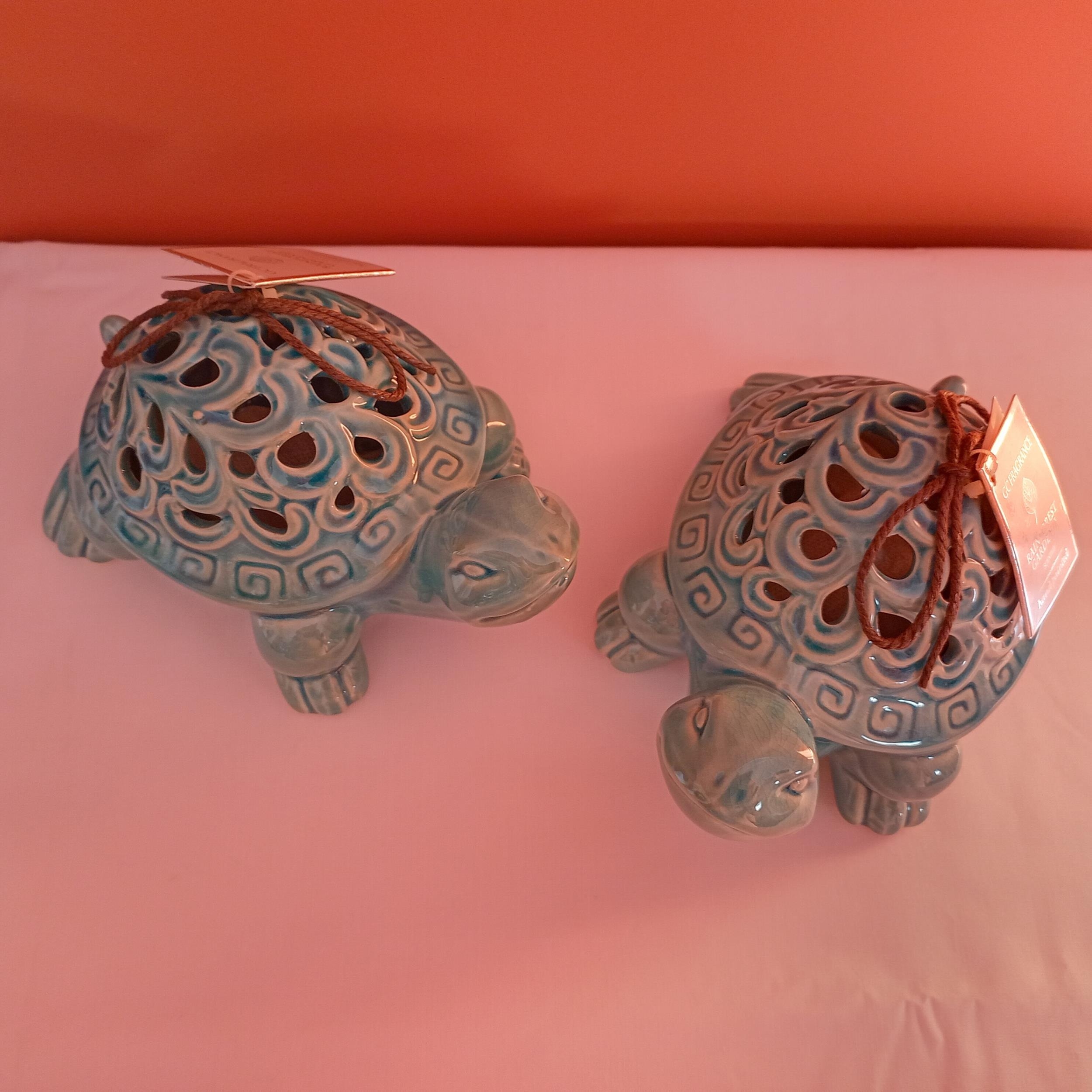 Pair of Gardenia green turtles - Rainforest Gardenia unique hand-painted turtles. G C Fragrance. Decorative fragrance dispensers.