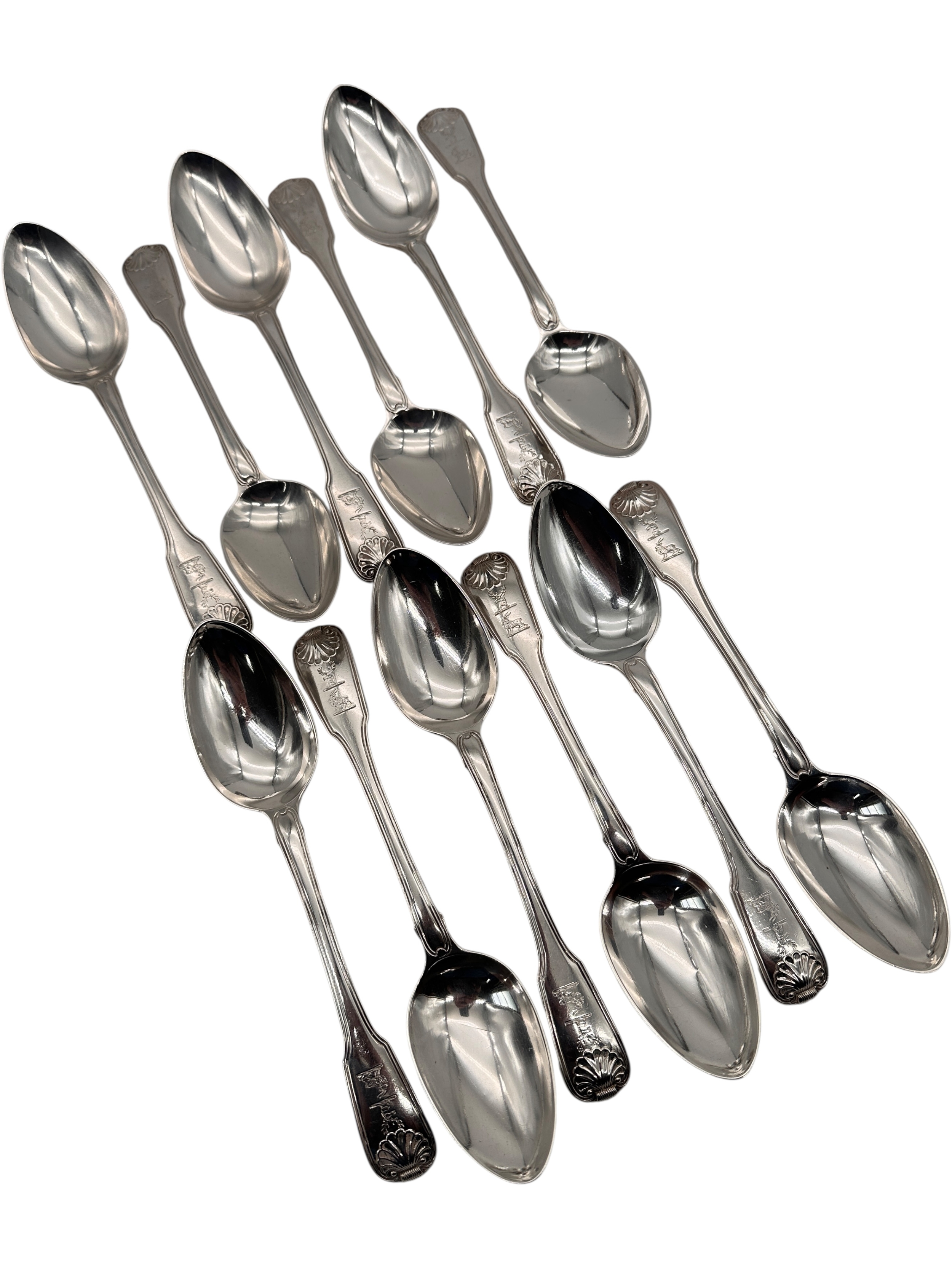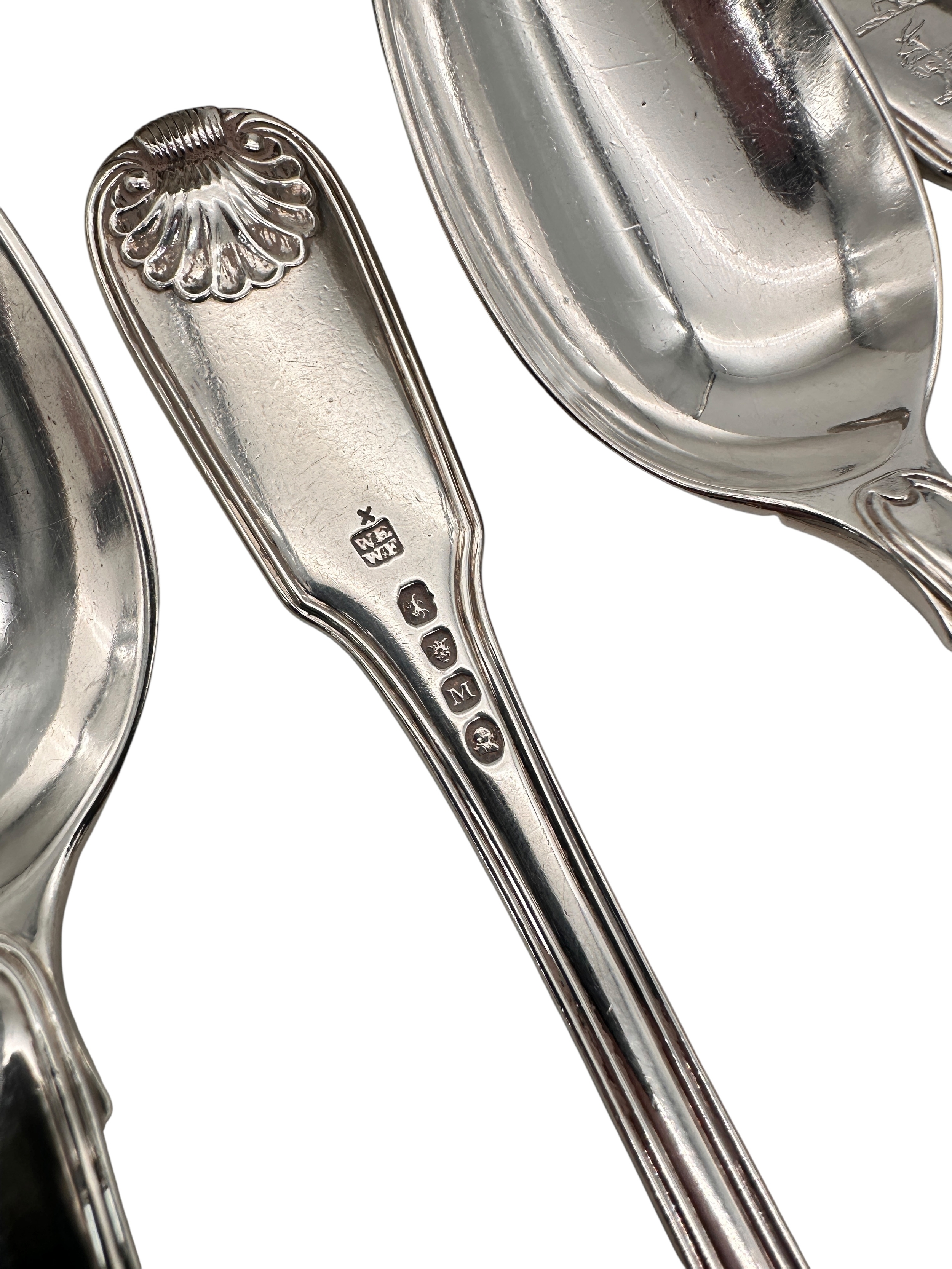 Set of 12 Georgian Hallmarked Silver Serving Spoons. 1245g