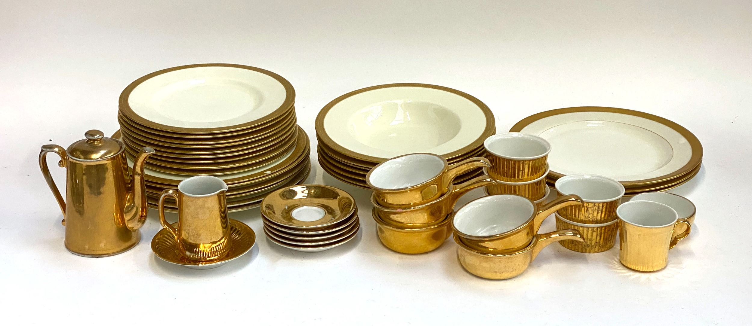 A mixed lot of gilt dinnerwares, to include Royal Worcester fireproof, Royal Doulton, etc