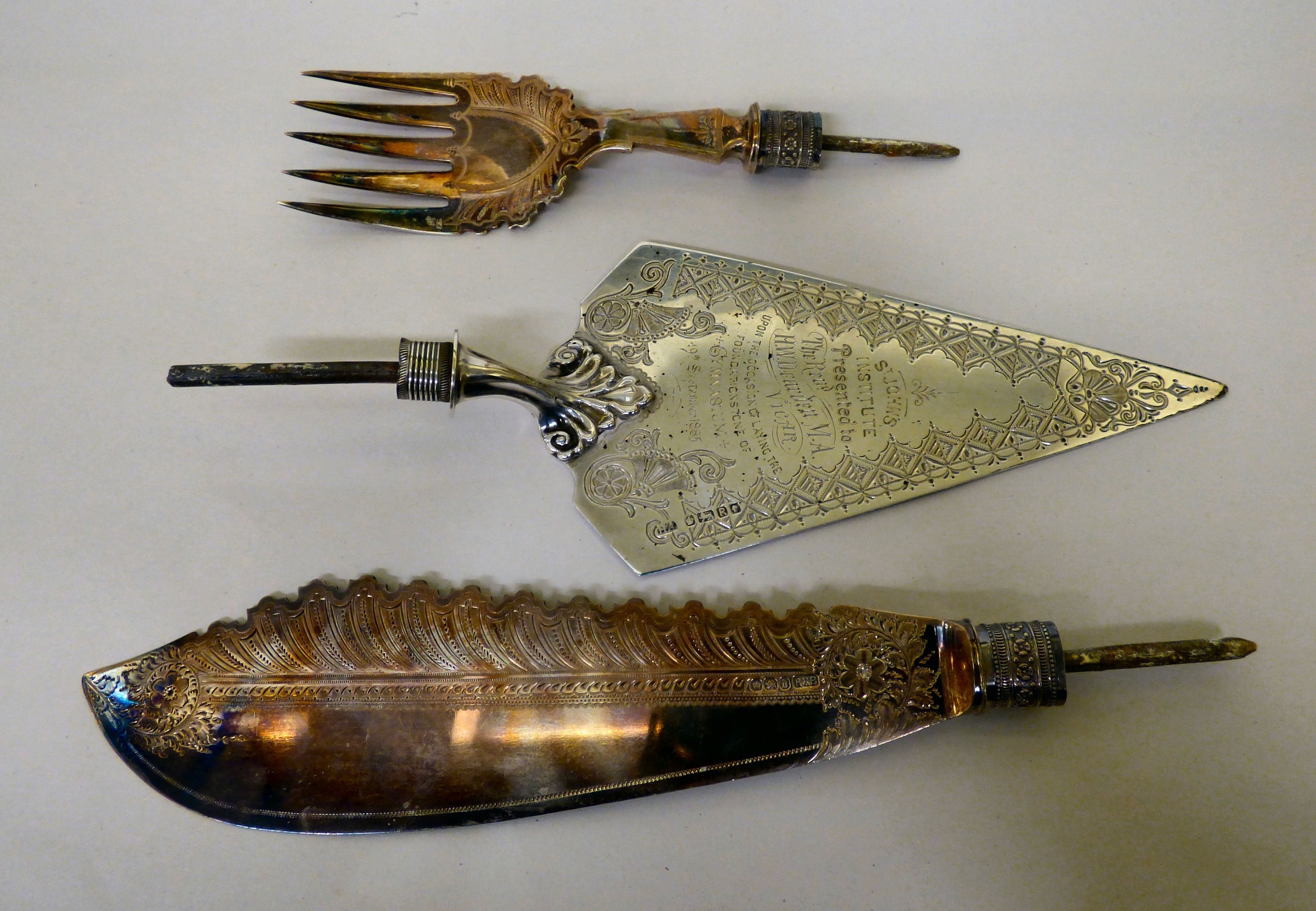 Silver collectables: to include a presentation trowel Sheffield 1885 (approx. combined gross weight 317grms)
