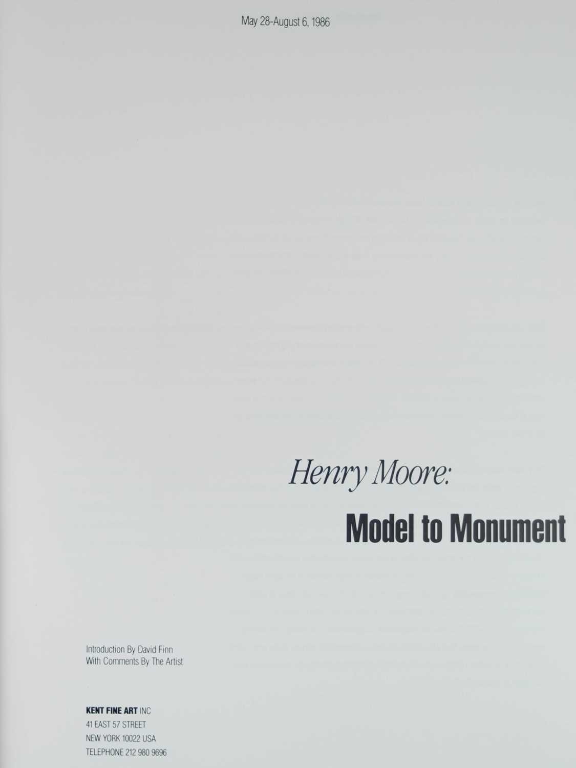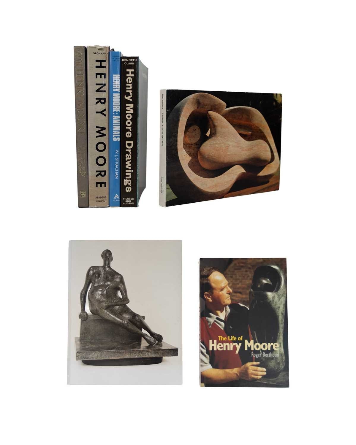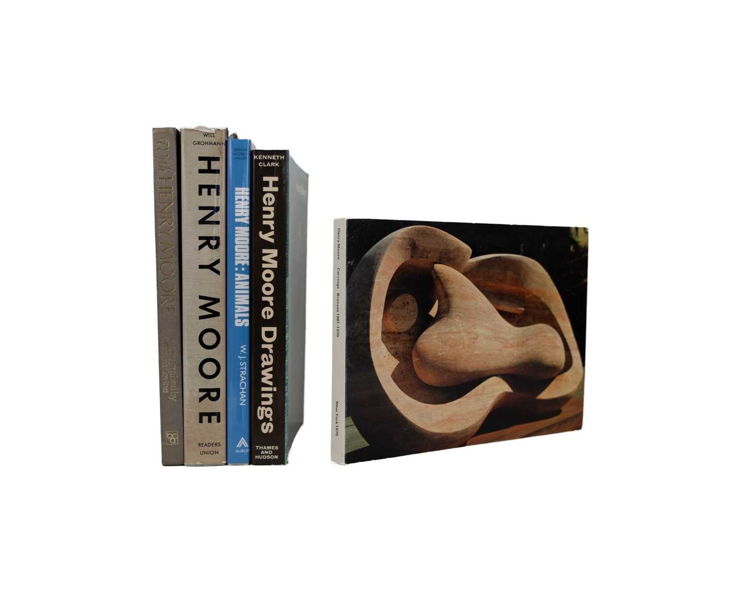 (Henry Moore) Seven works Includes an exhibition catalogue, Henry Moore, 'Carvings 1961-70 Bronzes 1961-70', M Knoedler & Co Inc, New York April-May 1970; Kenneth Clark, 'Henry Moore Drawings', Thames and Hudson, London 1978; David Finn, 'Henry Moore: Model to Monument', Kent Fine Art, New York 1986; together with other works on his life are artwork, all vg. (7)