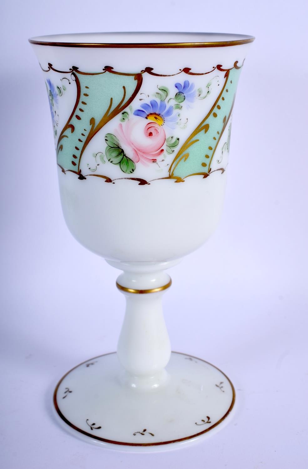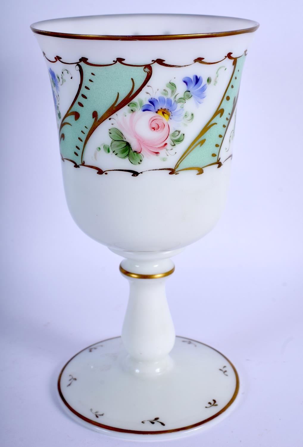 A VINTAGE BOHEMIAN GLASS GOBLET painted with flowers. 18 cm high.